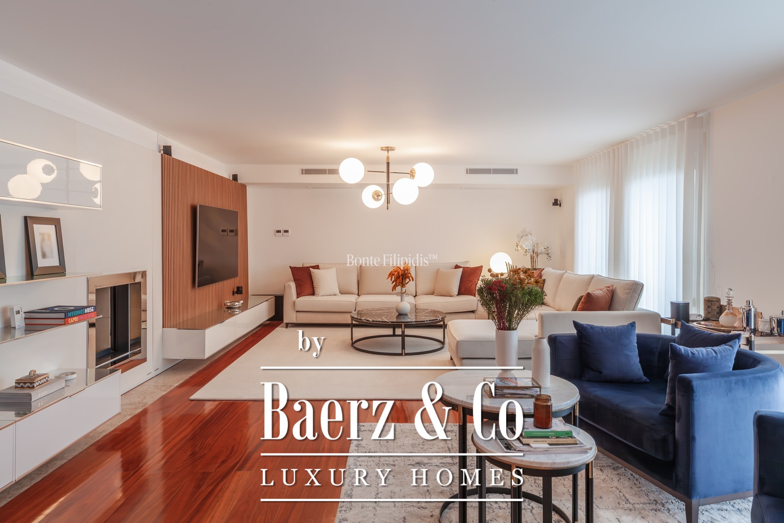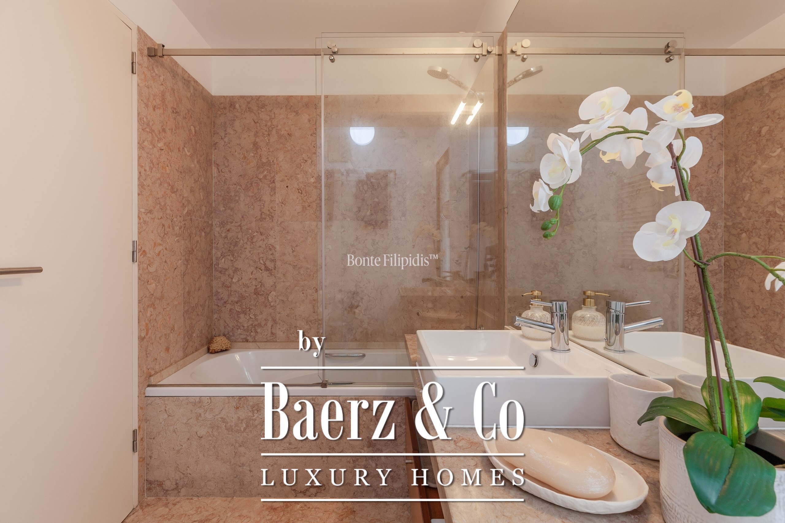 Generous natural light defines the atmosphere, enhanced by a northeast orientation in the 60 m² living and dining room, a space designed to welcome both tranquil mornings and gatherings. Each of the four bedrooms—including a master suite and a separate service suite—ensures flexibility and discretion, supported by four bathrooms and guest facilities. Central air conditioning with individual controls harmonises thermal comfort across the property.
