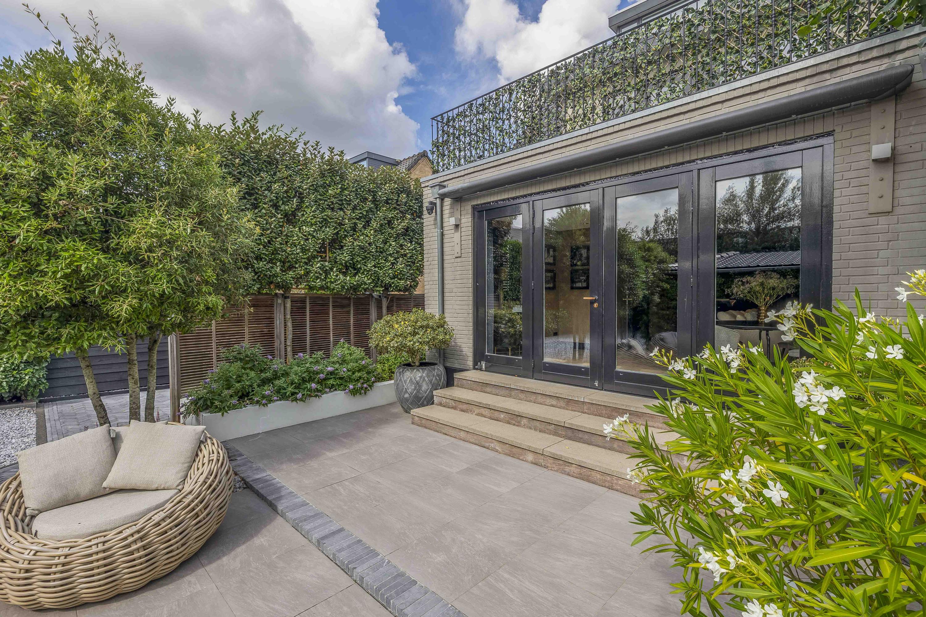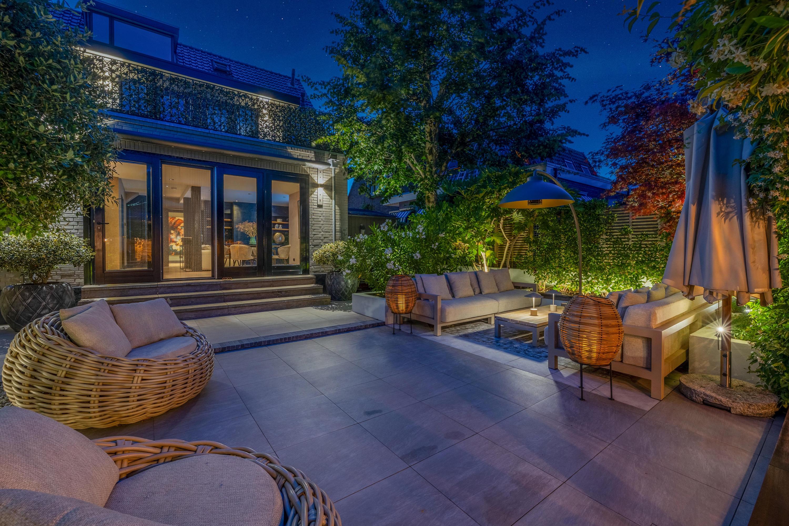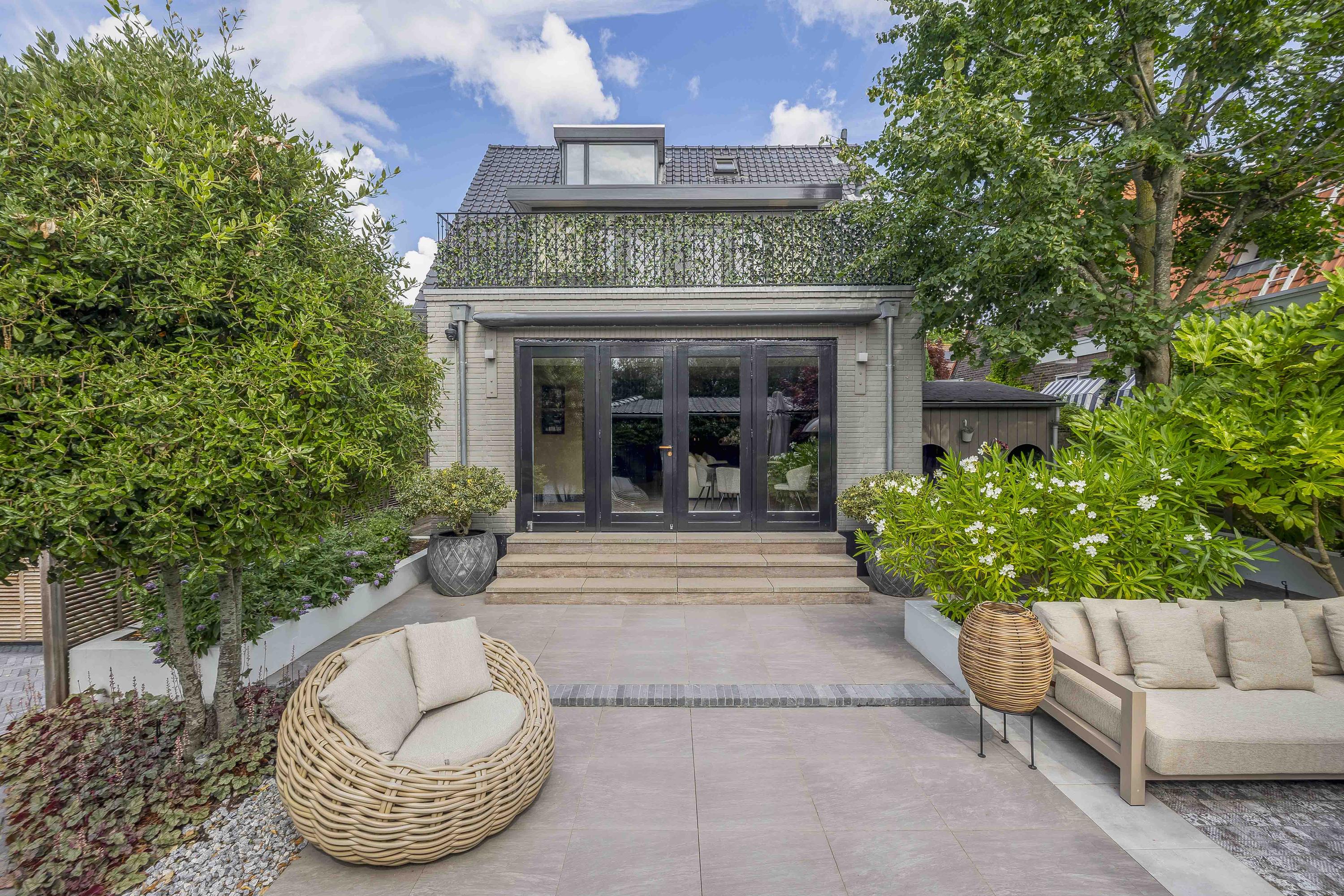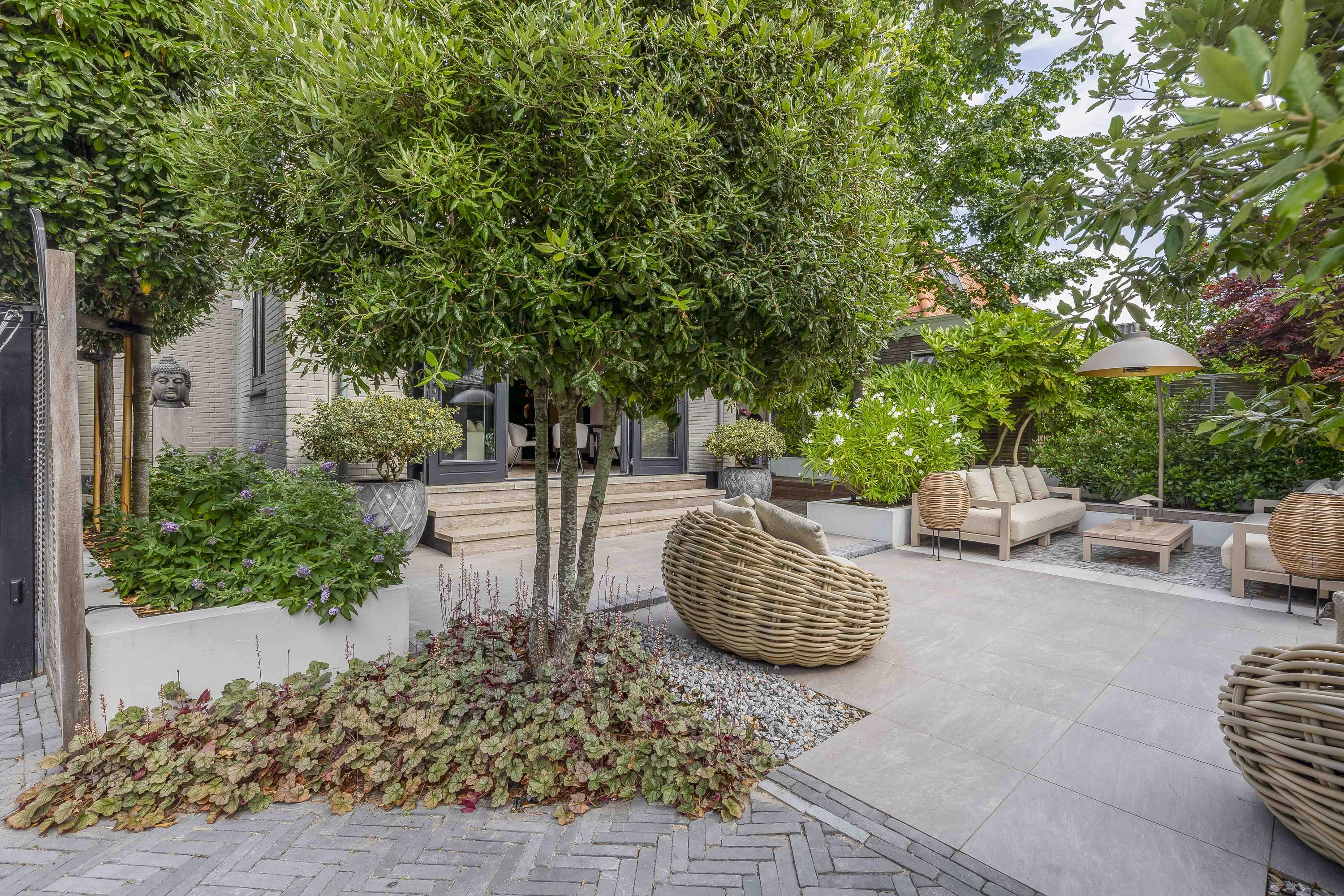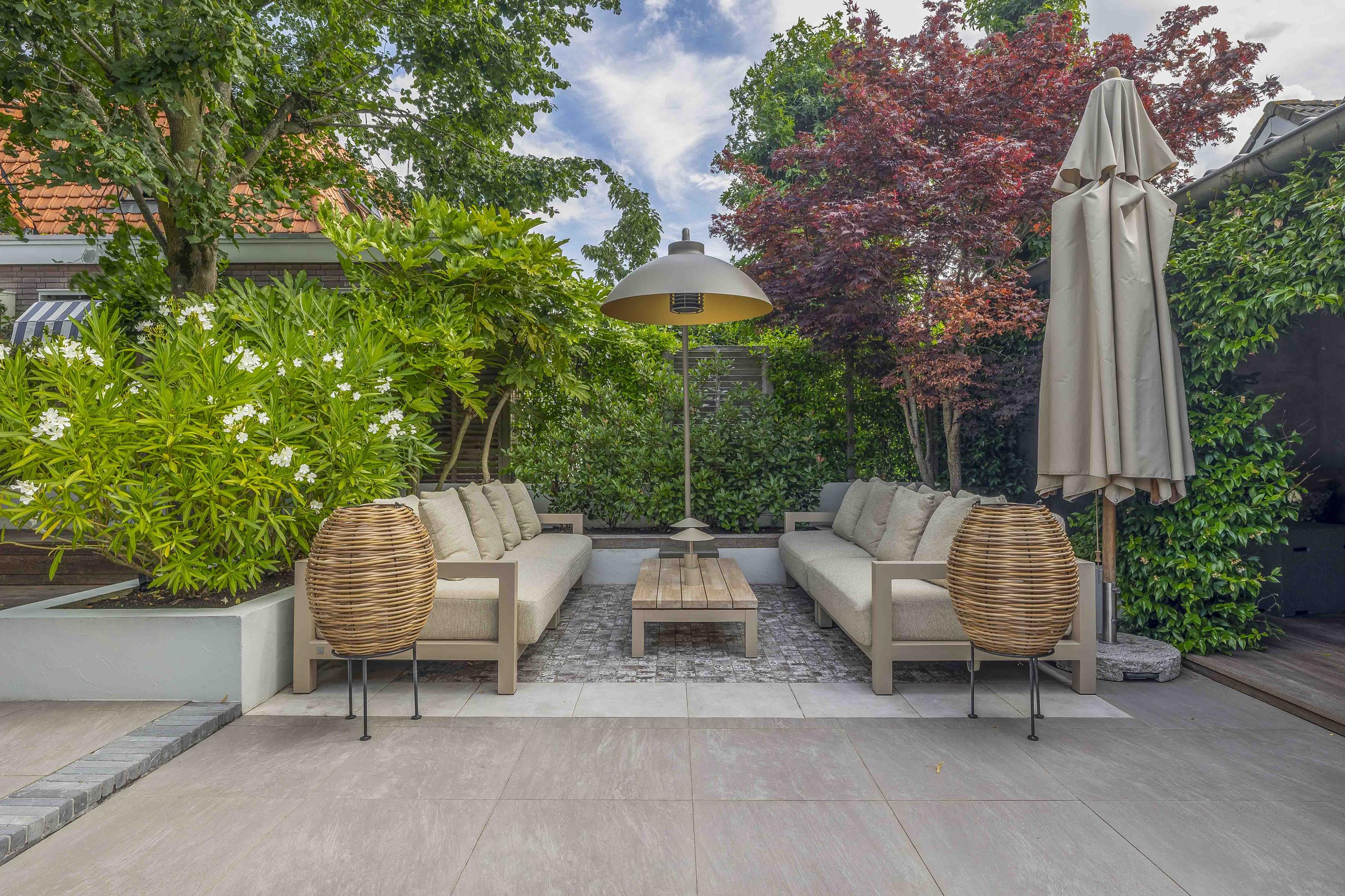 - Fraai aangelegde zonnige tuin met diverse terrassen en sfeervolle overkapping