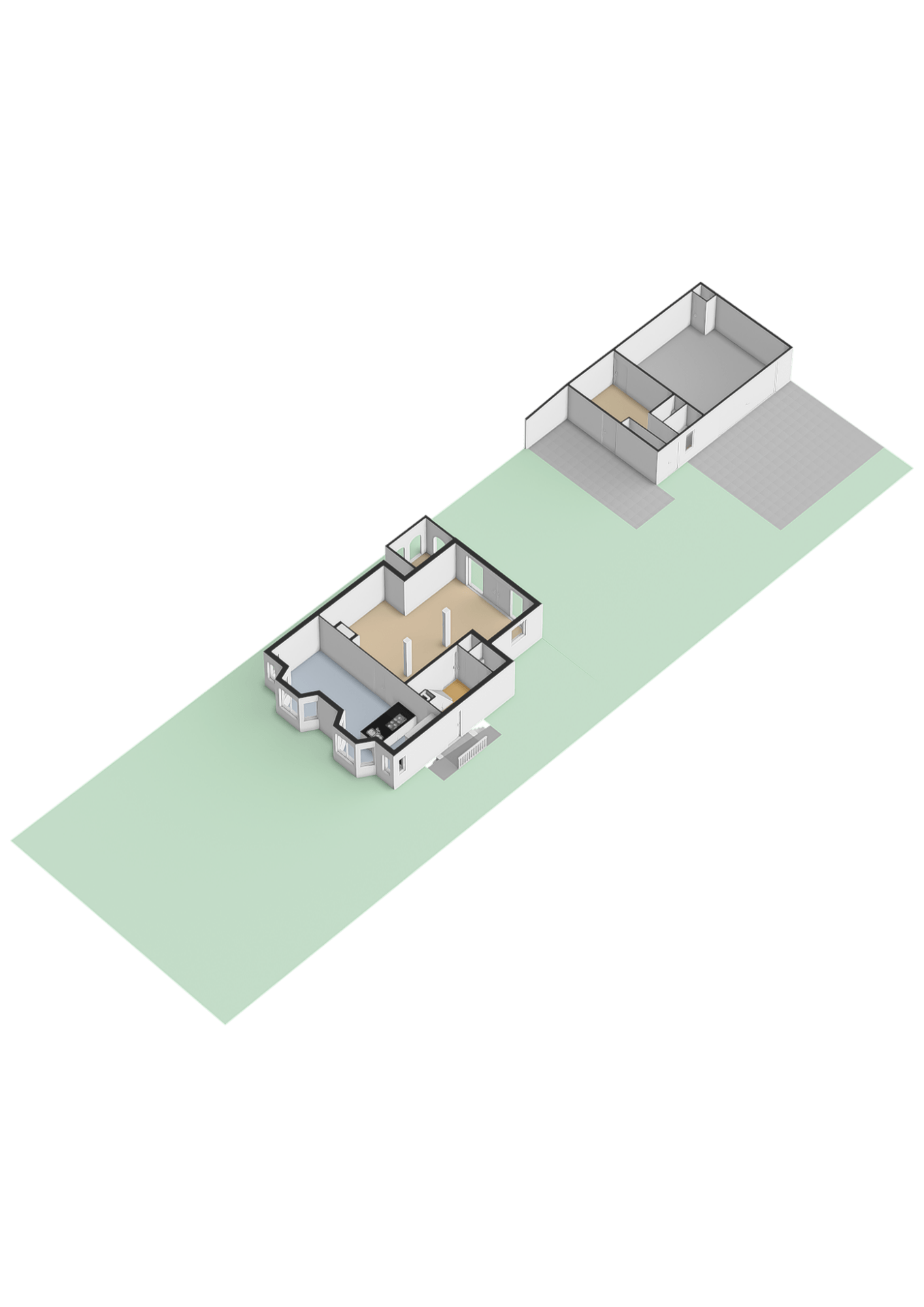 - Achtertuin nagenoeg geheel onderheid