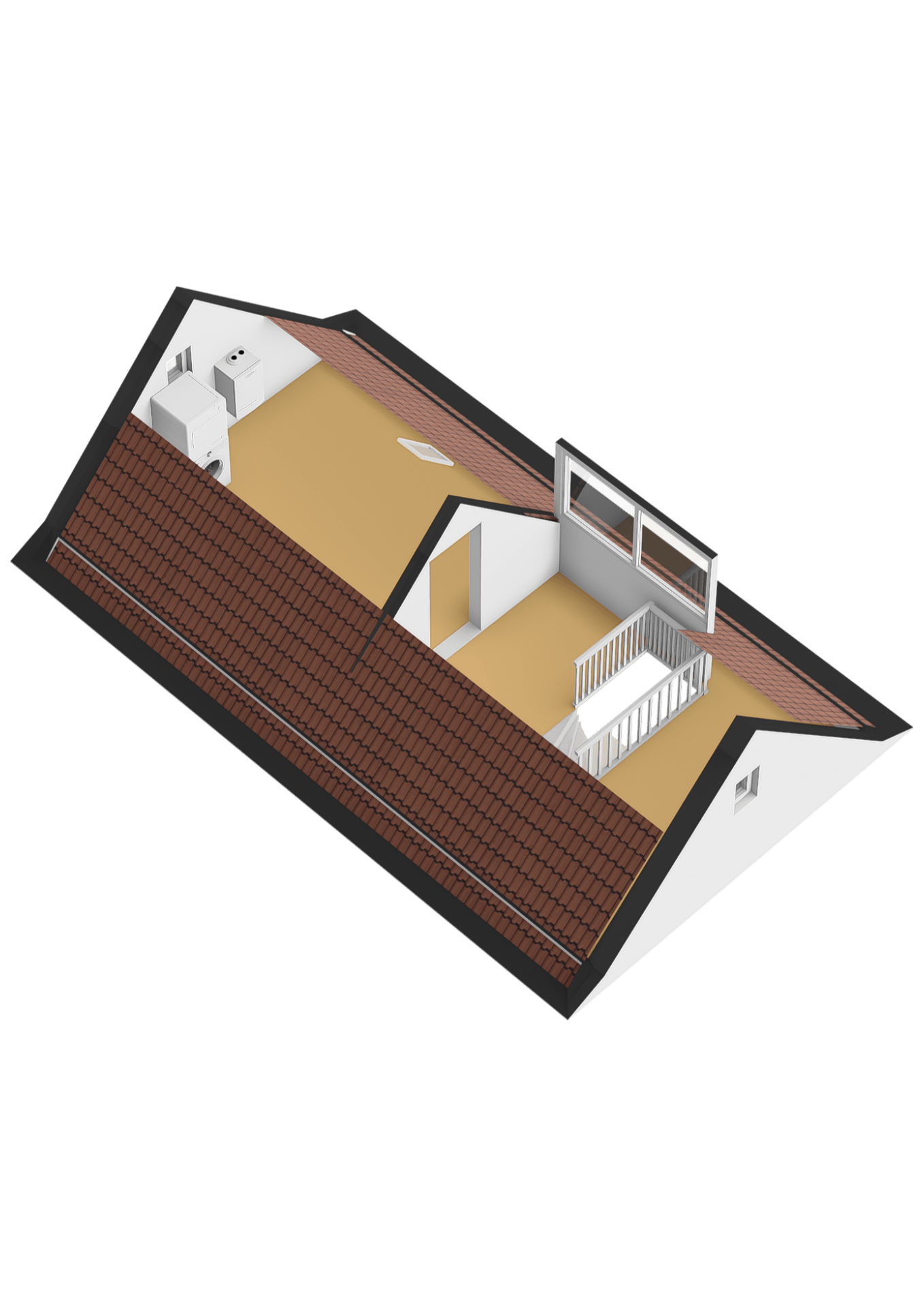 Open ruimte met dakkapel aan de achterzijde. Zeer geschikt is voor een werkplek of extra slaapkamer.