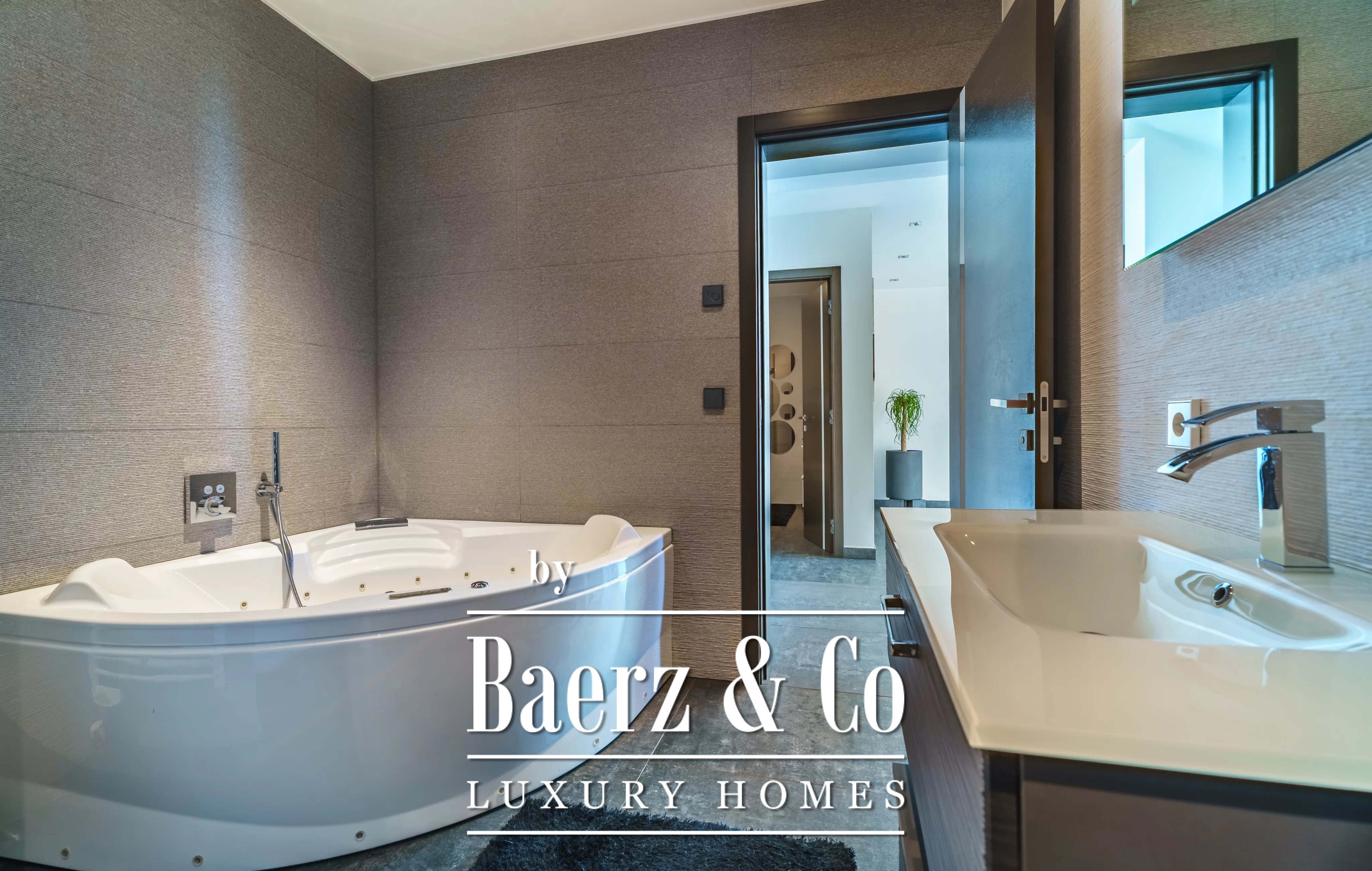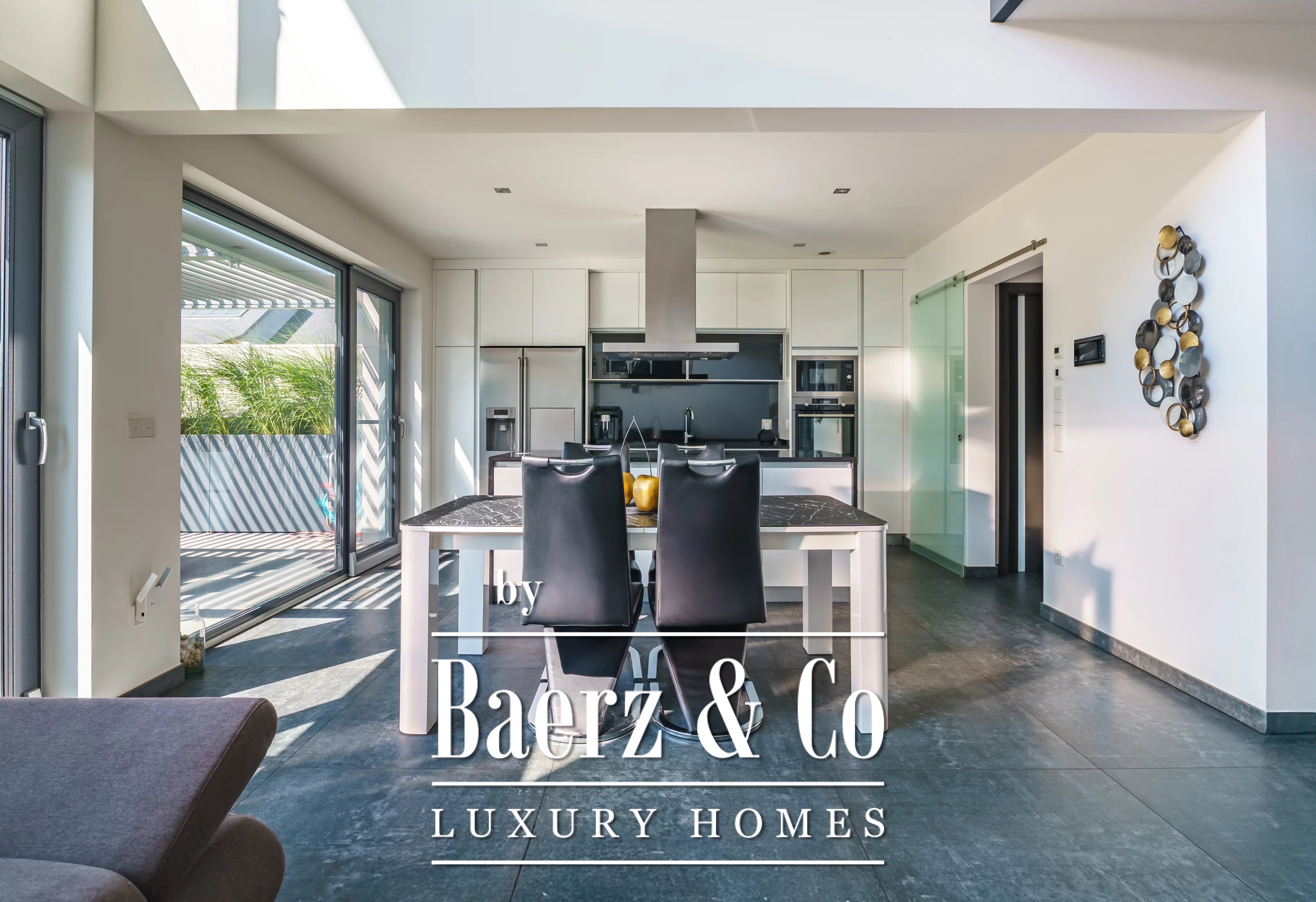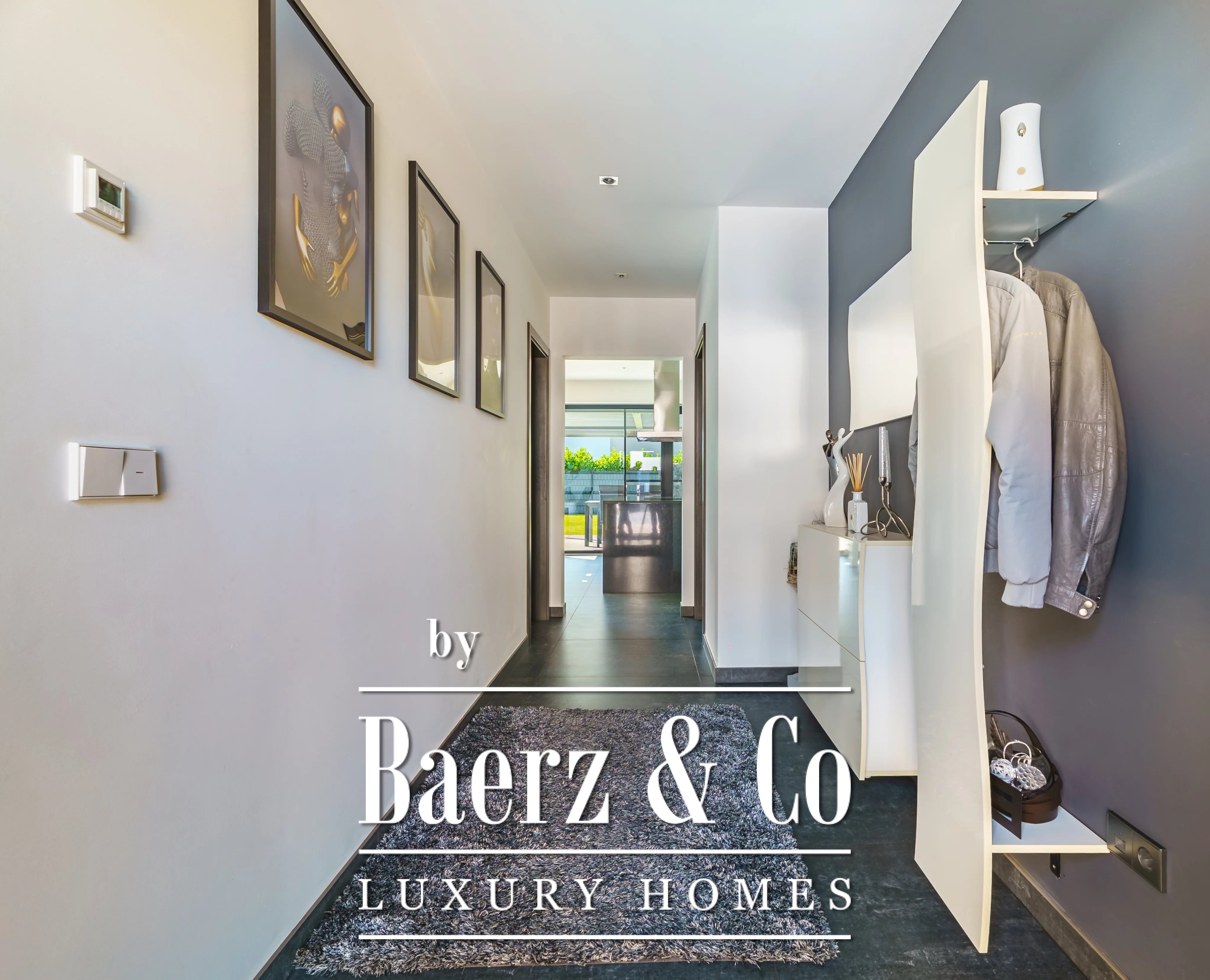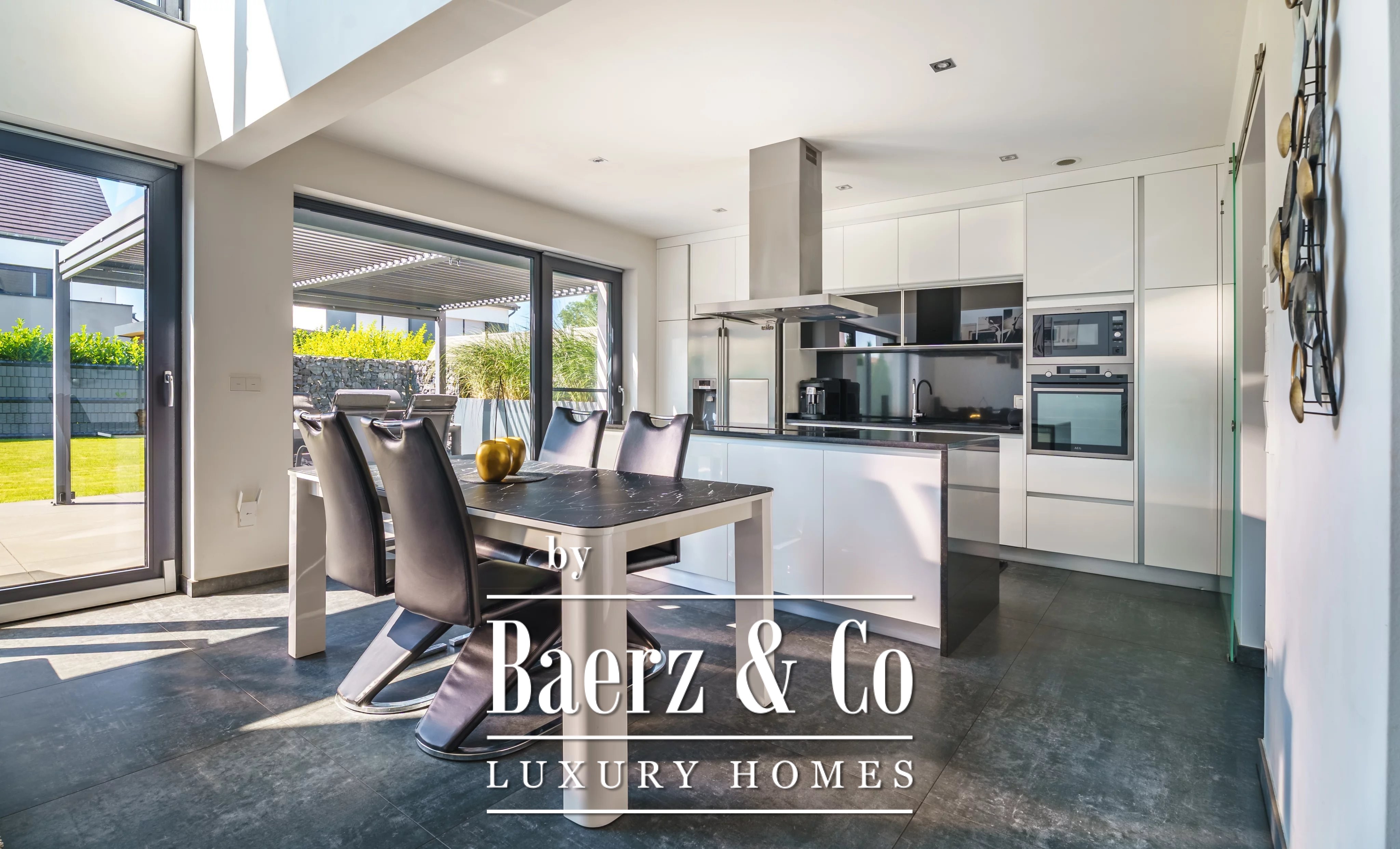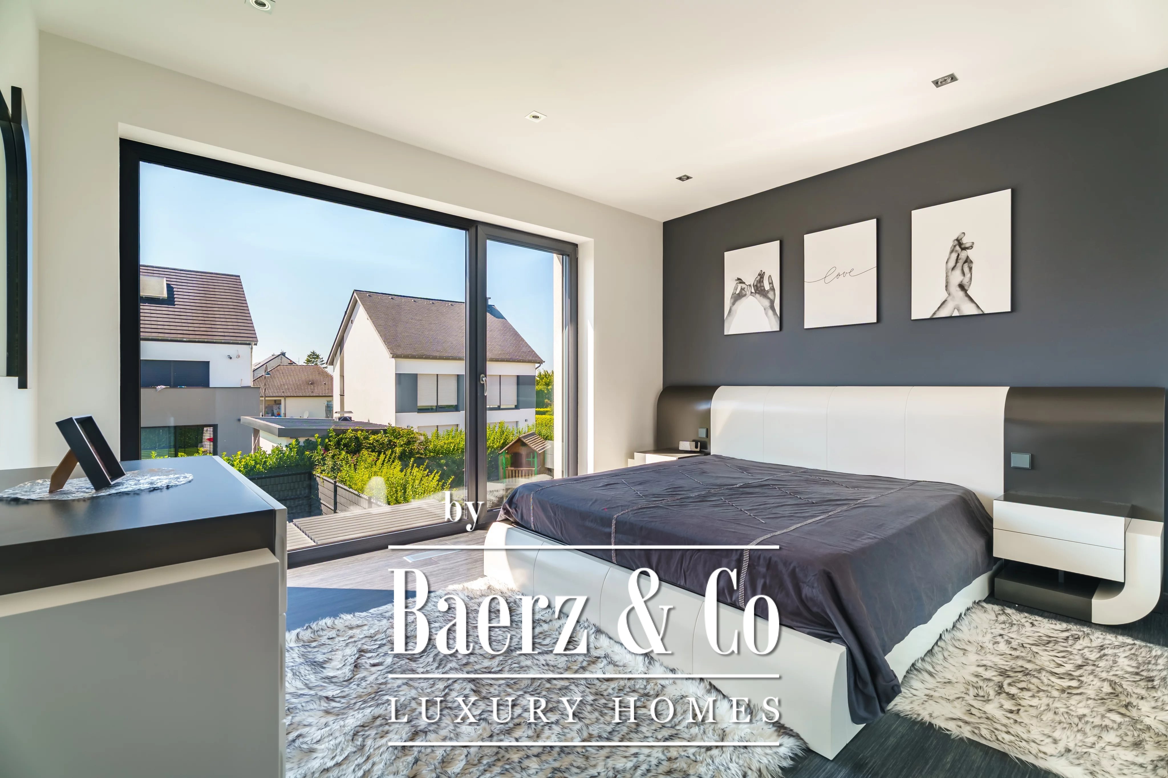 Built in 2015 by Cardoso Construction, the house is defined by meticulous maintenance and up-to-date technical aspects. Triple-glazed, break-in-resistant aluminum windows, connected electric shutters, fiber optic internet, and home automation underline the commitment to comfort and security. Underfloor heating powered by a Buderus oil-fired boiler, double-flow ventilation, and solar panels ensure year-round efficiency.