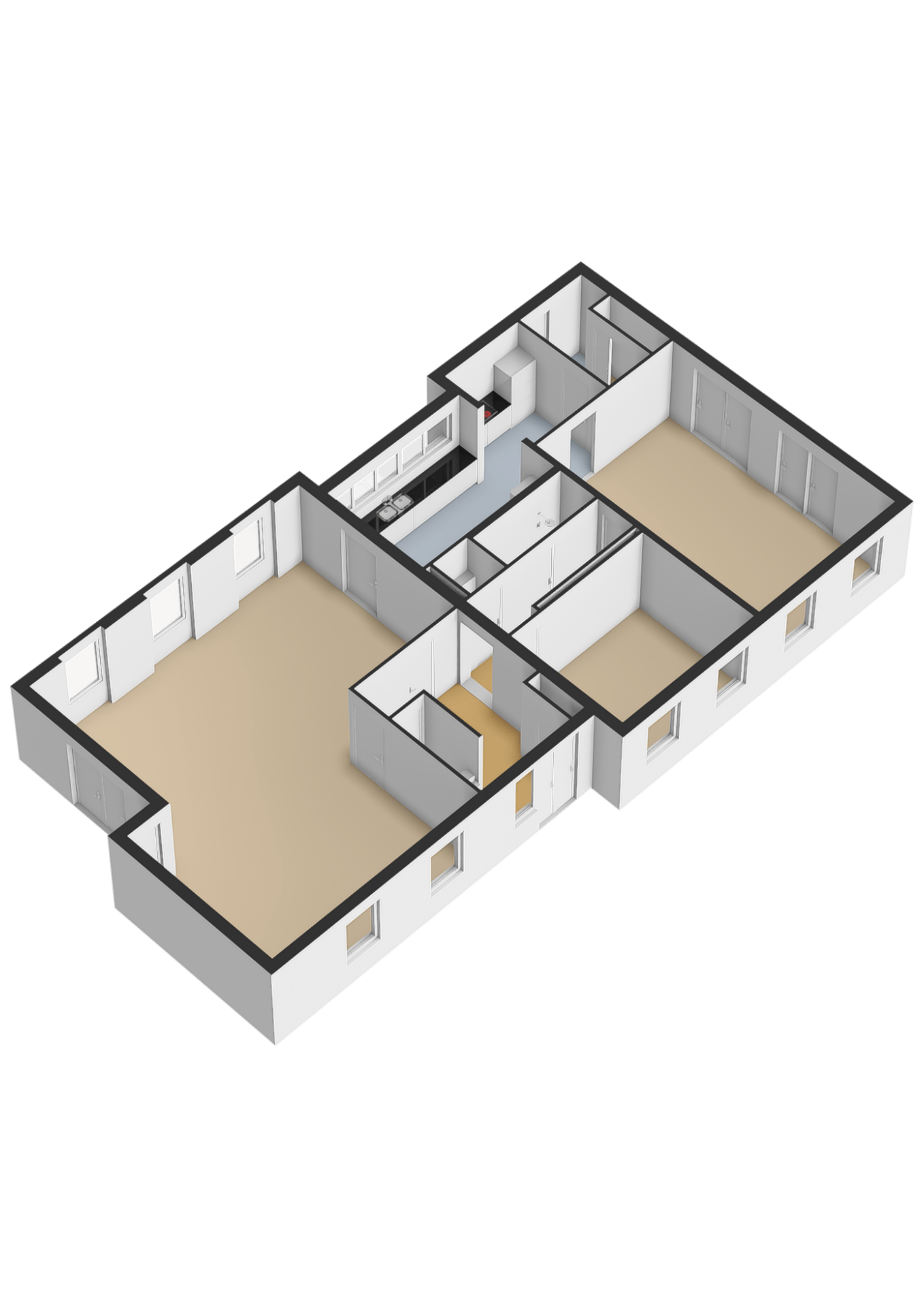 A door provides access to the spacious and luxurious kitchen, which is fitted with double wall units in high-gloss white. The kitchen is equipped with various base cabinets, drawers and built-in appliances, including a Boretti stove with 6 burners, a frytop and a double oven, stainless steel extractor hood (2024), dishwasher (2021) and refrigerator (2022). The kitchen consists of two sections. In the rear section, there is a third wall unit with an additional refrigerator (2022) and an induction hob. From this section, there is access to the utility room and the multifunctional room.