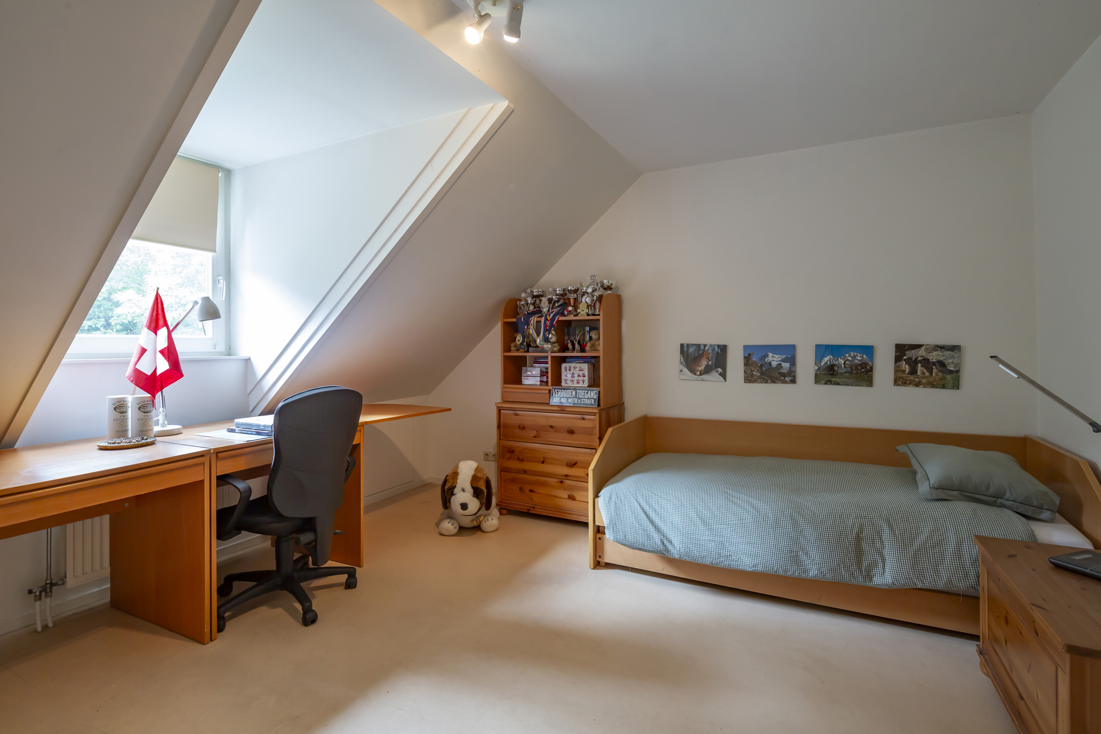 Adjacent to the landing are four beautiful bedrooms, all with a dormer window. There is a storage room with fitted wardrobes, a guest bathroom with a separate toilet and a loggia. The loggia or roof terrace is accessible via a large sliding door.