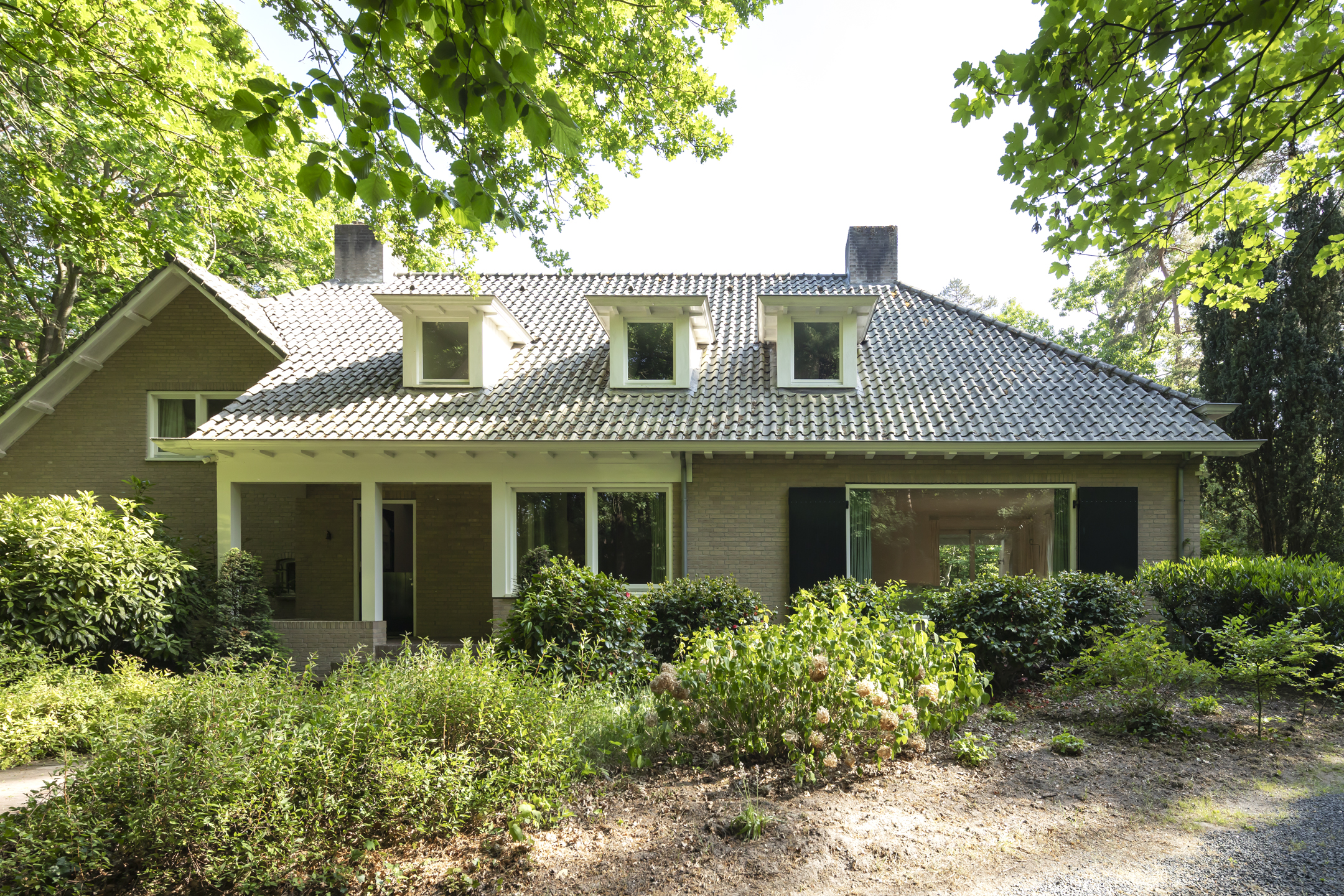 Spacious country house built by renowned architect Hans Nouwens in a prime location in the Netherlands, situated on the beautiful leafy Hondsbergselaan, a private garden facing south, directly surrounded by a beautiful adjacent rolling nature reserve and the river Reusel. The house is free on all sides and is therefore the most favourably located plot on the entire Hondsbergselaan.