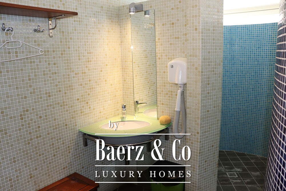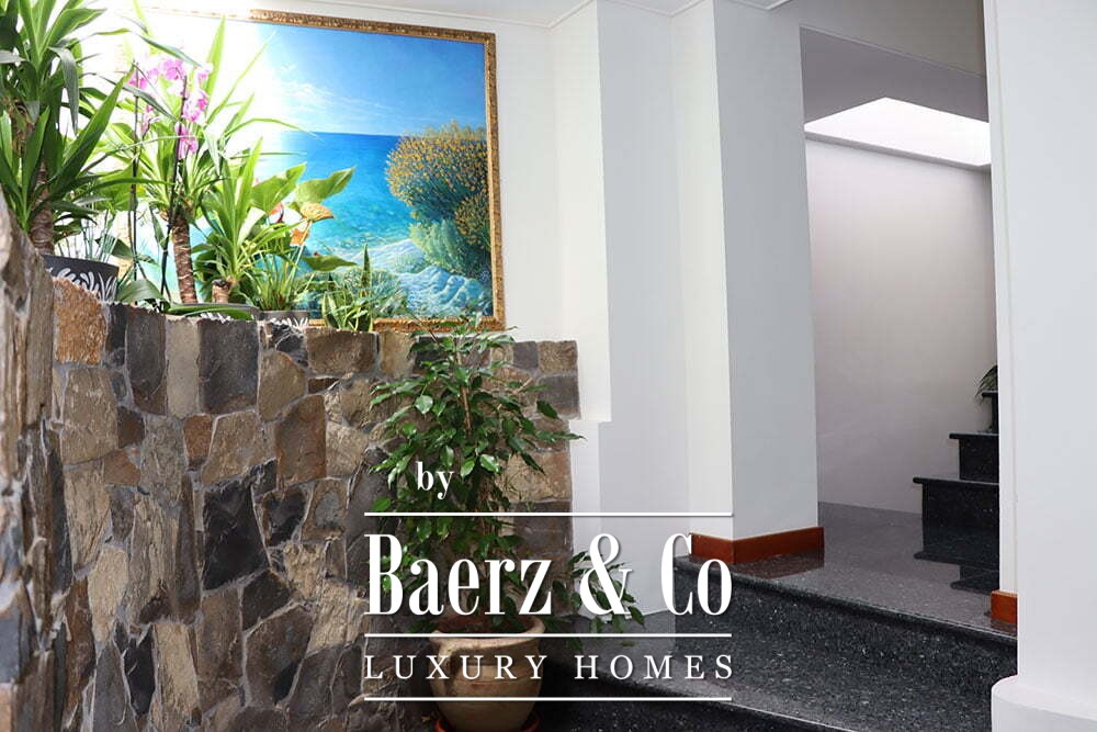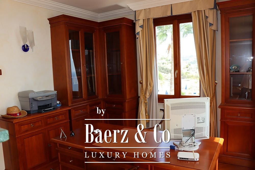 Ascending to the first floor reveals eight bedrooms and six bathrooms. The master suite features an office, a walk-in closet, a spacious ensuite with jacuzzi, and private access to the terrace. The villa is framed by a 2,000 m² plot, balancing privacy with effortless entertaining. This property offers a unique vantage for those who value Mediterranean light and coastal serenity.