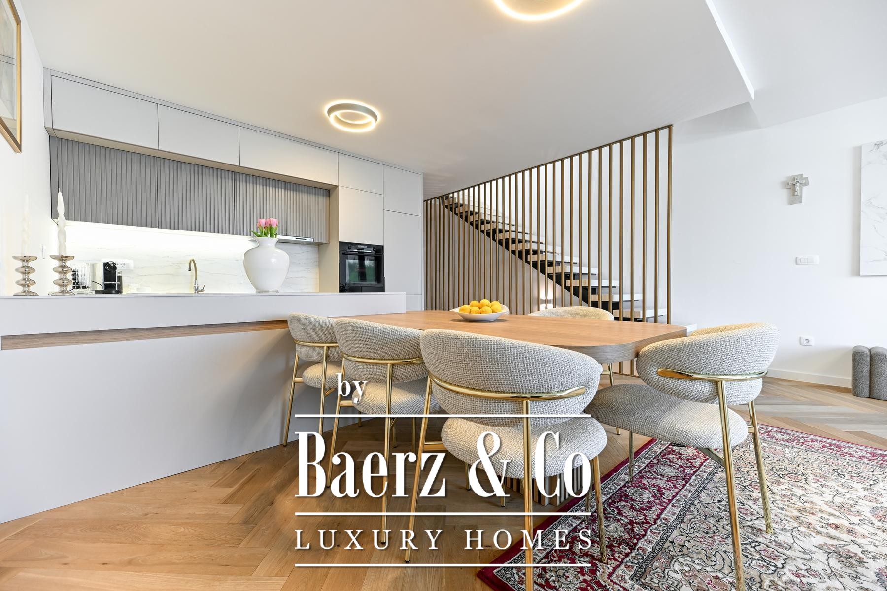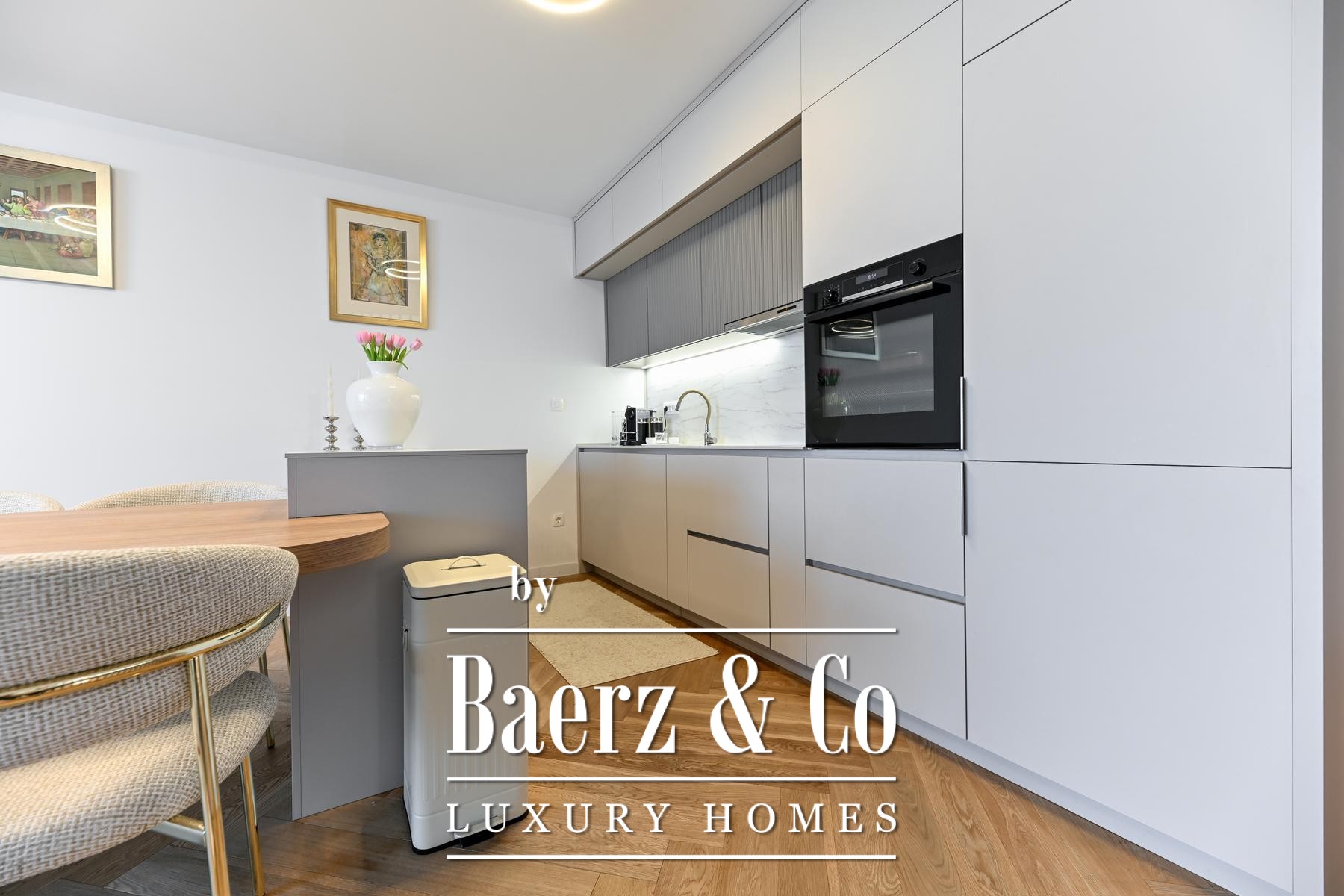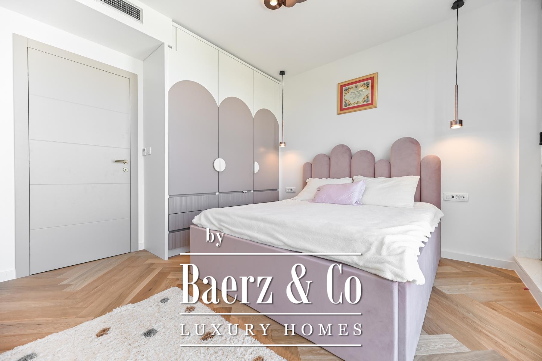 The top floor reveals a spacious, partially covered roof terrace with open sea panoramas. The ground floor extends to a terrace and garden space, ideal for a jacuzzi, sunbathing, or children’s activities, with several cascading gardens offering a sense of enclosure and privacy. The two bedroom apartment Podstrana enjoys a quiet microlocation, just minutes’ walk from the beach and a new promenade, providing access to the heart of the local community.