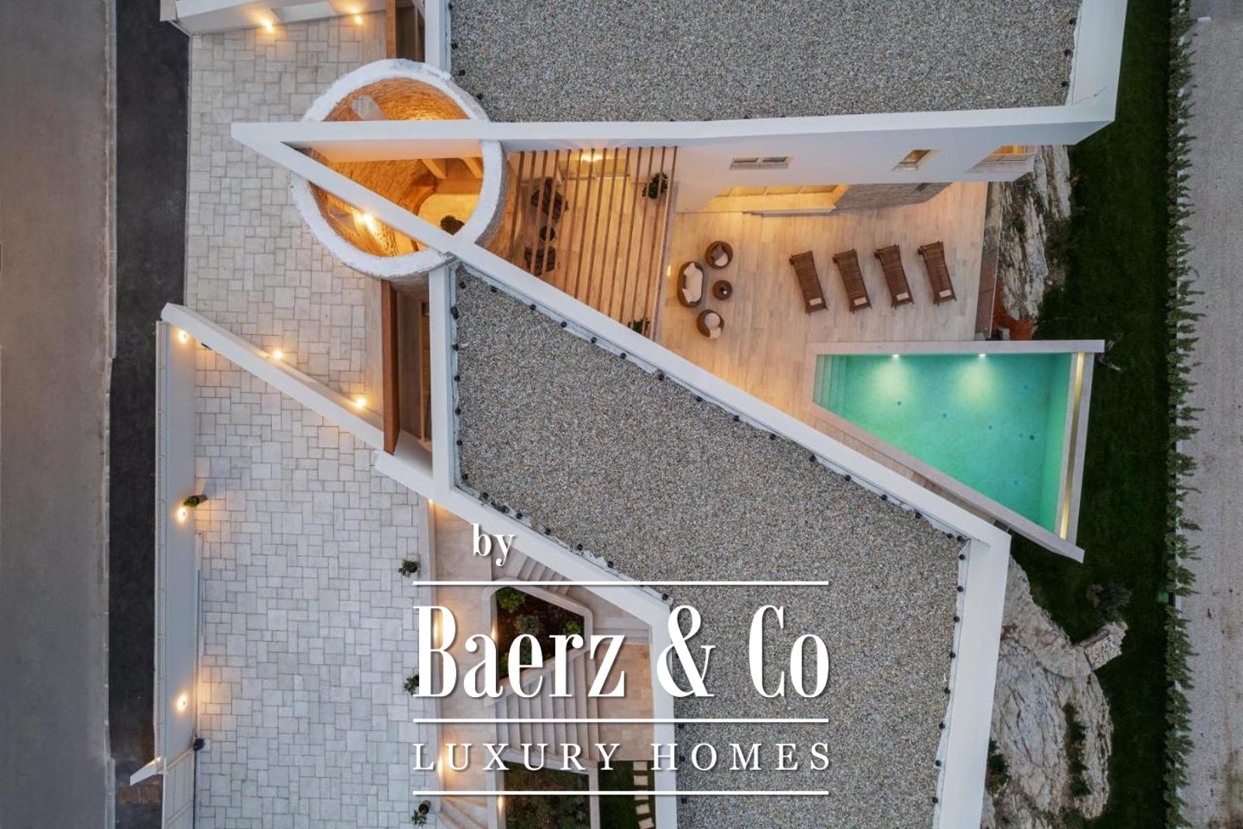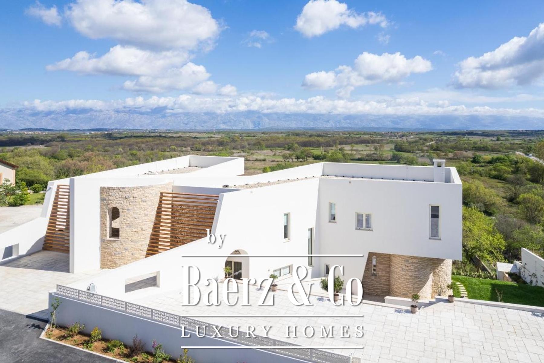 Modern villa Poličnik captures a thoughtful intersection of refined architecture and sweeping natural vistas. This modern villa Poličnik unveils 414 m² of living space, curated to balance sophisticated design with the tranquil rhythm of its surroundings near Zadar. Set on a 1,191 m² plot, the property features a meticulously designed outdoor area, including six private parking spaces, expansive terraces, and a pool that basks in generous light.