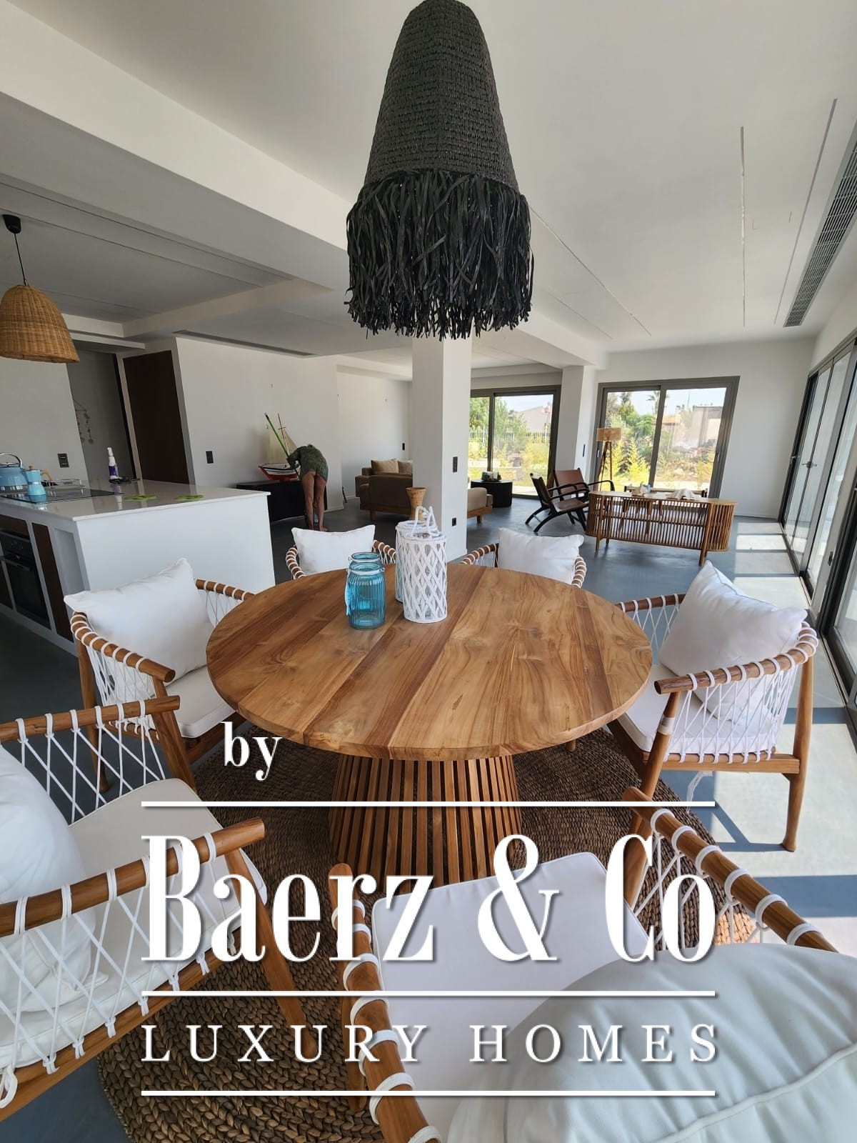 The villa features four master bedrooms, each designed for comfort and seclusion. Interiors are fully furnished with handmade Indonesian pieces, lending the space warmth and character, complemented by high end finishes and a contemporary aesthetic. Every detail, from the equipped kitchen to the carefully curated furnishings, is turnkey and ready for immediate enjoyment.