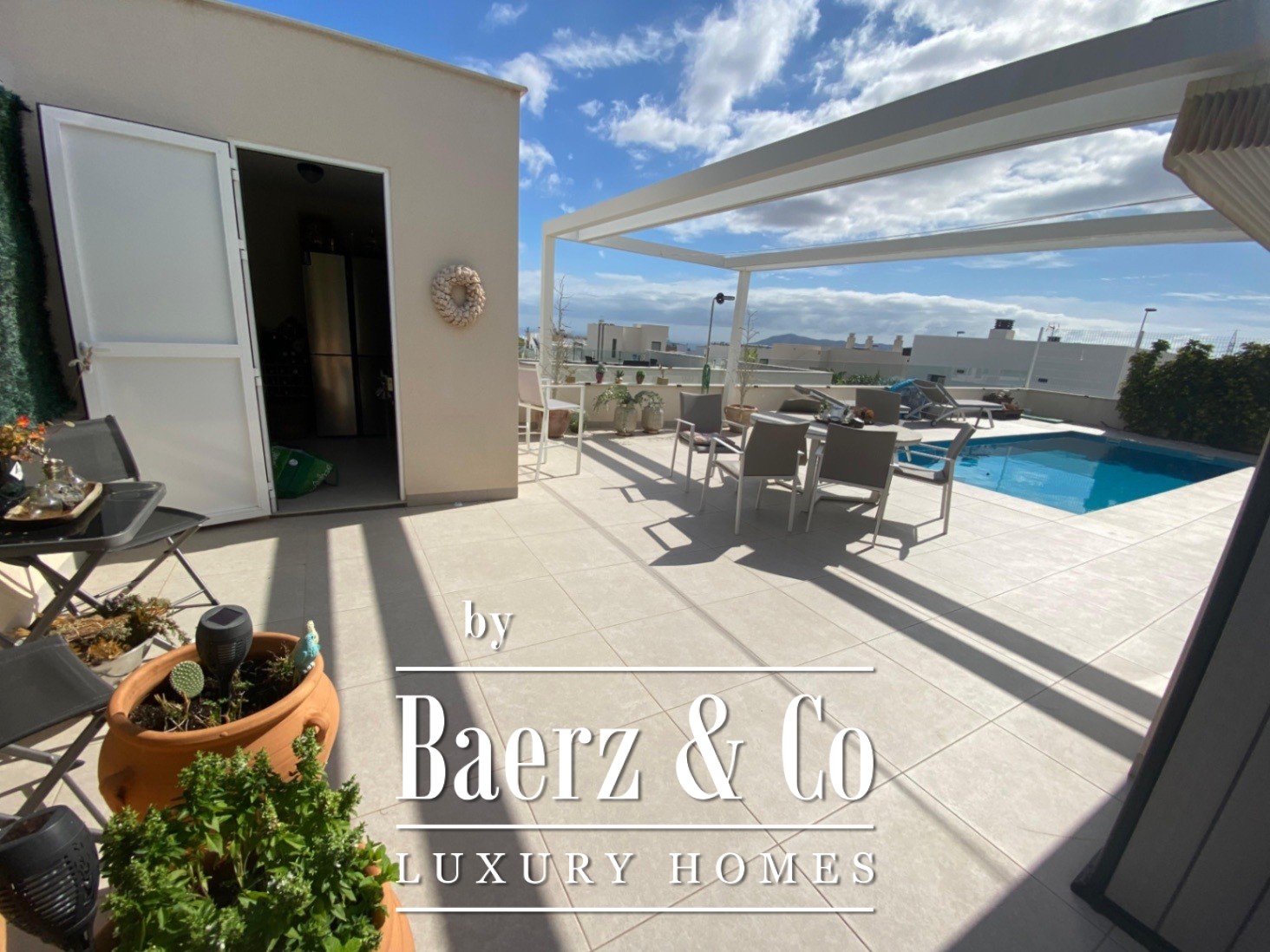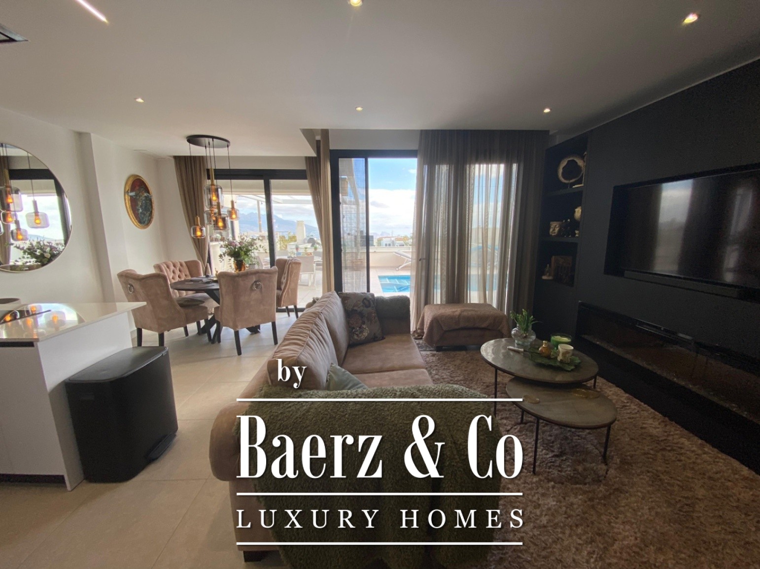 Outdoors, a private pool invites quiet afternoons, complemented by a solarium, barbecue area with a bar, outdoor kitchen, and both open and covered terraces. Private parking, storage room, and laundry facilities add a layer of seamless practicality. This property aligns with the understated expectations of those seeking a spacious family home or the ease of a lock-and-leave retreat in Spain. A luxury villa for sale in Polop where open interiors and purposeful amenities create space for privacy and longevity.