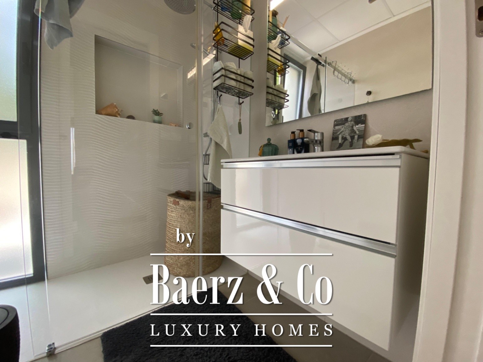 On the lower level, a discreet guest apartment offers two bedrooms, a bathroom, and its own living area—an ideal space for hosting with privacy. Throughout, air conditioning, centralized electric heating, and double-glazed windows with fly screens provide year-round ease.