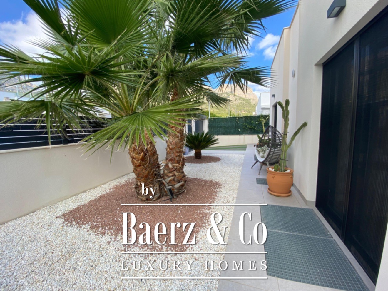 Modern villa Polop anchors its presence in a quiet enclave, built in 2021 and designed for a serene pace of Mediterranean living. This modern villa Polop rests on a 408 m² fenced plot and extends 110 m² across a single level, where light fills a living and dining space that opens into an integrated kitchen. The main floor presents three bedrooms and two full bathrooms featuring showers, each room shaped by clarity and comfort.