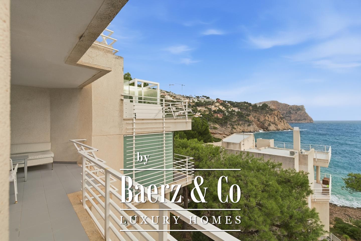 This duplex penthouse Port d'Andratx is defined by panoramic open views of the Mediterranean Sea and an abundance of natural light throughout its 241 m² layout. The property is arranged across two floors, offering four bedrooms and three bathrooms, a separate kitchen, utility room, and a spacious living and dining area that flows effortlessly onto a terrace overlooking the coastline.
