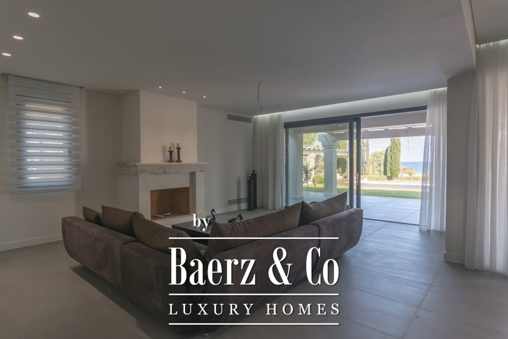 Seaside villa Porto Heli is a newly built residence set on a 4,000 m² coastal plot in Petrothalassa, offering a rare sense of privacy and scale. This villa features approximately 400 m² of refined living space arranged over two levels, including seven bedrooms and an additional guest WC, providing exceptional flexibility for private family living or elegant entertaining.