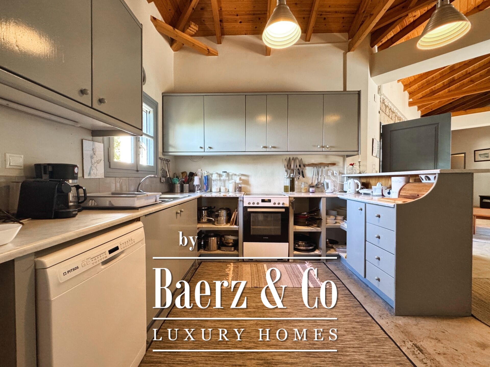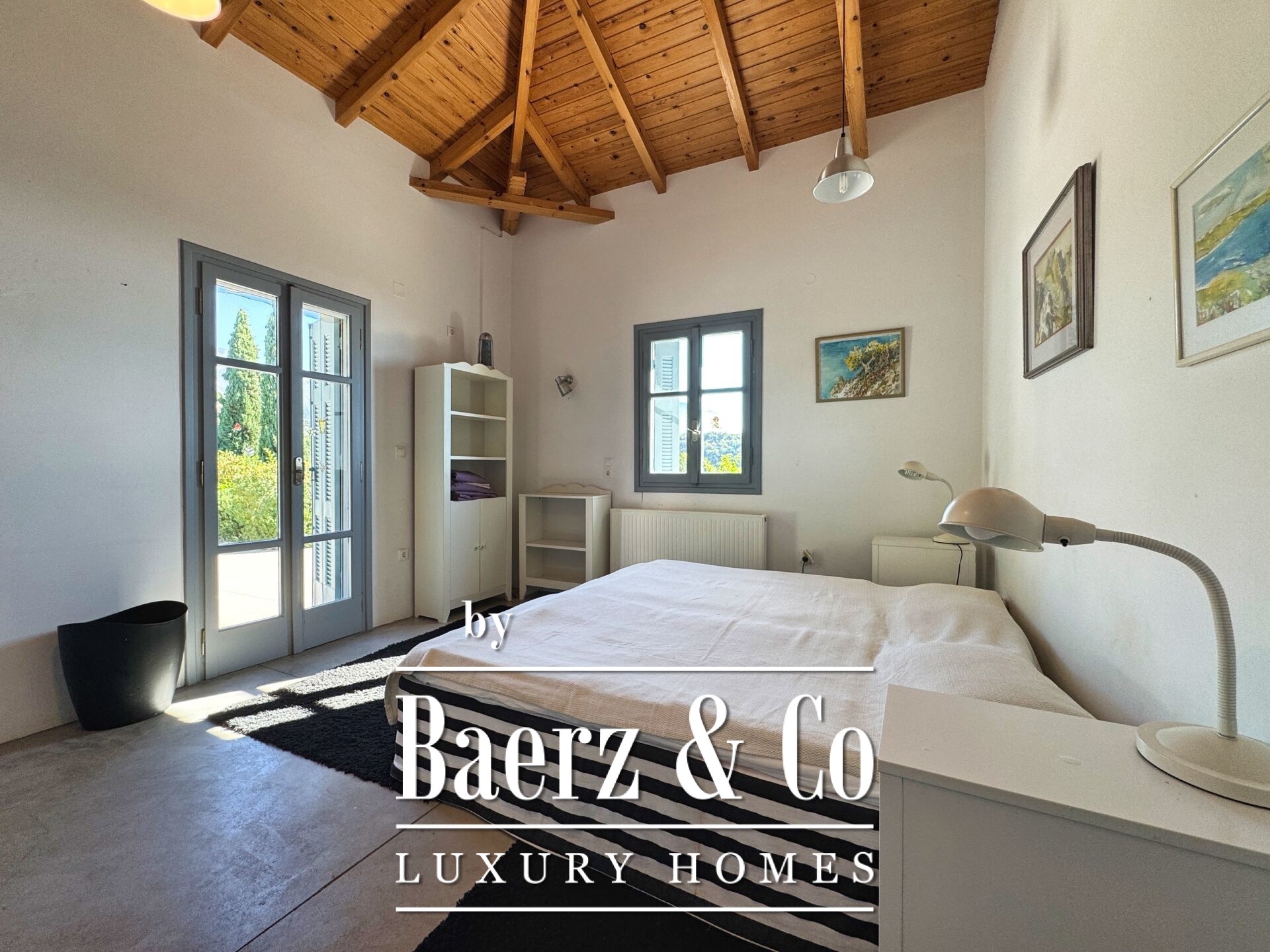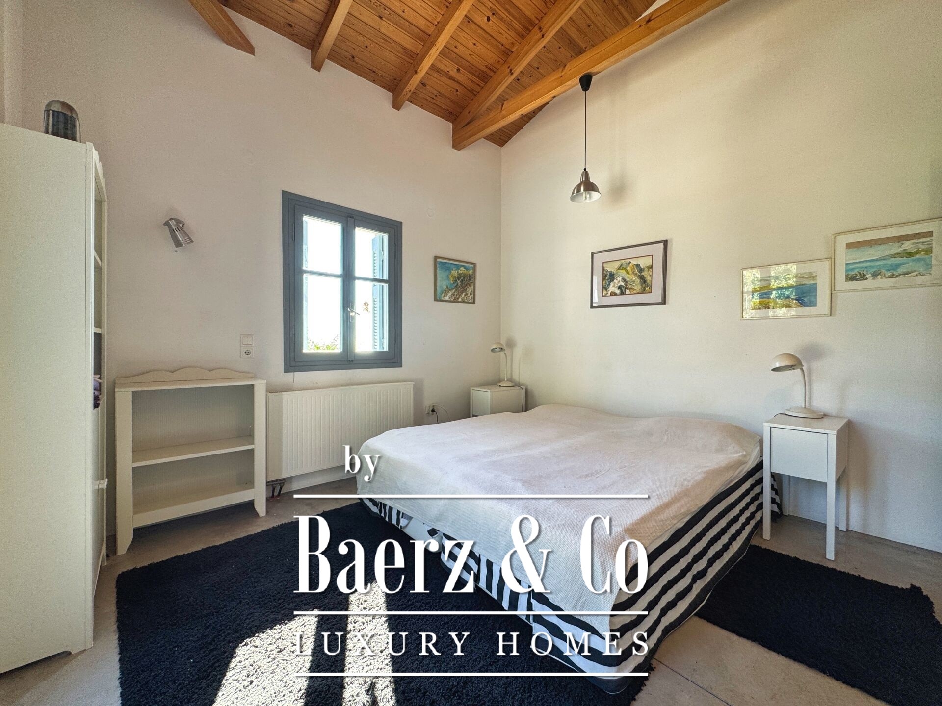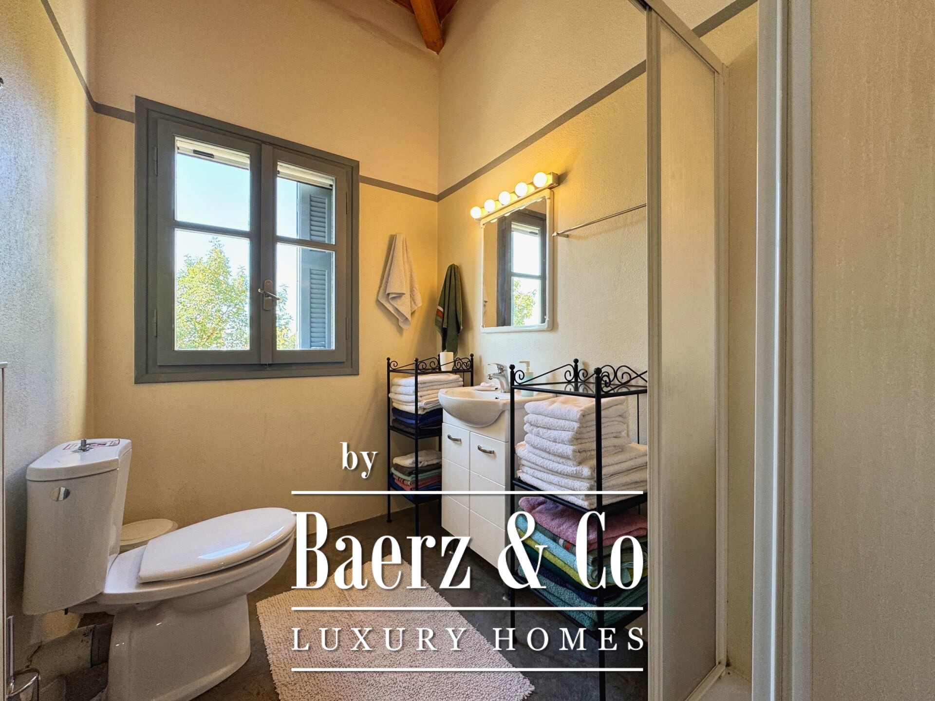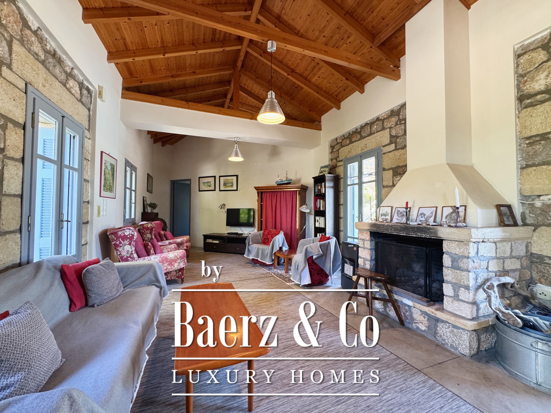 On the same level, a flexible open-plan area with its own bathroom can serve as a guest house, wellness suite, or creative atelier. Outdoors, a private swimming pool frames the mountain-to-sea panorama, inviting quiet reflection. Heating systems—central, oil, solar water, and boiler—support year-round living. This luxury villa for sale in Prosilio honors the Mani tradition, delivering a home of enduring quality, privacy, and serene connection to both land and sea.
