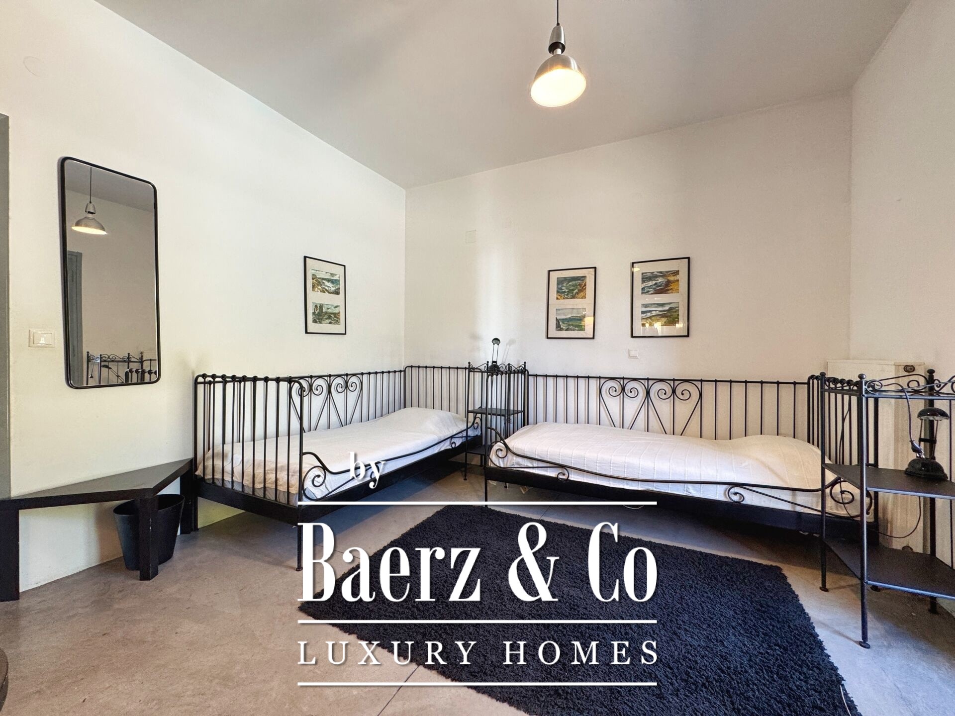 The residence is characterized by meticulous stone construction and a carefully considered design. The ground floor opens to an expansive living space and kitchen, five bedrooms, and four bathrooms, each finished to a high standard, ensuring privacy and comfort whether for family or guests. Internal hallways wind toward two distinct stone towers, each hosting a bedroom with a unique sense of place, offering separation within the home and a rare architectural rhythm.