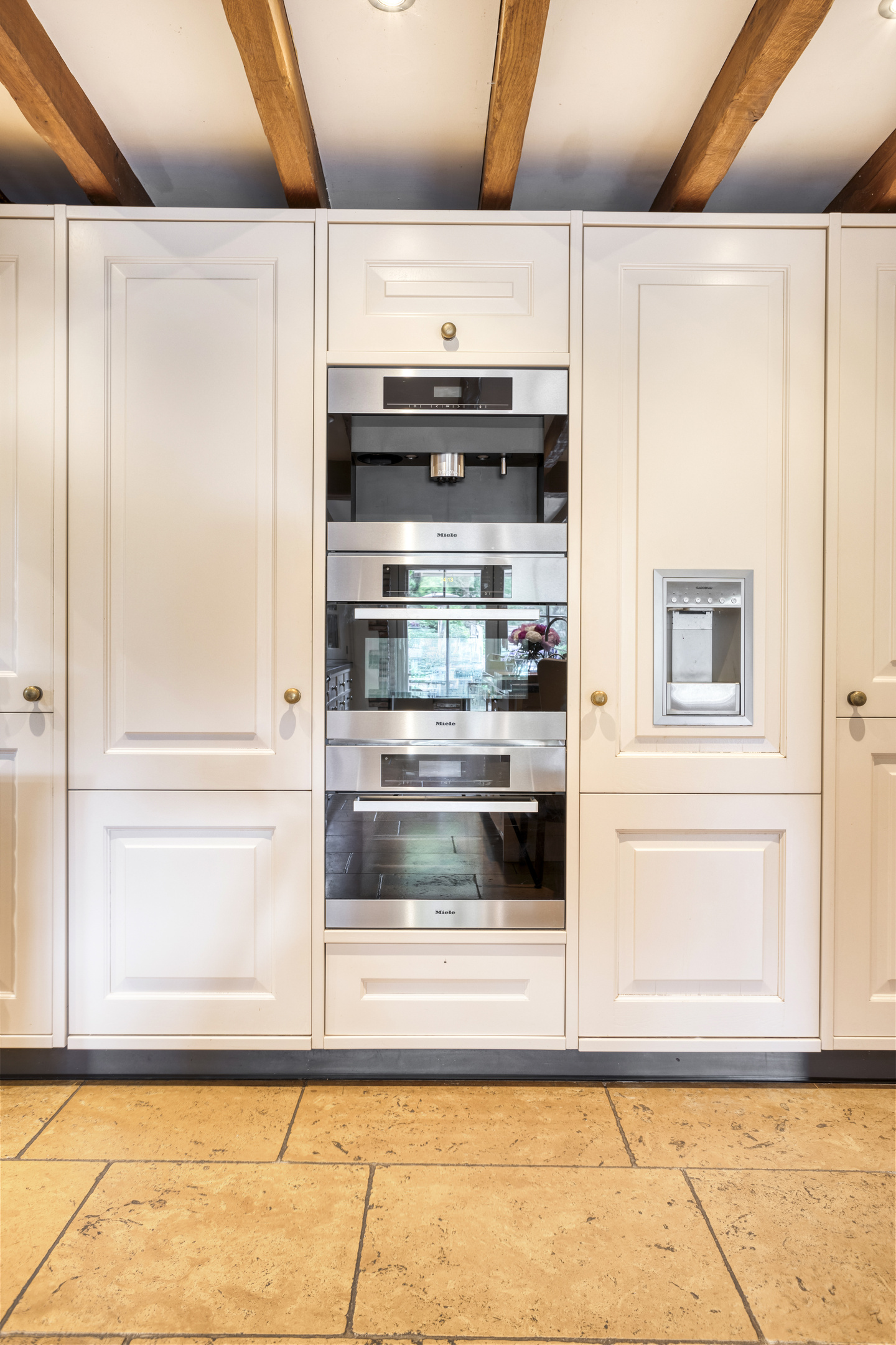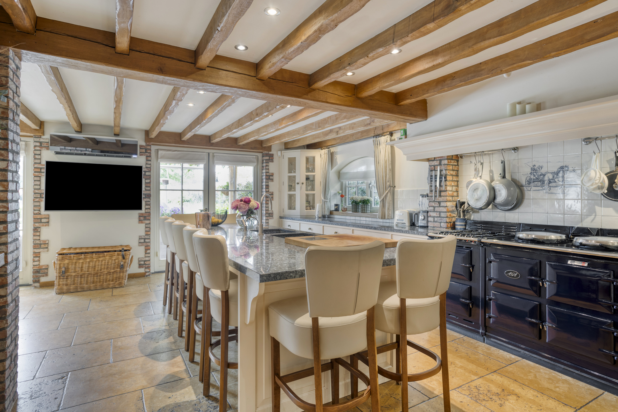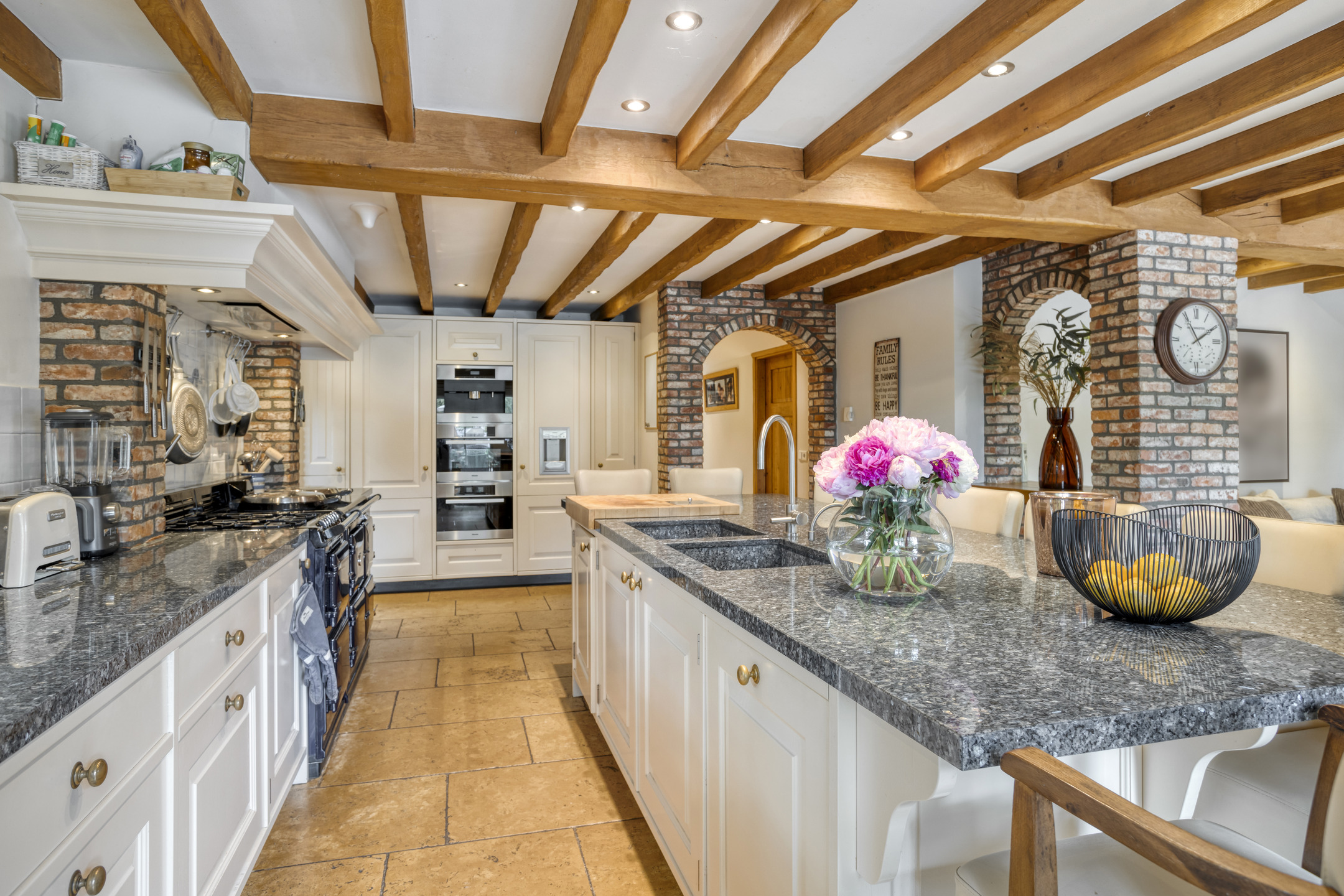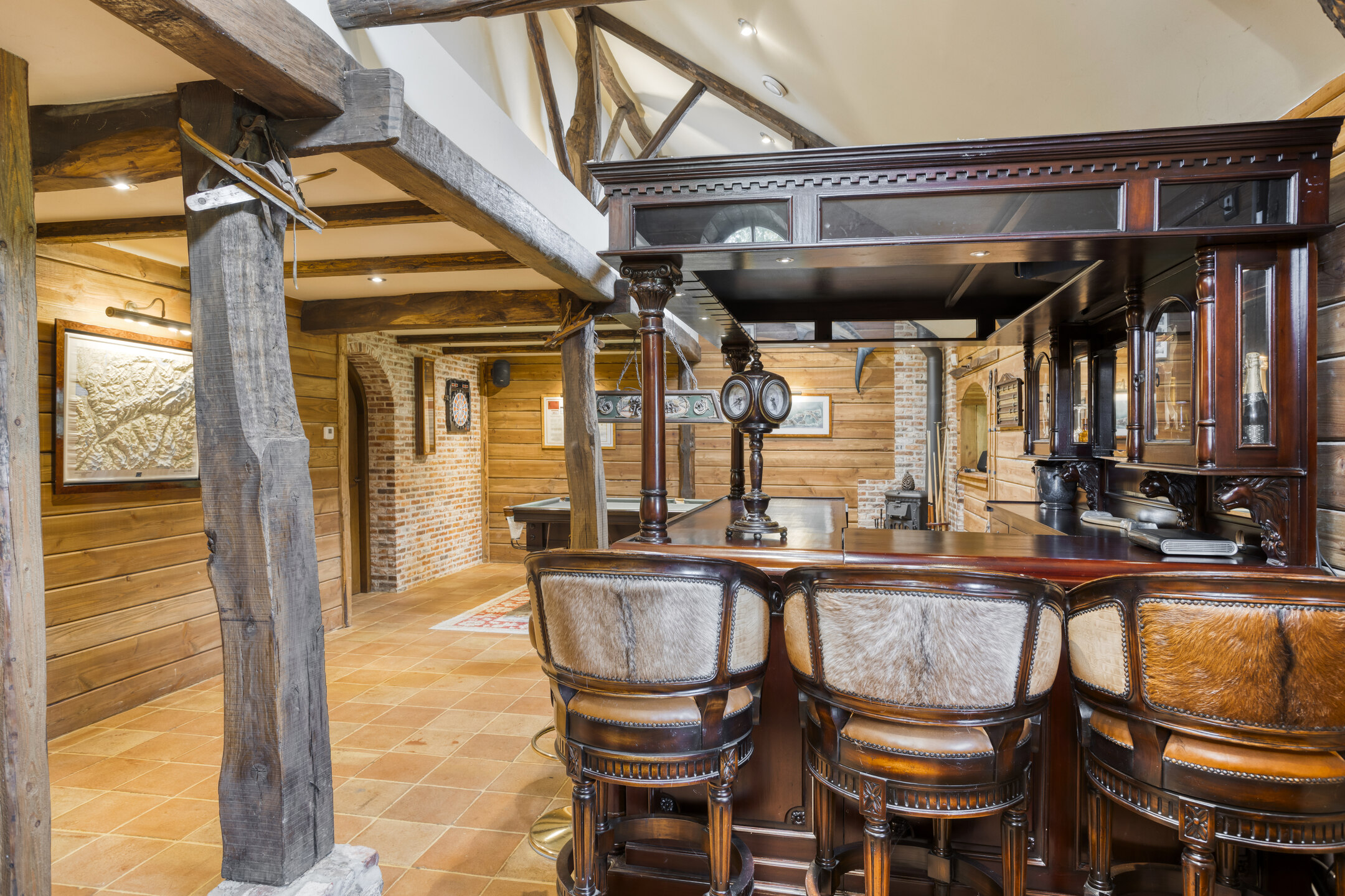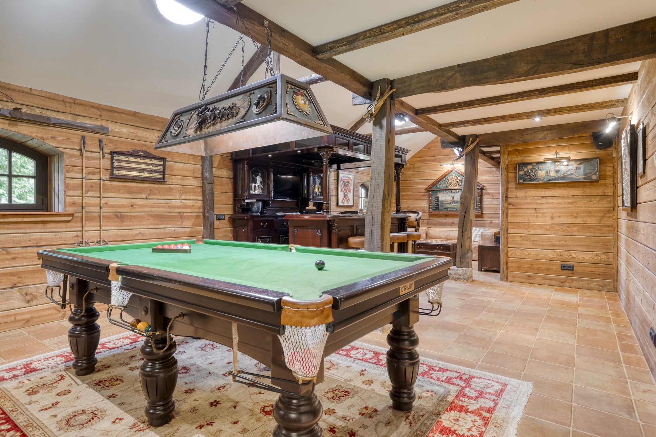 Farmhouse Riethoven offers a sense of seclusion and legacy on a peaceful street at the edge of Riethoven, Netherlands. This fully renovated residence occupies a magnificent 6,755 m² plot, with 484 m² of living space balancing restored character and contemporary comfort, including a detached guest house and a spacious outbuilding. The farmhouse Riethoven is enhanced by a thatched roof and thoughtful details throughout, from the marble-floored entrance and carved hardwood staircases to the elegant beamwork and expansive, light-filled interiors.