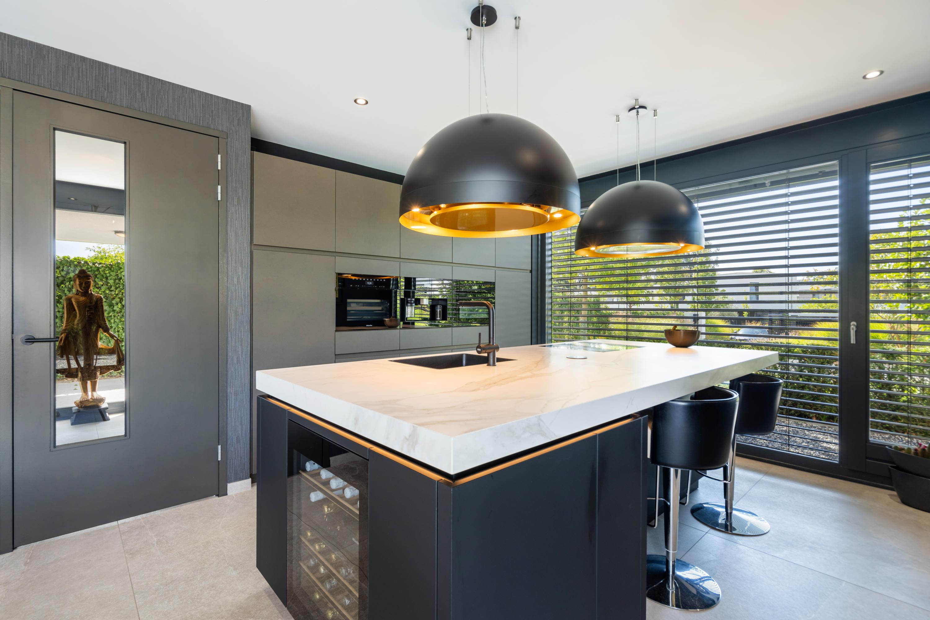 There is a seamless flow between the luxurious kitchen with cooking island, the dining area, and the living room — perfect for entertaining guests and creating a warm, inviting atmosphere. The ground floor is a fantastic place to spend quality time with family and friends. From every angle, you enjoy beautiful views of the garden. And on sunny days, simply open the sliding doors to create a wonderful indoor?outdoor living experience.