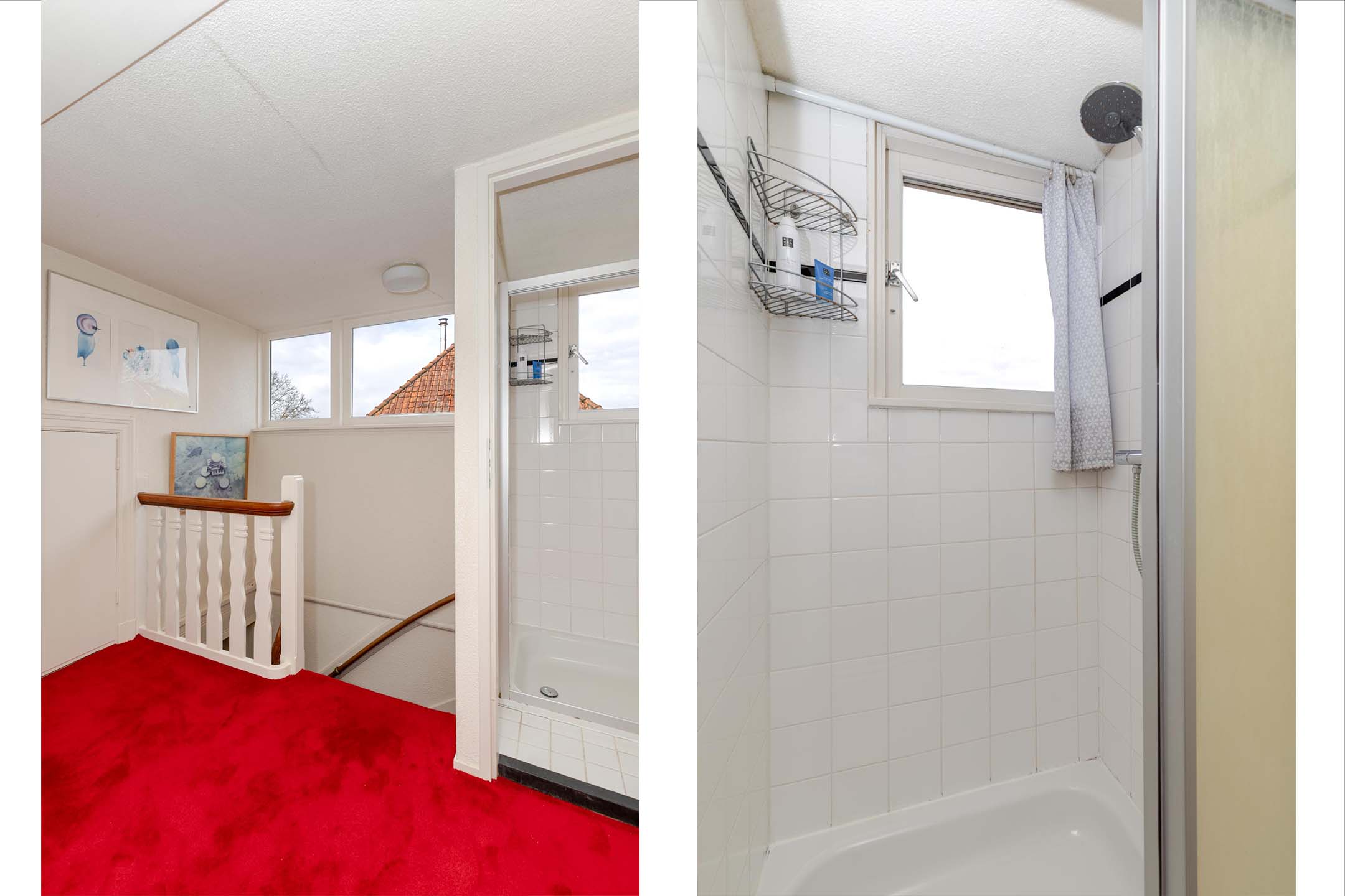 Landing with plenty of natural light, 2 spacious and charming bedrooms with dormer windows and each with its own vanity unit; the 2nd bathroom/shower room is located on the landing, and there are 2 spacious storage areas under the sloping roof.