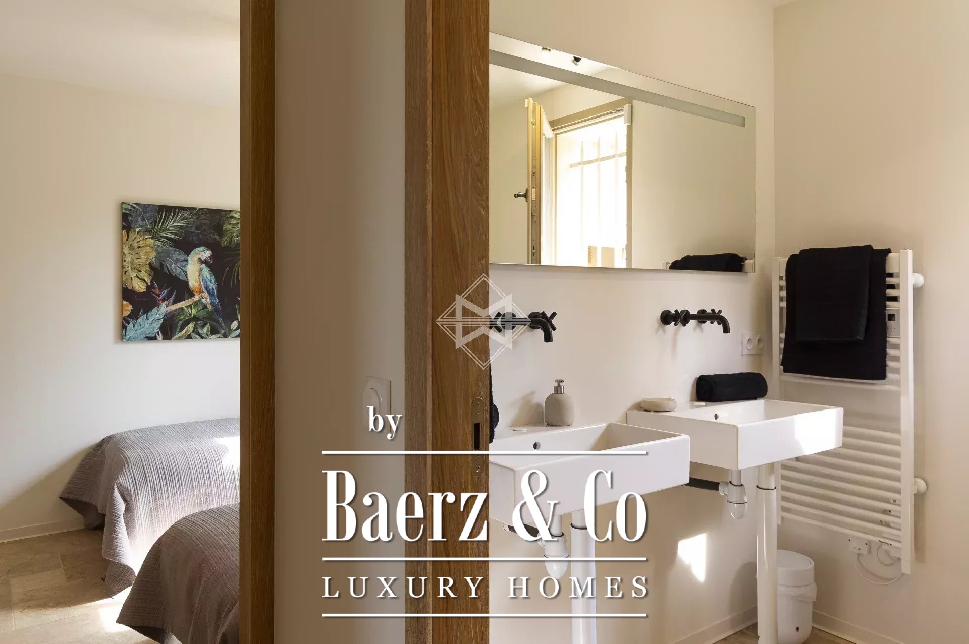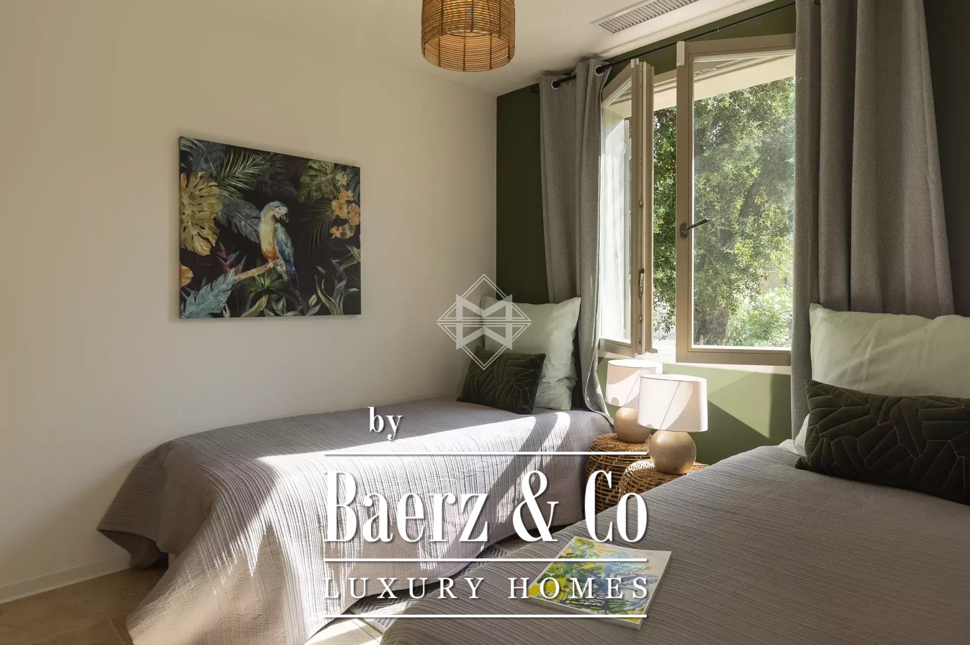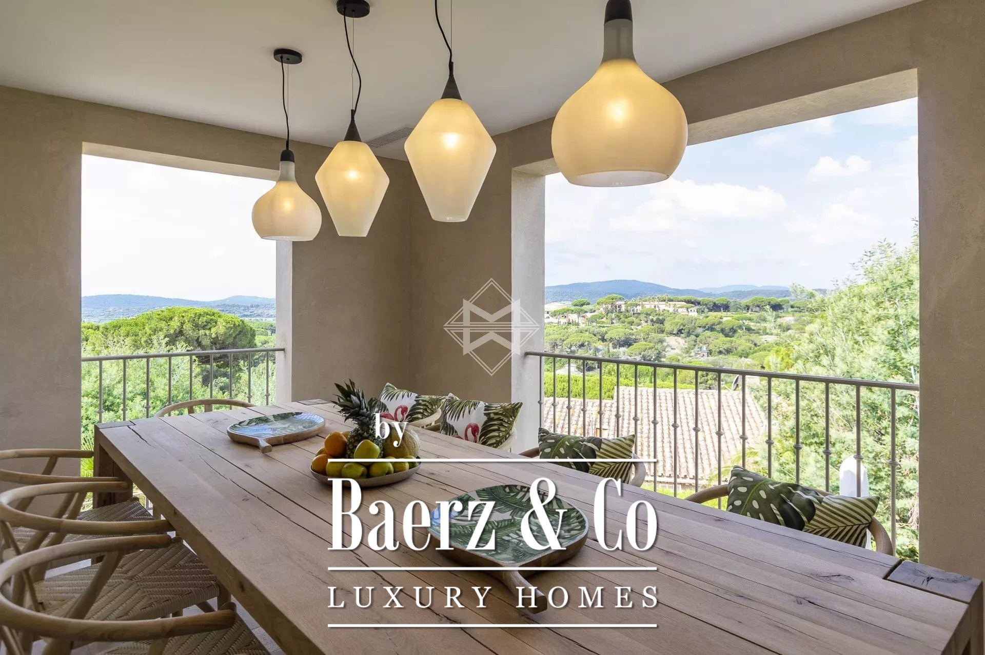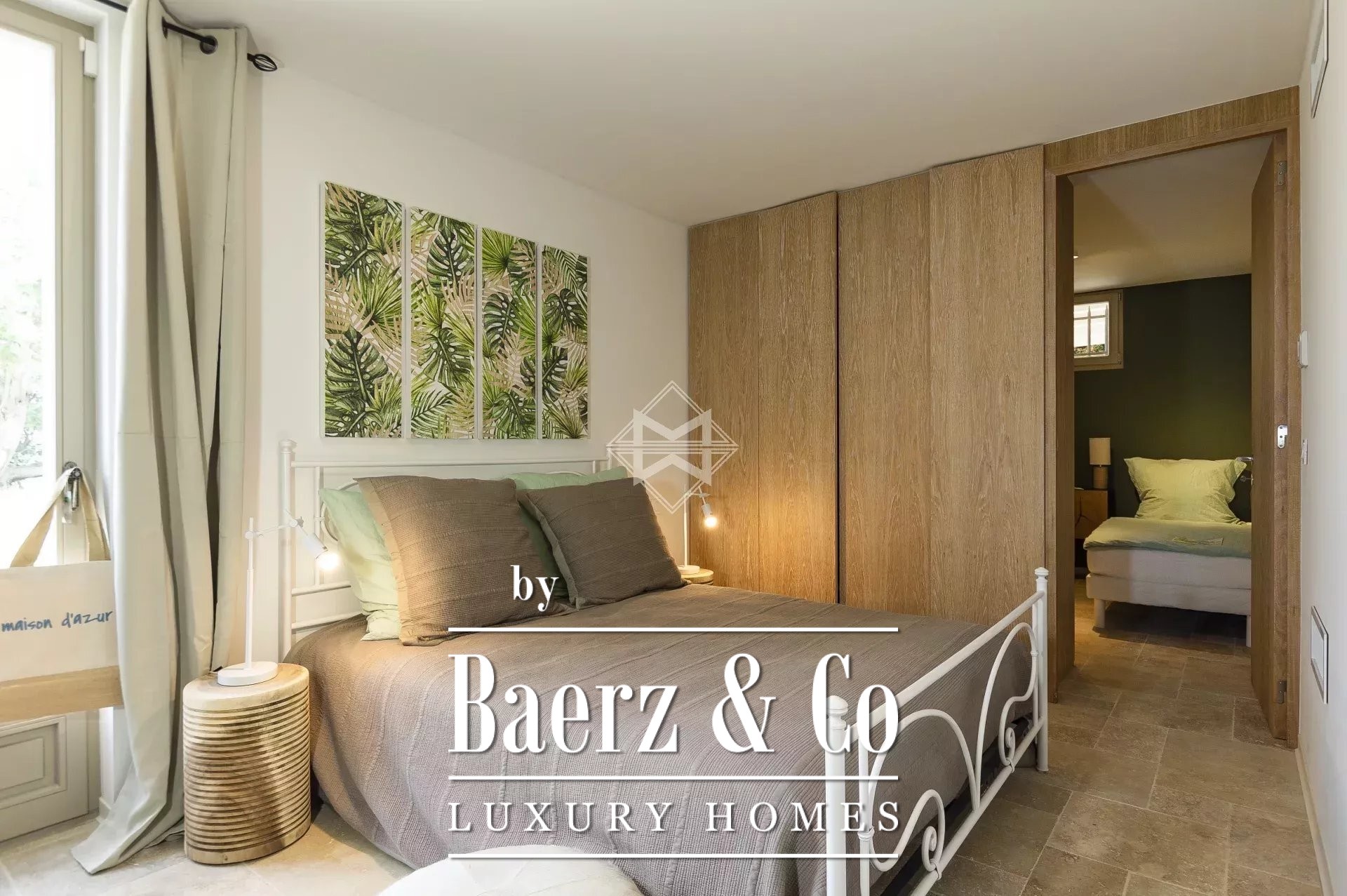 Recently renovated, this stunning 160 m² villa with 5 bedrooms is the perfect place to relax. Surrounded by lush greenery, the property offers an exclusive and intimate atmosphere, where charm and tranquility blend harmoniously. Its ideal location between the village and the beaches offers a spectacular 270-degree panoramic view of the surrounding hills and the Château de la Messardière. The villa boasts a charming garden and a heated pool, completely secluded from view, ensuring total privacy.