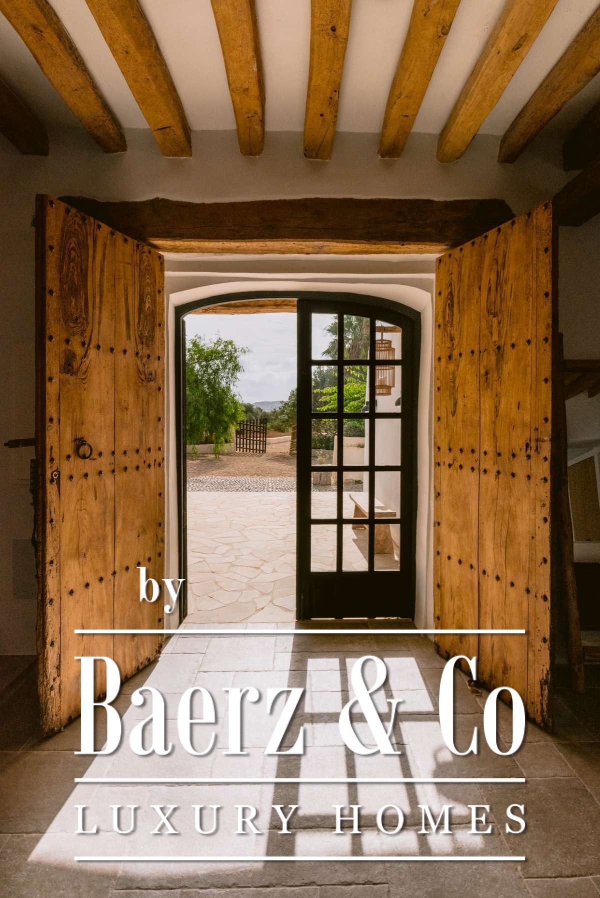 The casita is located about 50 meters in front of the main house, ensuring optimal privacy and providing an ideal space for renting out or hosting guests. Both the main house and the casita feature underfloor heating as well as air conditioning systems in each room, ensuring a pleasant temperature all year round. Both residences offer fiber optic high-speed internet and are equipped with modern alarm systems, guaranteeing a perfect connection and optimal security. On top of that, all inventory is included with this magnificent finca, making it a turnkey retreat, ready for you to move into.The outdoor spacesStepping into the garden, you will find several spacious terraces, a wonderful shaded al fresco dining area, and a sun-drenched swimming pool of over 90m², accompanied by comfortable loungers. The modern fence provides the privacy you desire, while the luxurious Ibicenco atmosphere is accentuated by the white-painted property and wooden garden furniture and decorations. The spacious land extending between the main house and the guest house is ideal for landscaping and surrounds both houses. In the garden of the main residence is an original monumental Ibicencan tower, which adds a historical touch to this beautiful property. Another special detail is the lighting design of the gardens. The path to the casita, for example, has discreet spotlights on the ground, showing you the way to this separate residence. This property offers traditional Ibiza allure combined with a modern luxury lifestyle.
