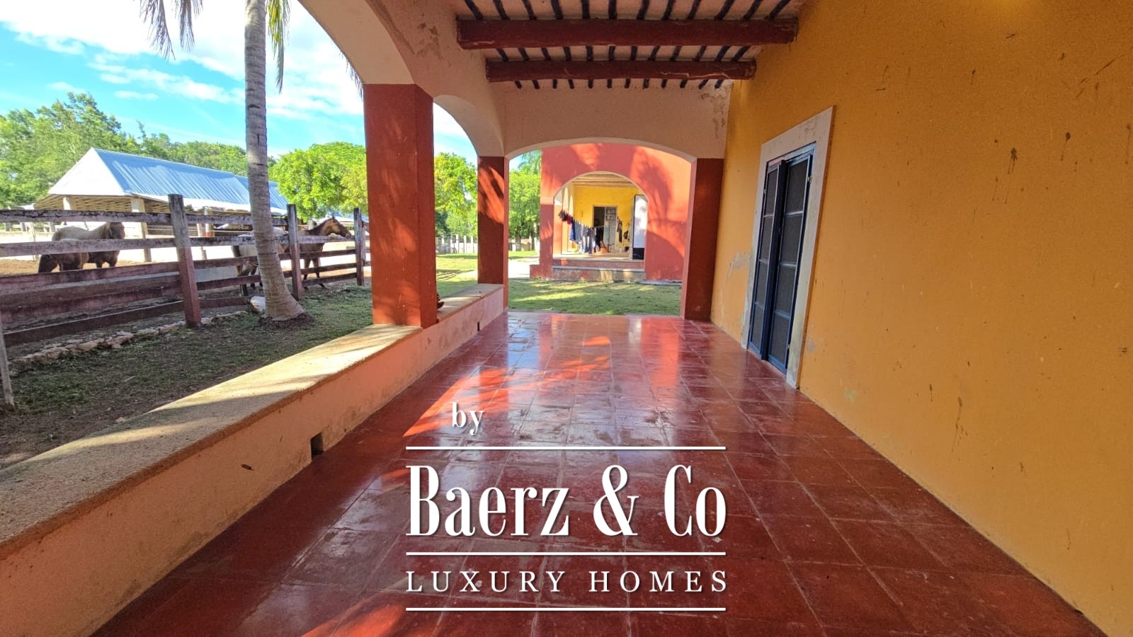 Water security is ensured by a deep well between 120 and 160 meters, a new pump, and a solar energy system with generator backup. Six corrals, twelve paddocks, stables, feeding and drinking troughs—most renovated within three years—sustain current livestock, including thirty cattle and eight horses, with historical capacity exceeding a thousand head. Period artifacts and original machinery recall the estate’s agricultural heritage, while the land’s virgin soils—Kancab, Calché, and Cacalum—remain highly valued for diverse agricultural pursuits.
