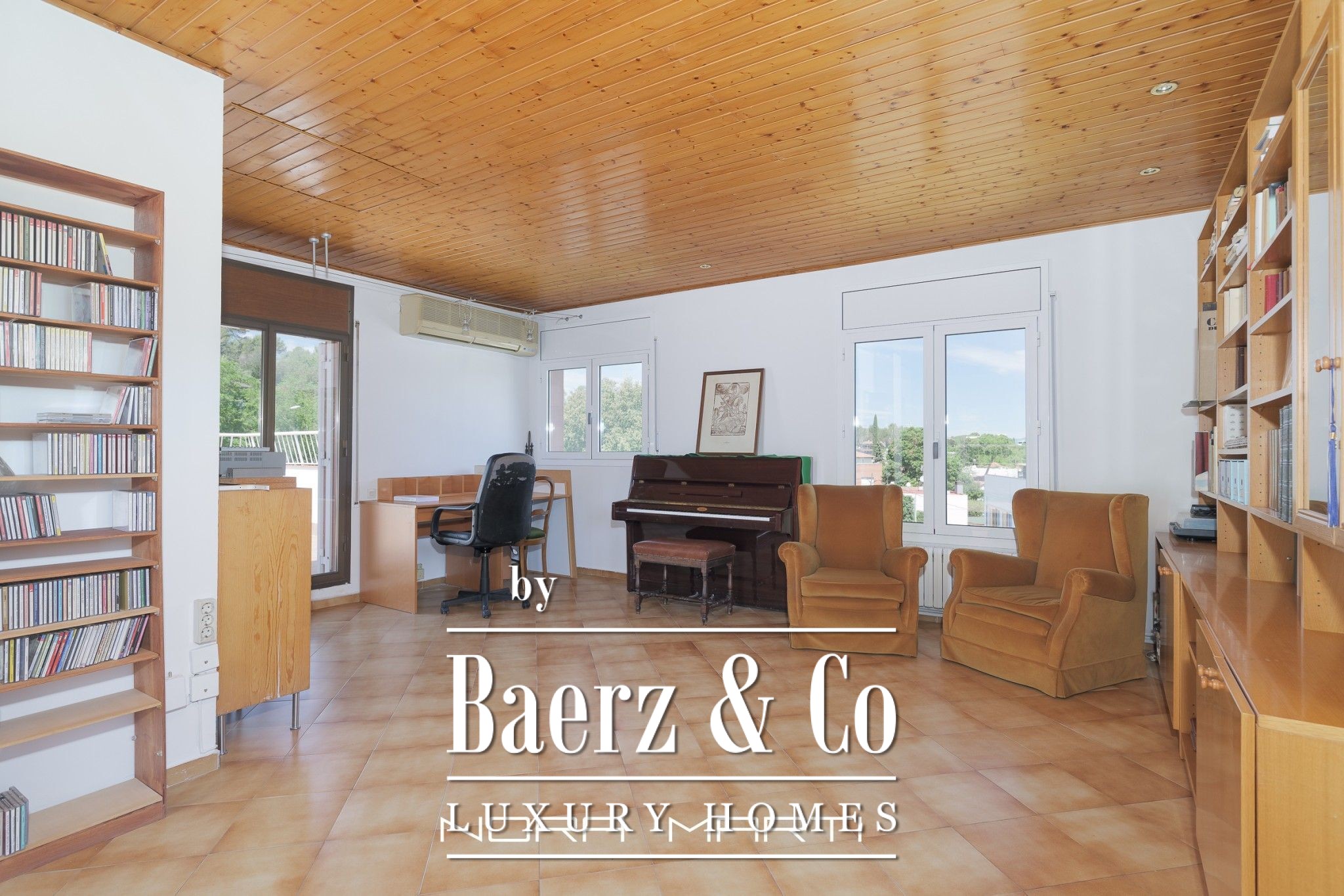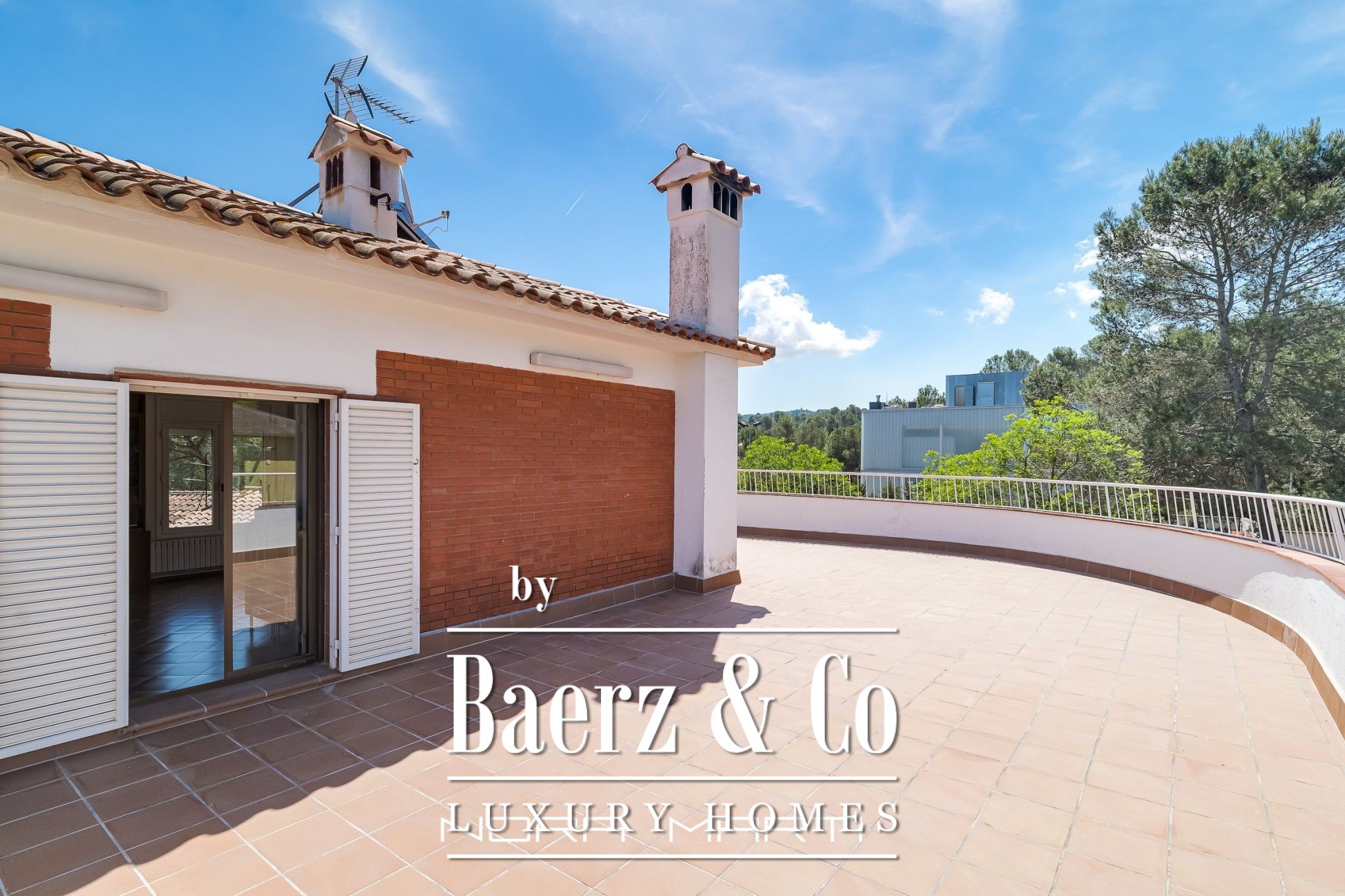 Outdoor dining, a surrounding terrace, and two independent parking accesses enhance both convenience and privacy. Located in a tranquil yet well-connected area, this house in Sant Cugat creates a serene context for family and entertaining life.
