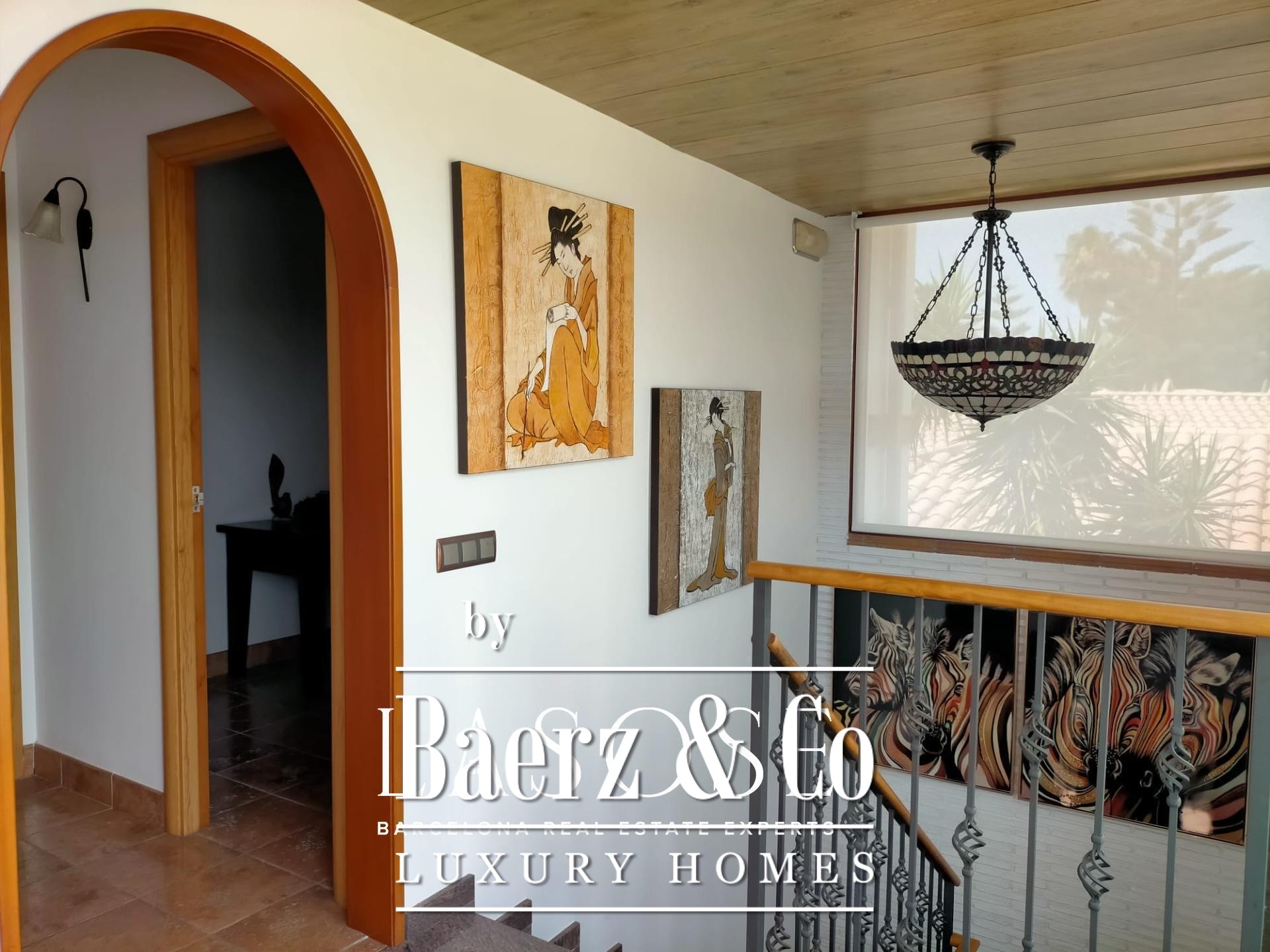 Villa Sant Pere de Ribes is quietly positioned in the esteemed Els Cards residential area, set between Sitges and Sant Pere de Ribes, where privacy and panoramic views define every living moment. This five-bedroom, three-bathroom villa blends traditional Spanish architecture with contemporary refinement. Recently renovated interiors preserve authentic details such as arches and natural textures, while bringing in clean modern lines and warm tones. The open-plan main floor flows across kitchen, dining and living spaces, illuminated by abundant sunlight from windows on two sides. A statement fireplace centers the living area, offering an inviting gathering point year-round.
