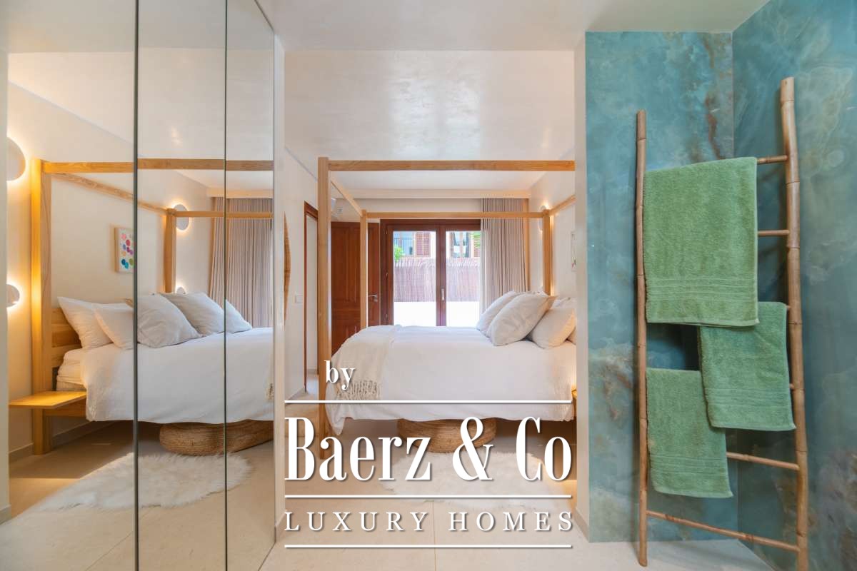 The SurroundingsA rare find in the heart of Ibiza - welcome to Santa Gertrudis, the most beloved and charming village in Ibiza. This delightful place is a favourite meeting point for locals, families, entrepreneurs, and lifestyle lovers from around the world. The lively village square with its cafés, art galleries, and excellent restaurants is just a short walk away. Everything here feels warm and welcoming, with an atmosphere that is both stylish and relaxed. Thanks to its central location, you can reach the most beautiful beaches, Ibiza Town, and the airport in no time. Santa Gertrudis offers the best of Ibiza: tranquillity, beauty, gastronomy, and authenticity.The ApartmentThis beautiful ground-floor apartment with a total of 129 m² exudes a warm and exclusive atmosphere. The 57 m² interior is designed with great attention to detail, combining comfort with a unique and stylish appearance. The living room forms the heart of the home and connects to the outdoor space through large doors, seamlessly blending indoor and outdoor living.