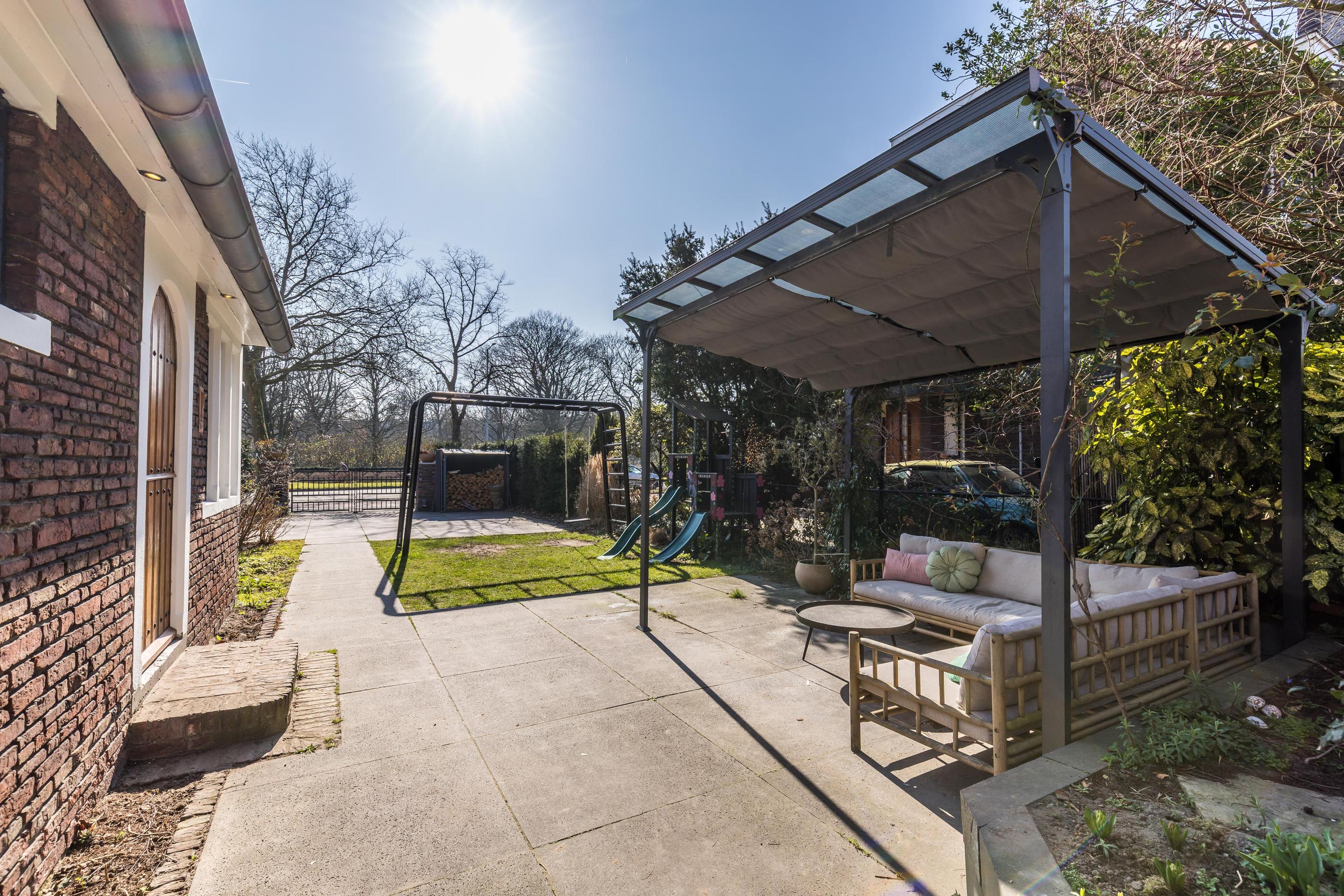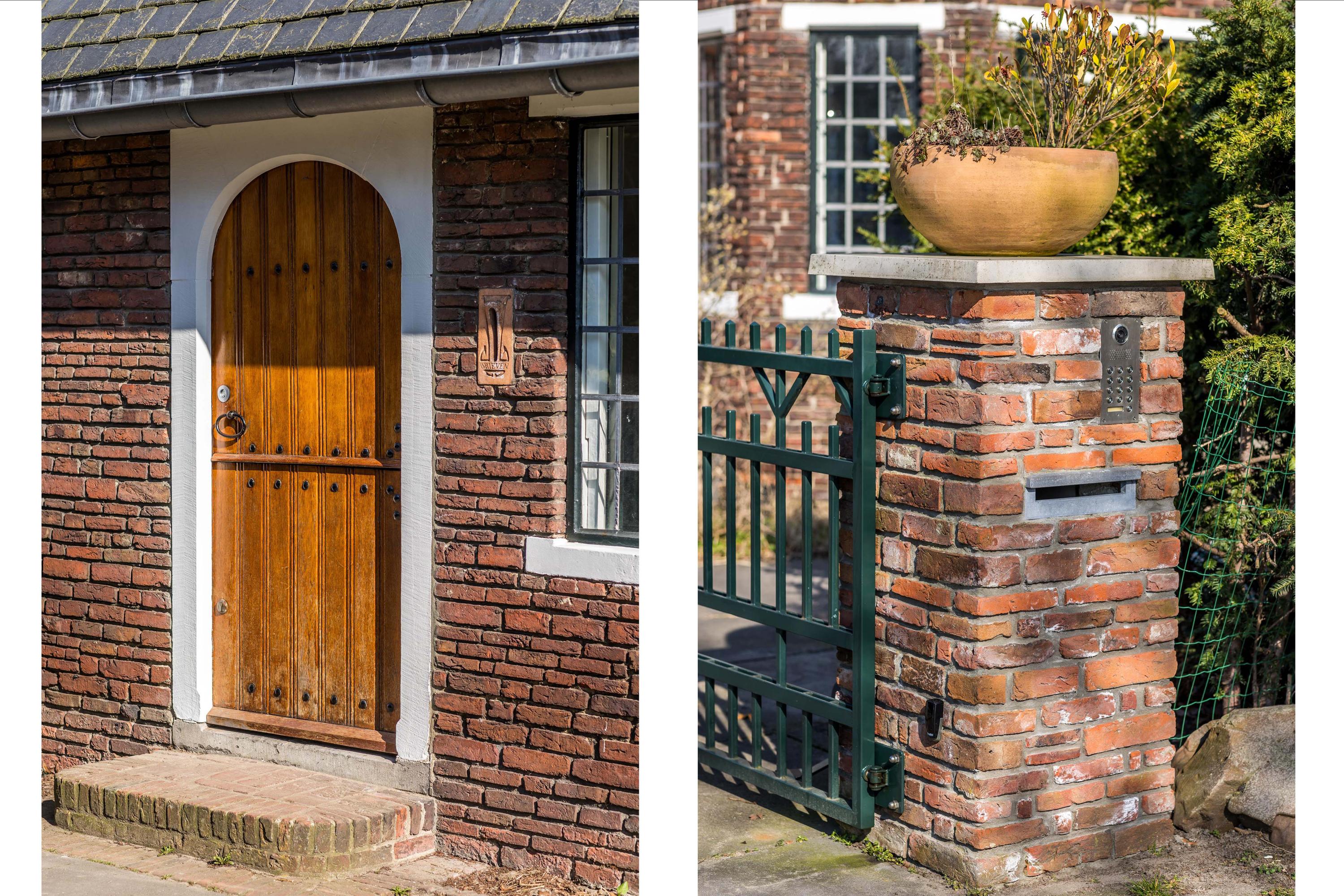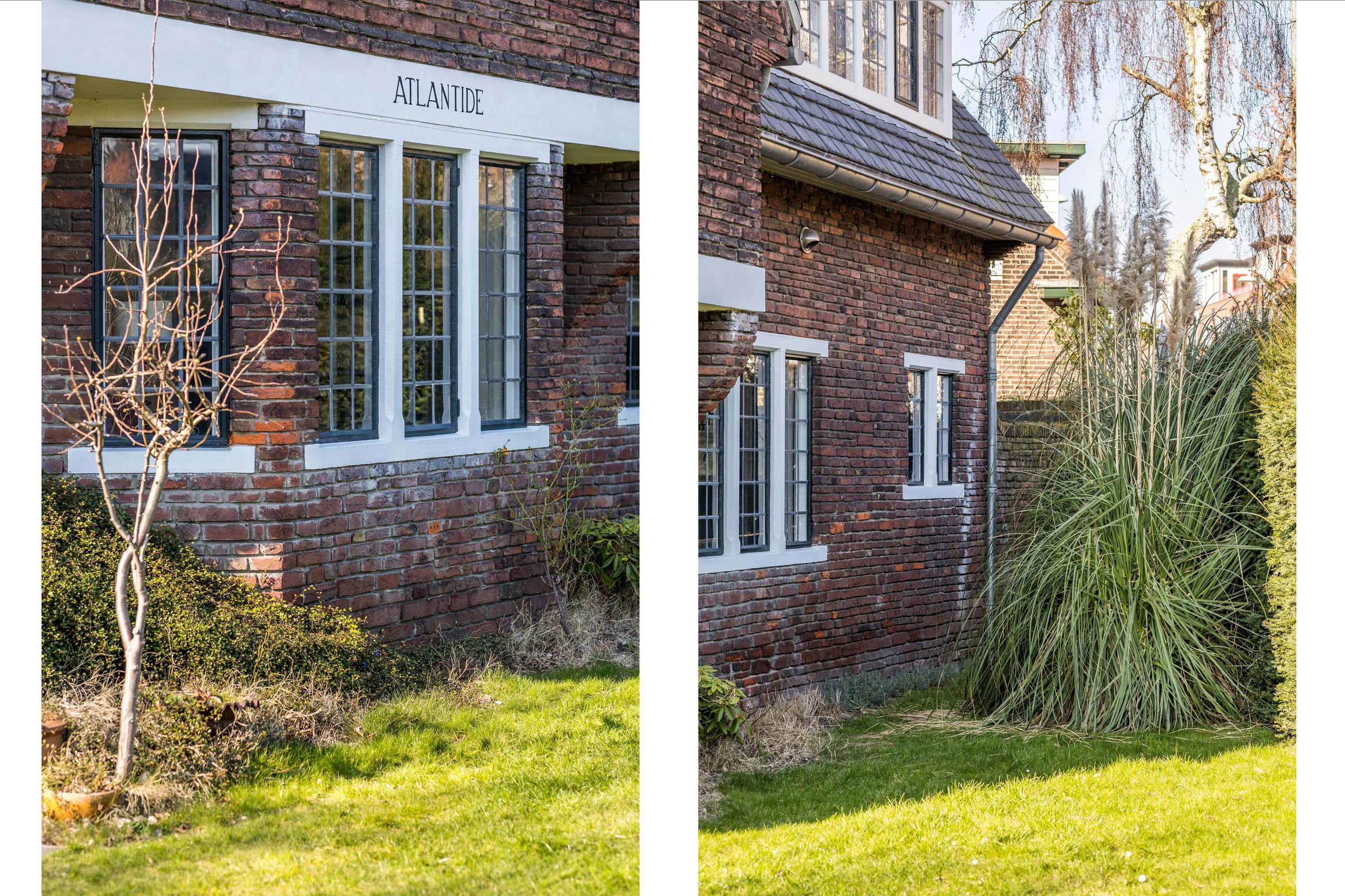 Garden: due to its open location, the garden is located all around the house. The north side is located at the back of the house and is the most limited in terms of space. The side gardens (east and west) and the front garden (south) have the most space and always offer a spot in the sun during the day. Both side gardens have several fruit and nut trees that provide fresh fruit and nuts every year. The side garden with west and south location is furnished with various seating areas and for playing. Parking on private property with several cars is easily possible and the garden is closed off by an electronically operated gate that is made in the same style as the fence of the Julianapark.