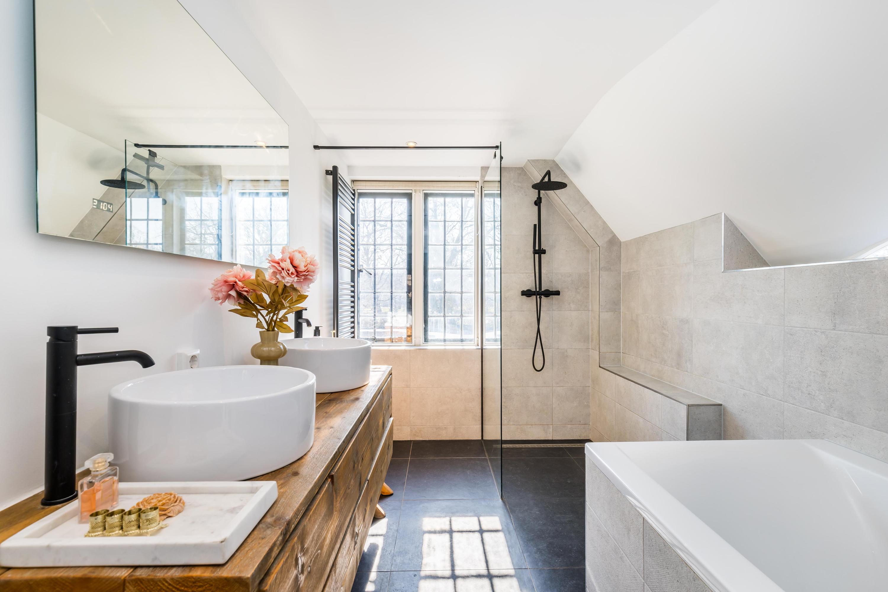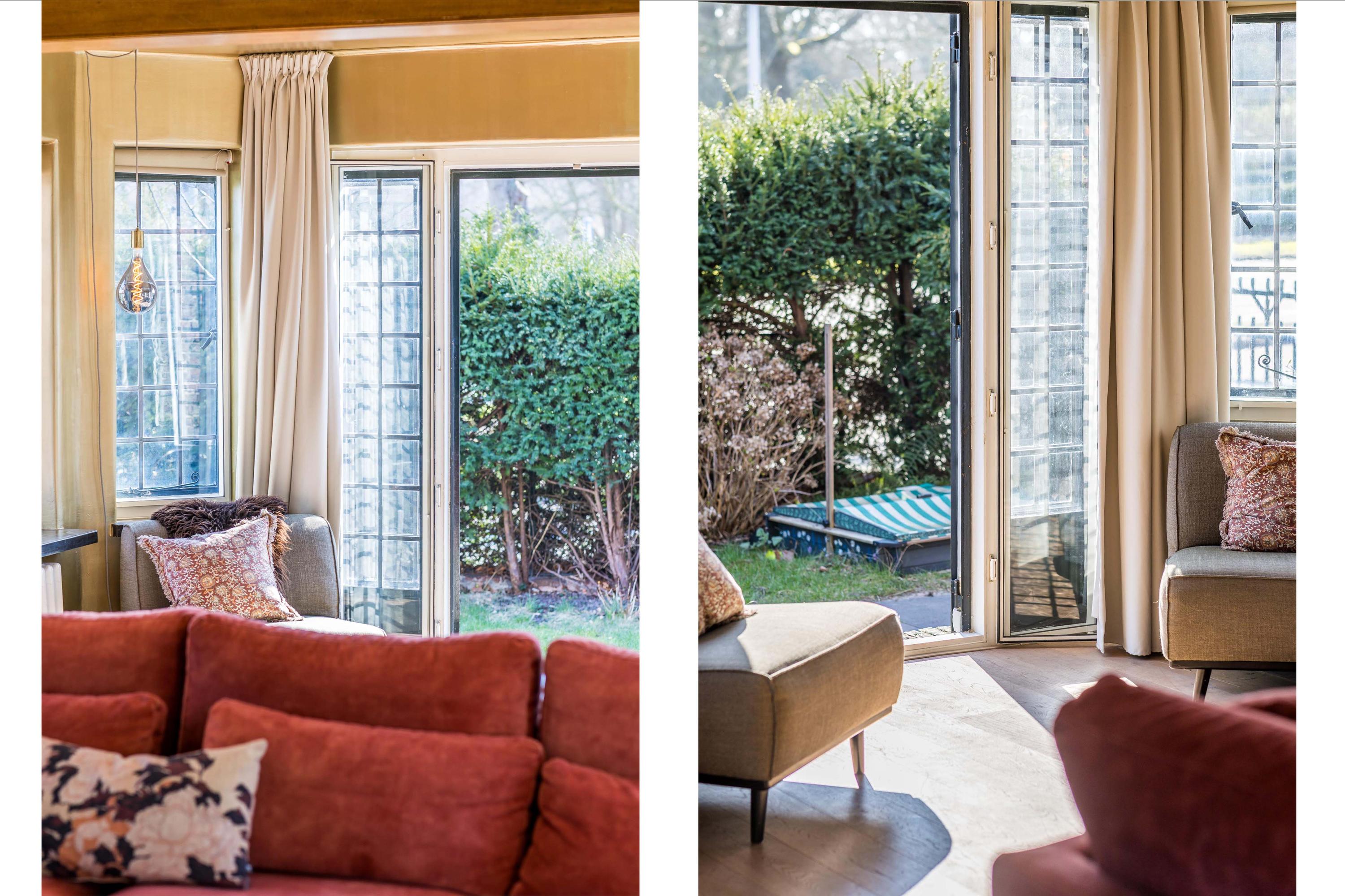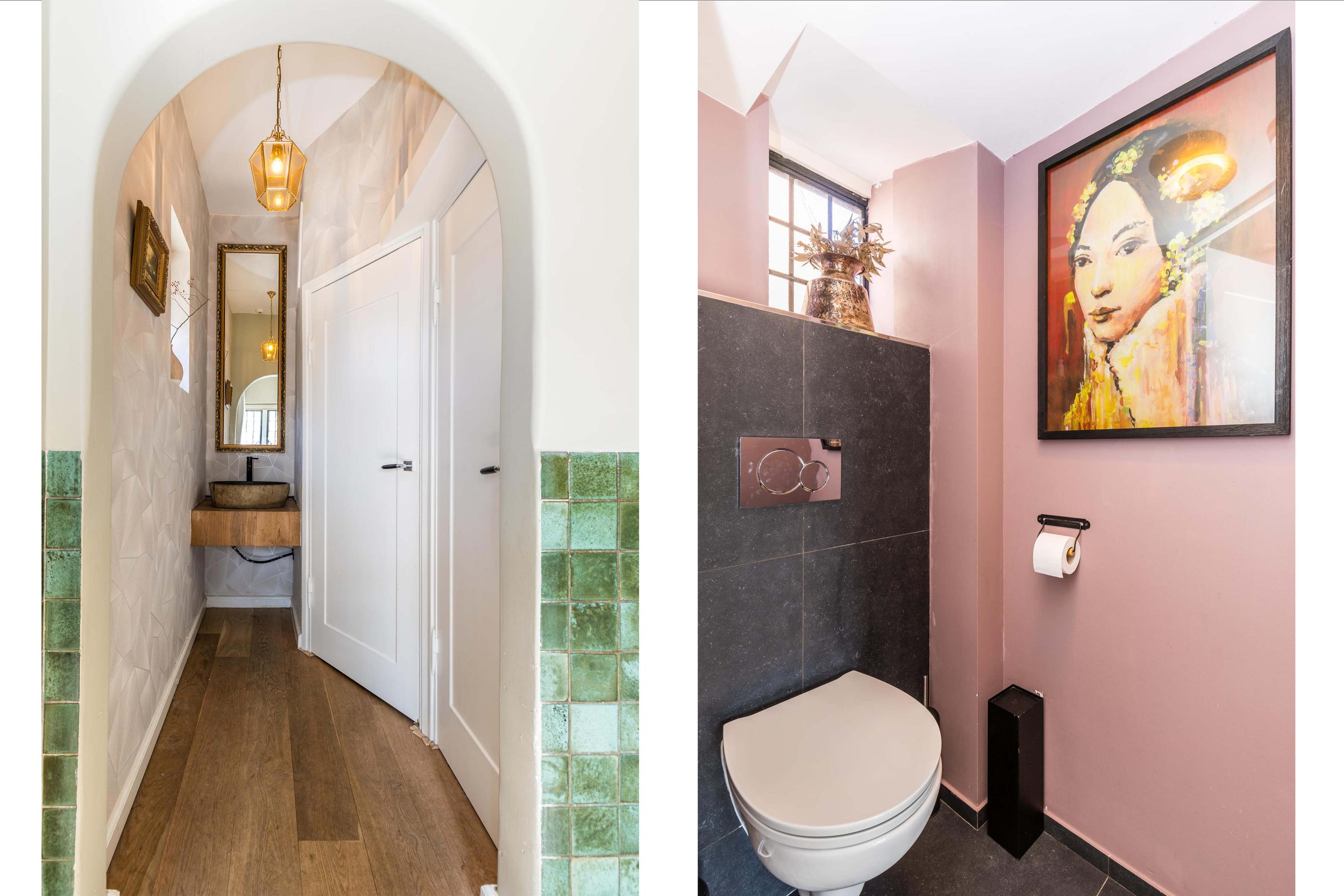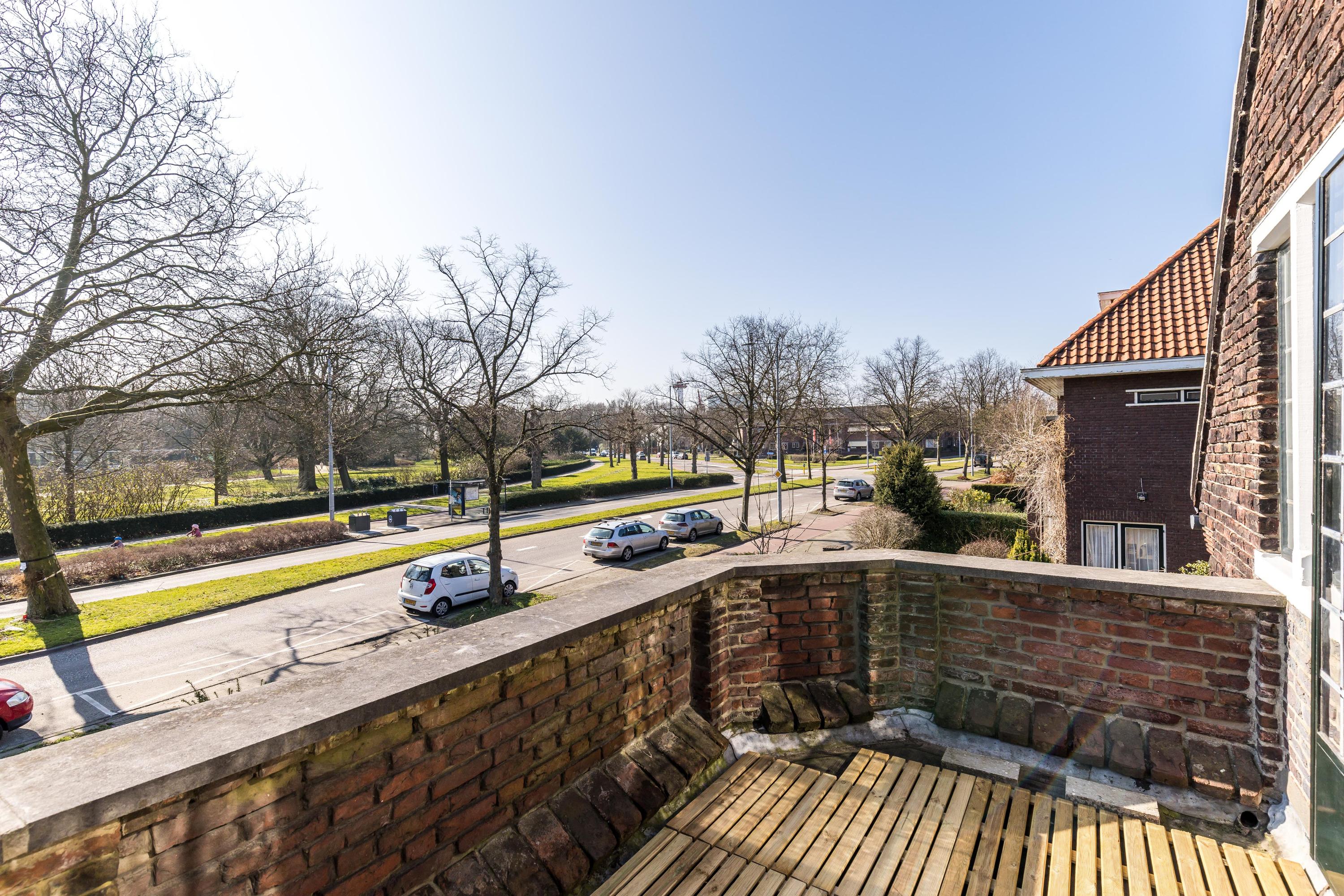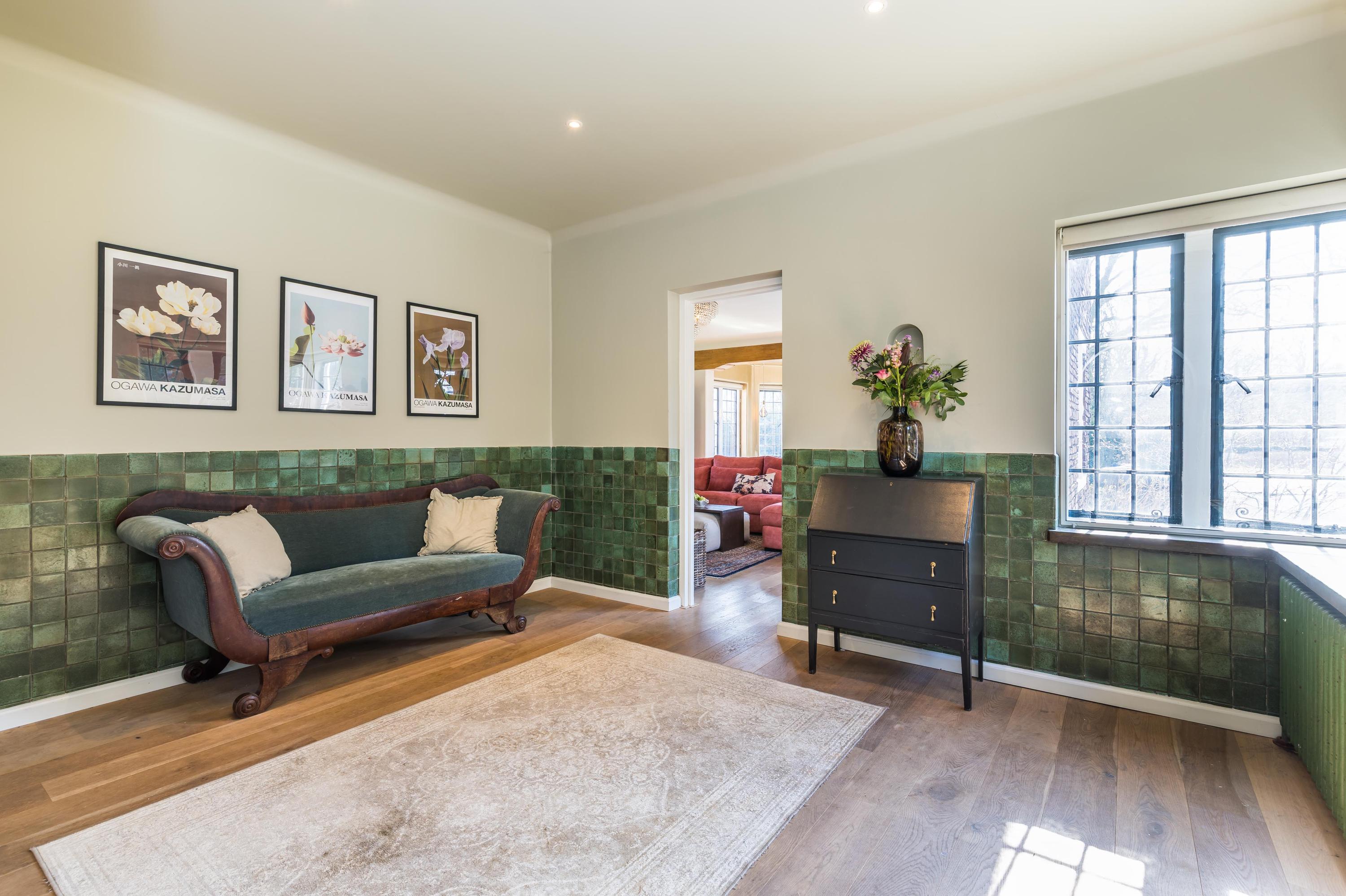 1st floor: beautiful and light landing with also original wall tiles. There are no fewer than 4 bedrooms on this floor, as well as a laundry room, a separate toilet and a surprisingly spacious and very tastefully decorated bathroom with a bath, walk-in shower and washbasin. The master bedroom is a dream, you feel like a king in terms of space, but also because of the charming balcony that can be reached through French doors. You imagine yourself in the annual royal balcony scene while you contemplate the sublime view over the Julianapark.