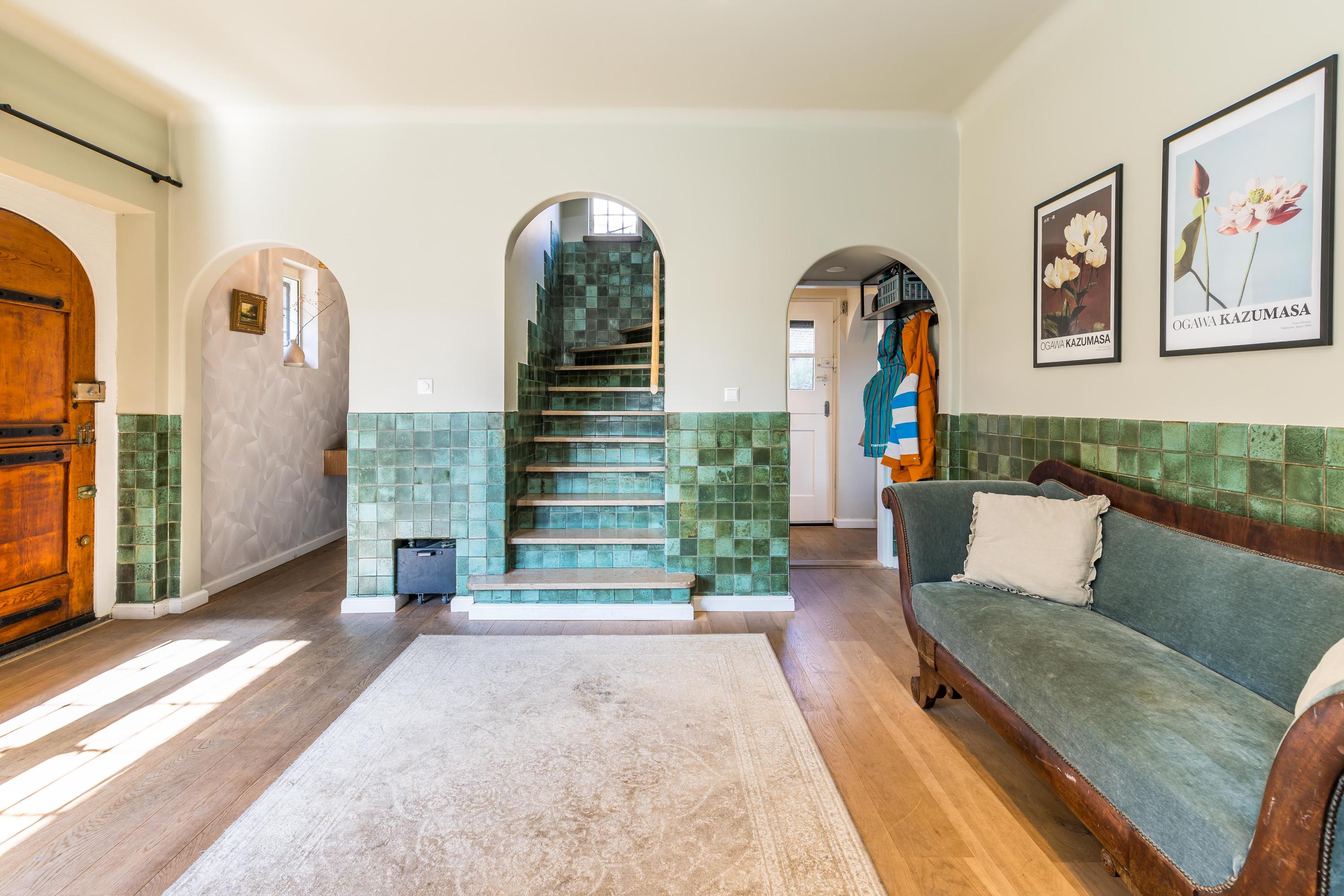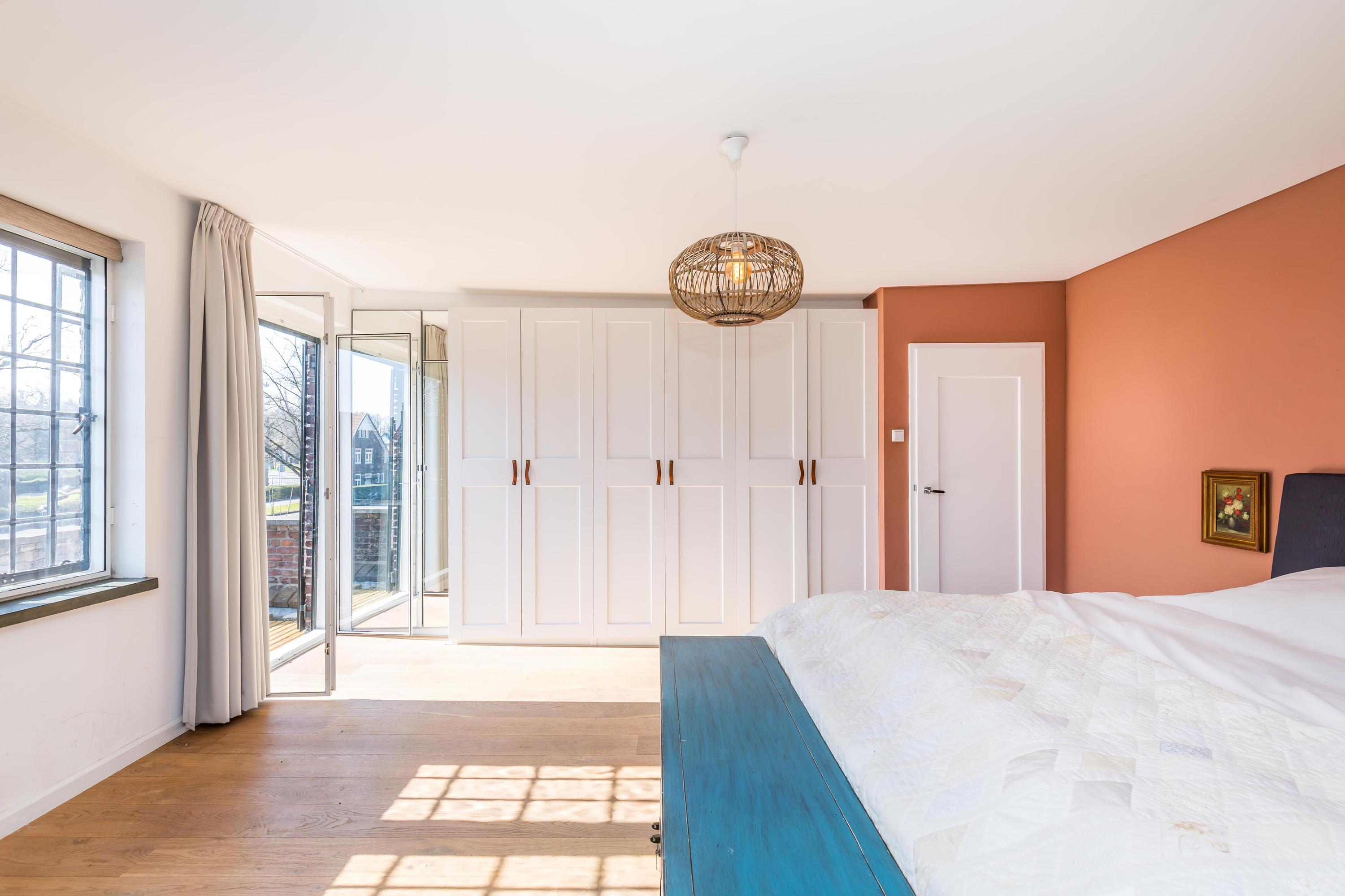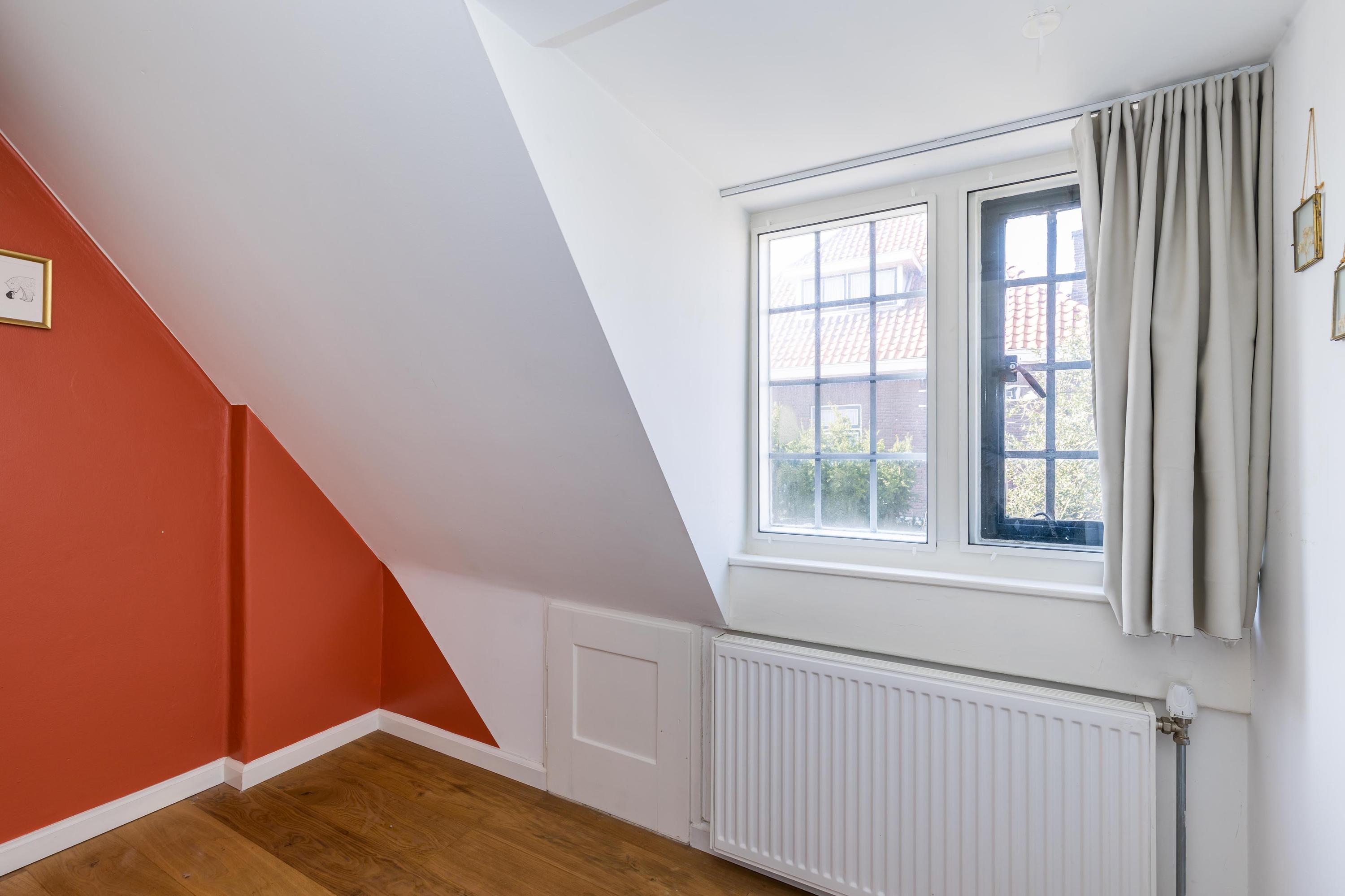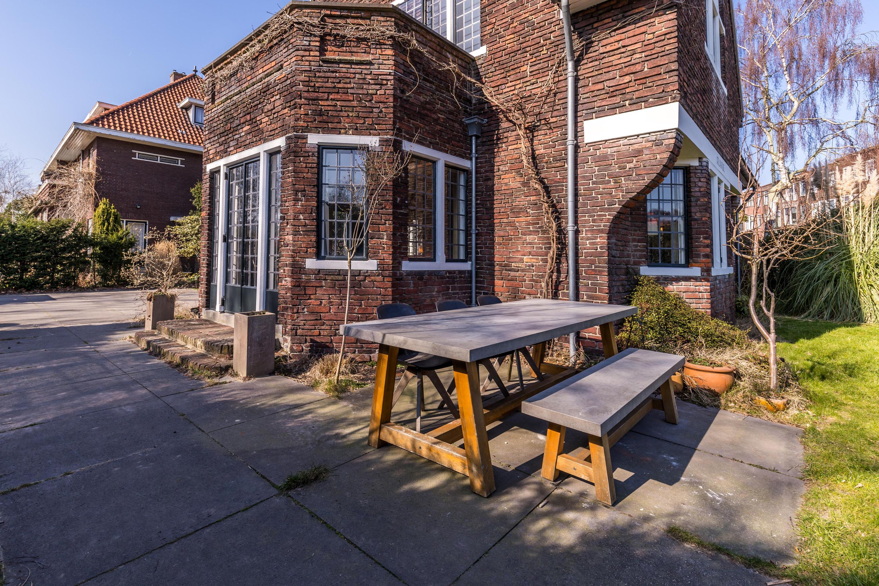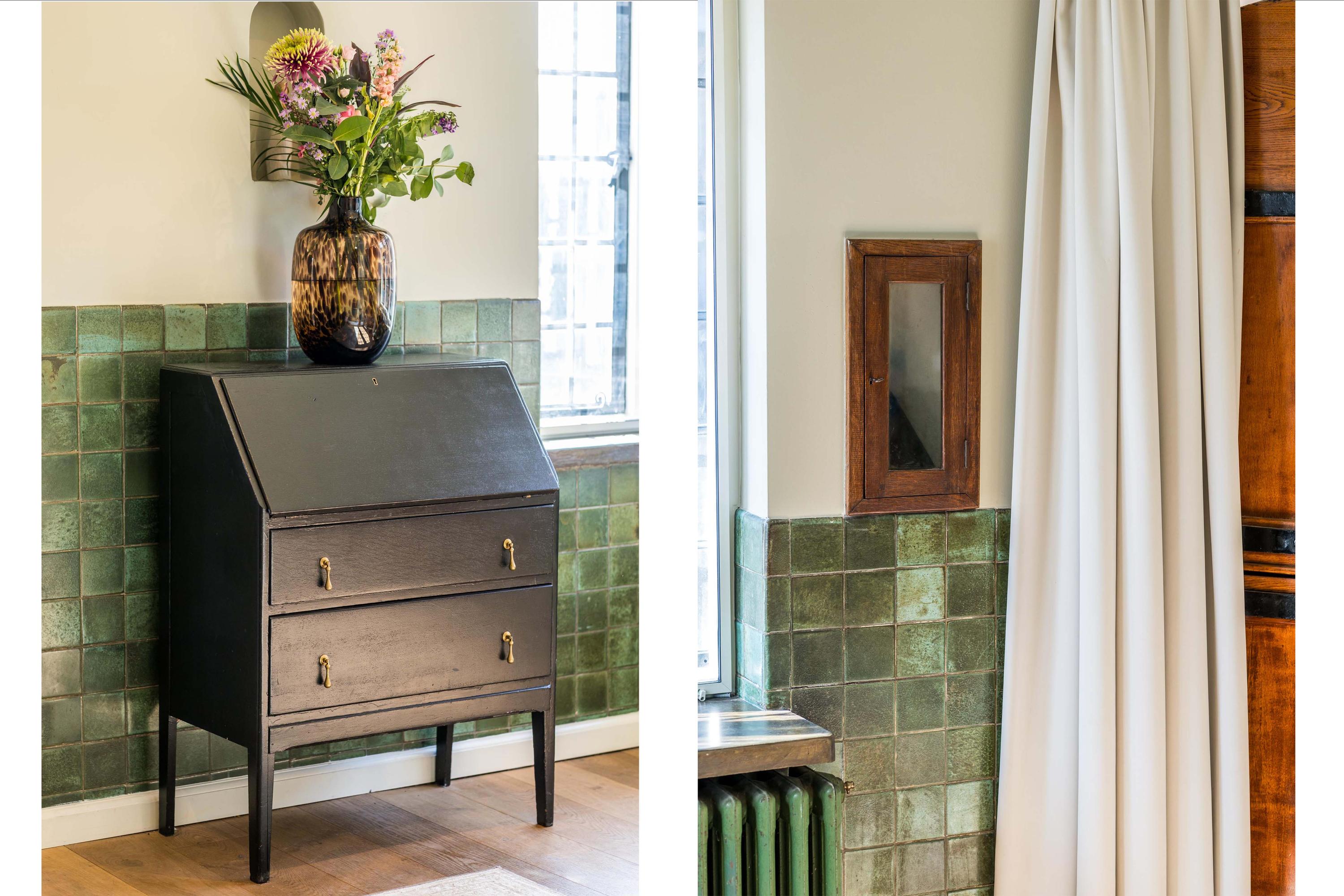 1st floor: beautiful and light landing with also original wall tiles. There are no fewer than 4 bedrooms on this floor, as well as a laundry room, a separate toilet and a surprisingly spacious and very tastefully decorated bathroom with a bath, walk-in shower and washbasin. The master bedroom is a dream, you feel like a king in terms of space, but also because of the charming balcony that can be reached through French doors. You imagine yourself in the annual royal balcony scene while you contemplate the sublime view over the Julianapark.