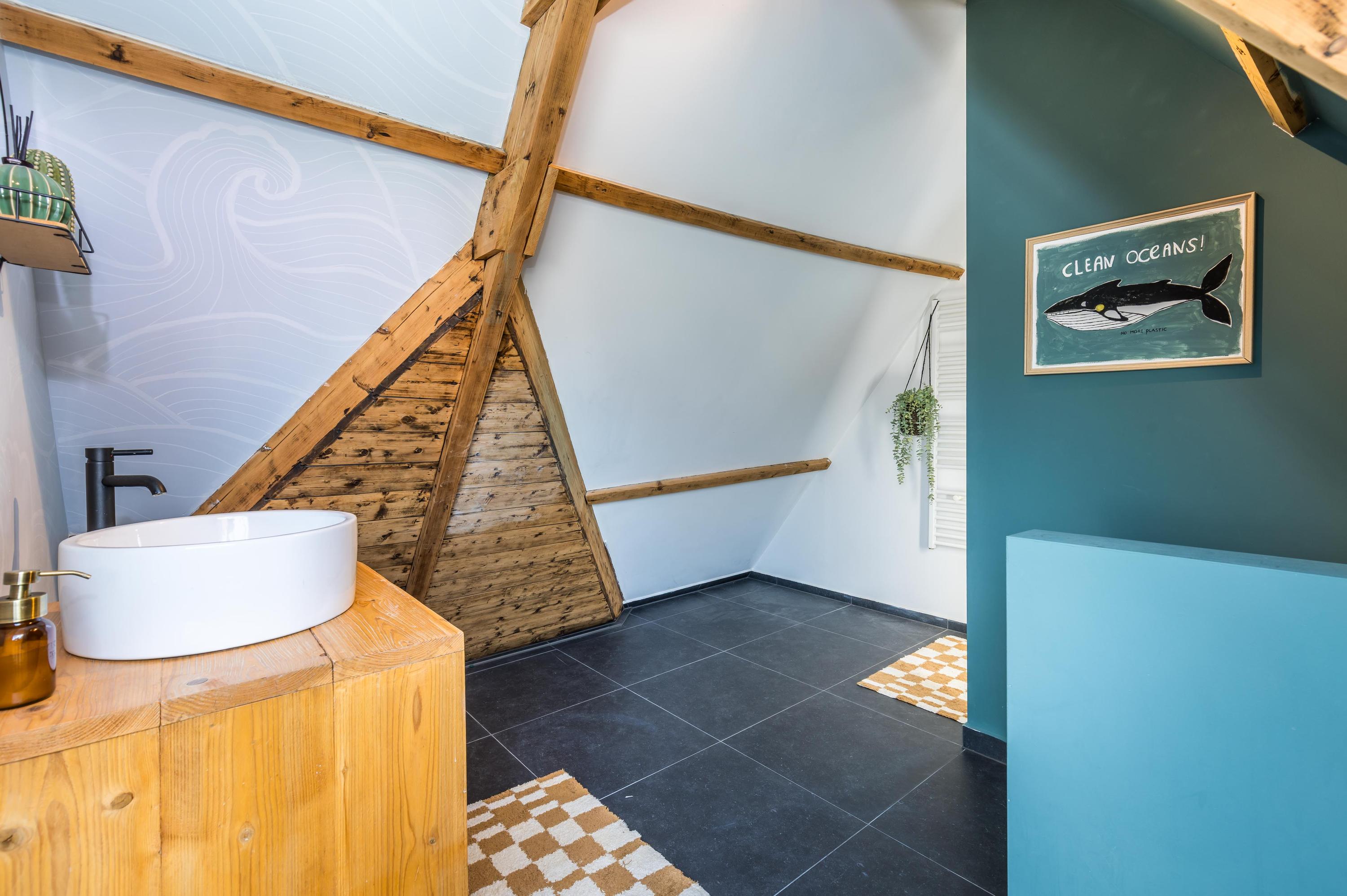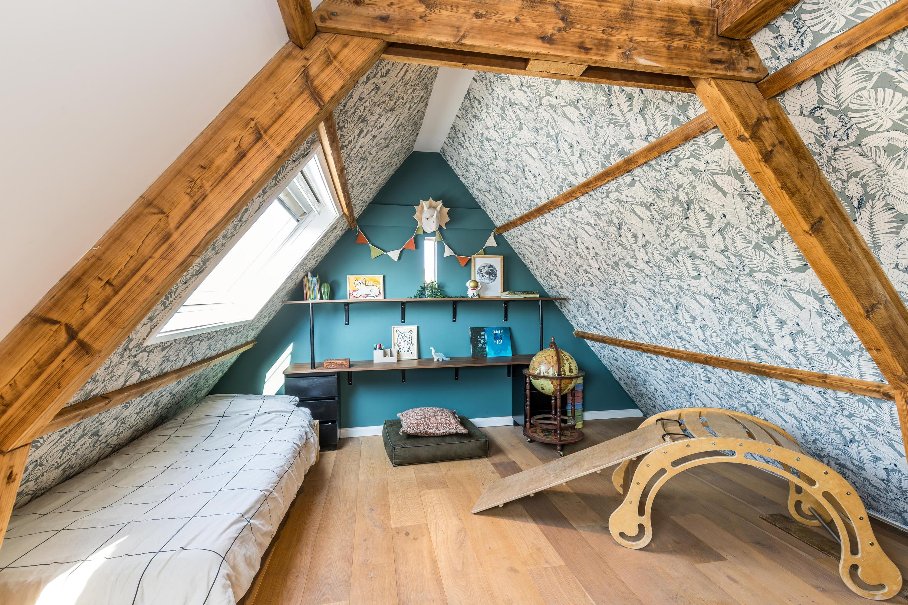 2nd floor: this floor is also very surprisingly and playfully laid out. With perhaps one of the nicest children's rooms you can think of, roof trusses in sight, nice hiding places and enough space to play. In reality, this floor is larger than the floor plan suggests. The surface is 'punished' on paper by the sloping roof surfaces, while there is a lot of usable space. There is also a bathroom with toilet, shower and washbasin.