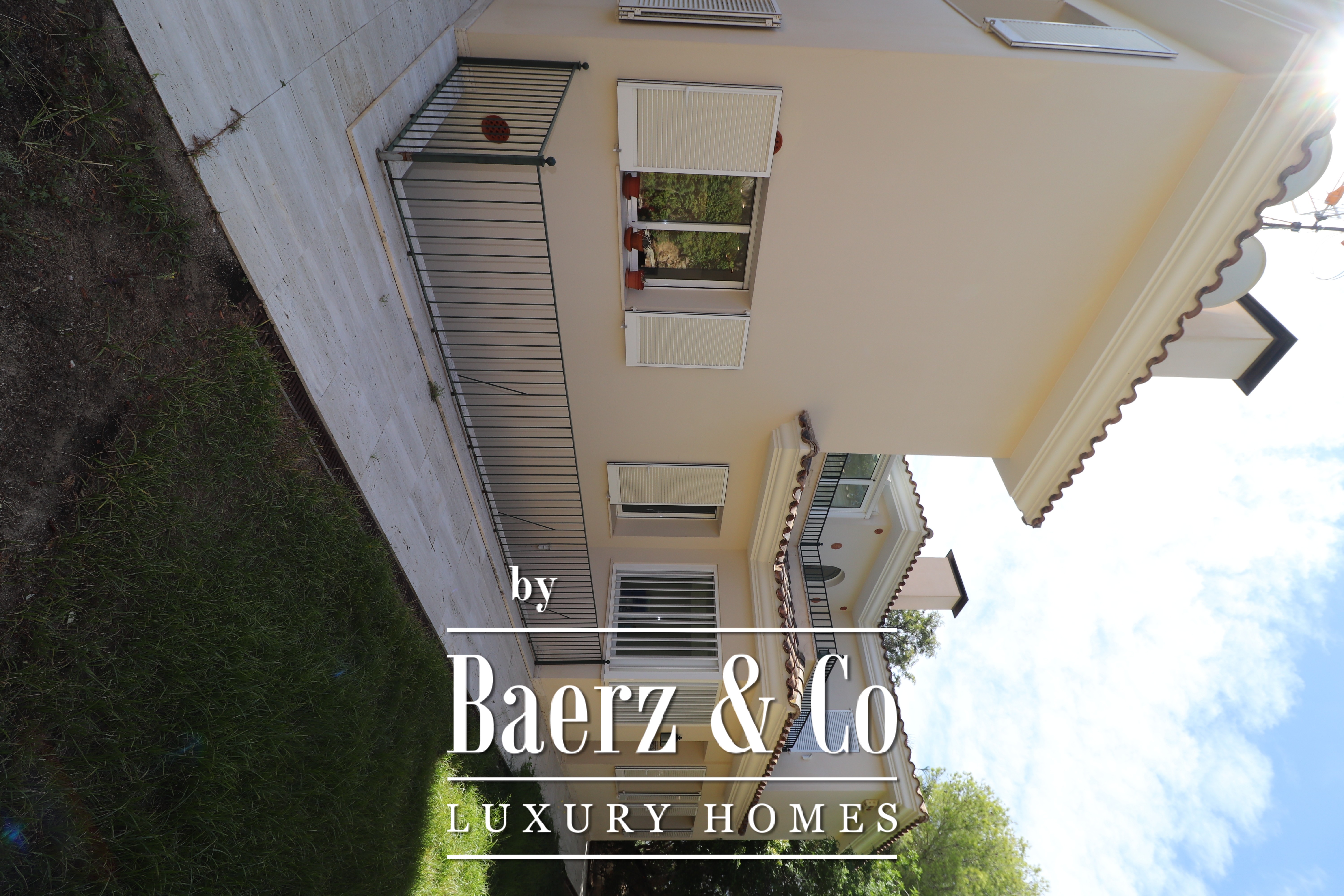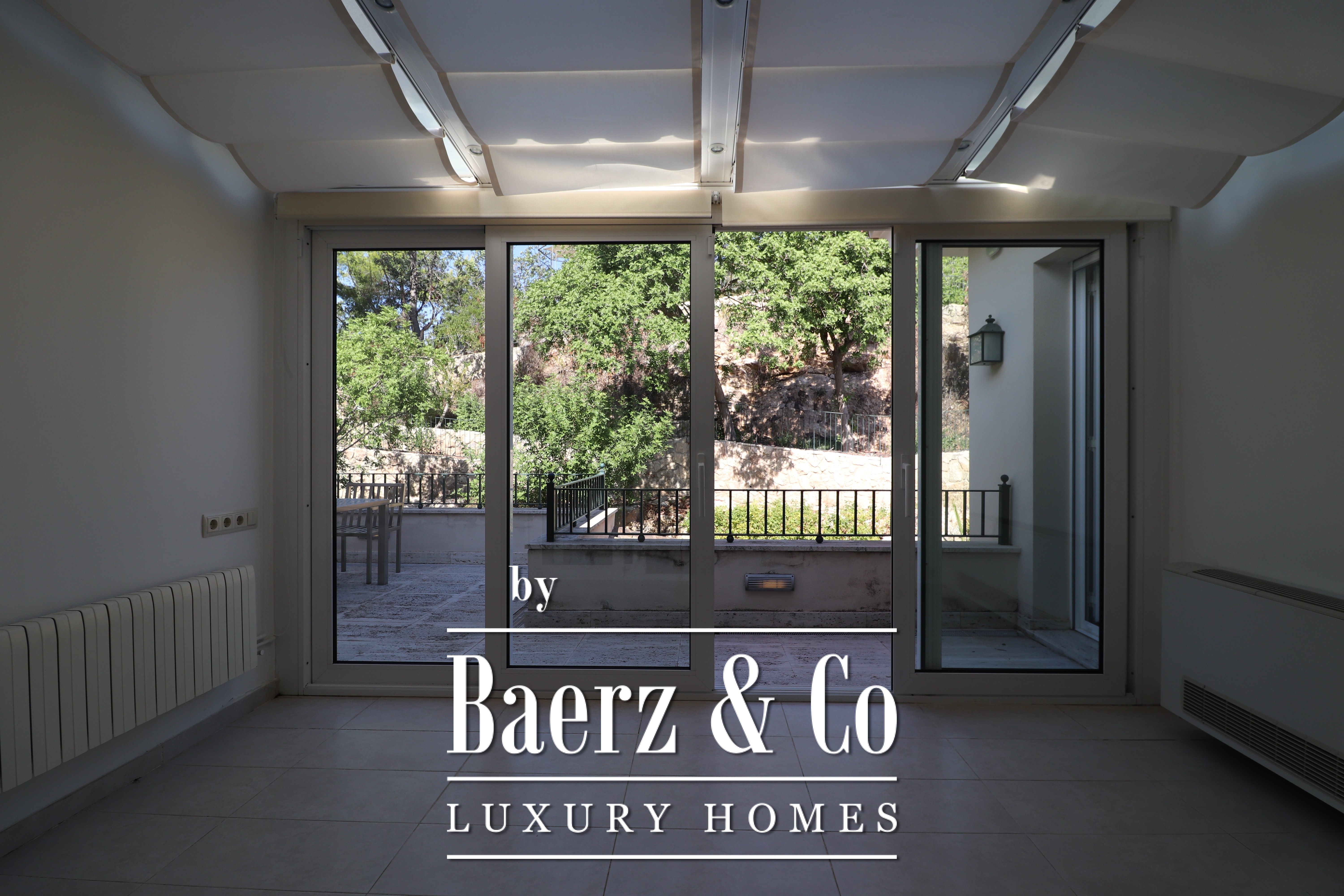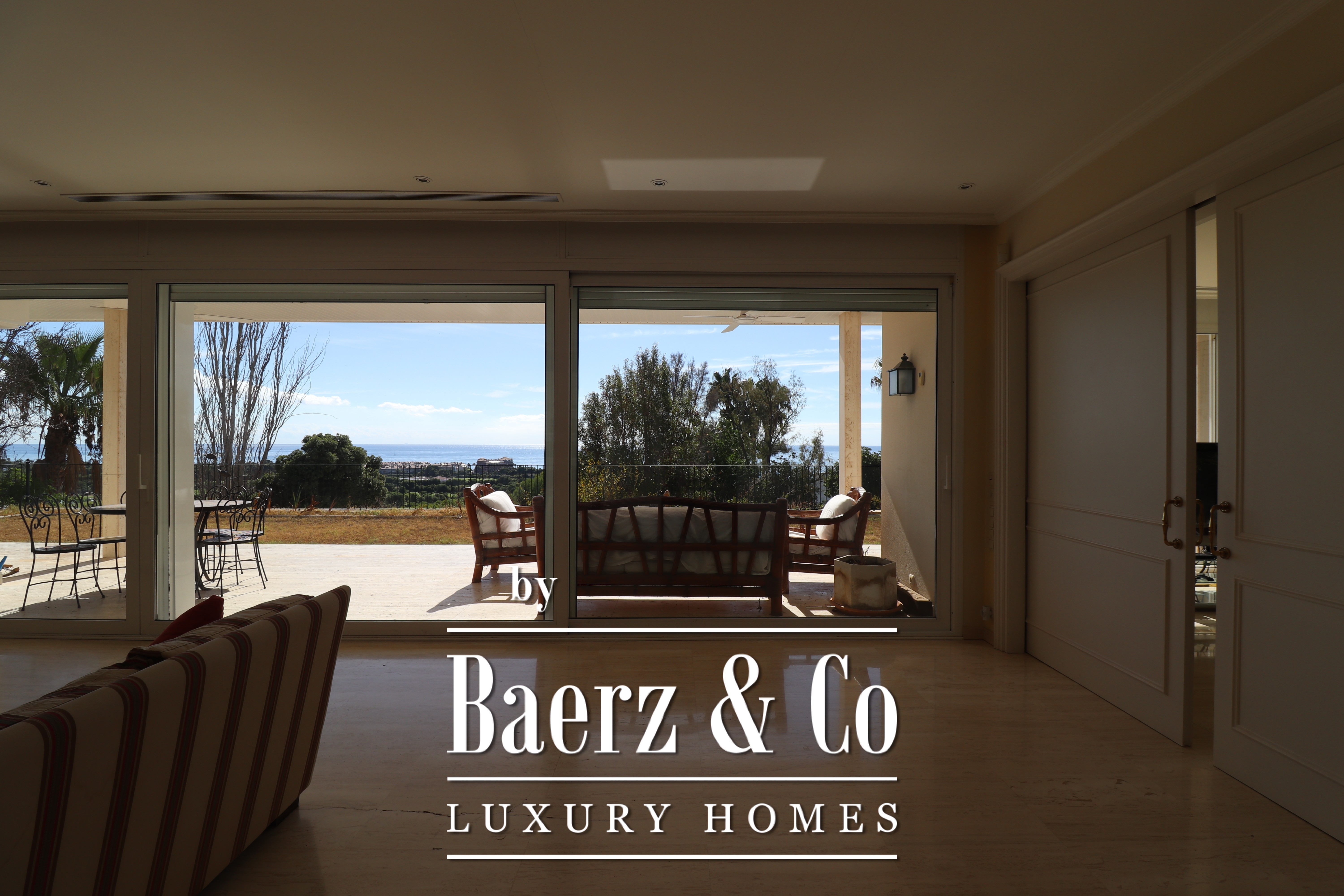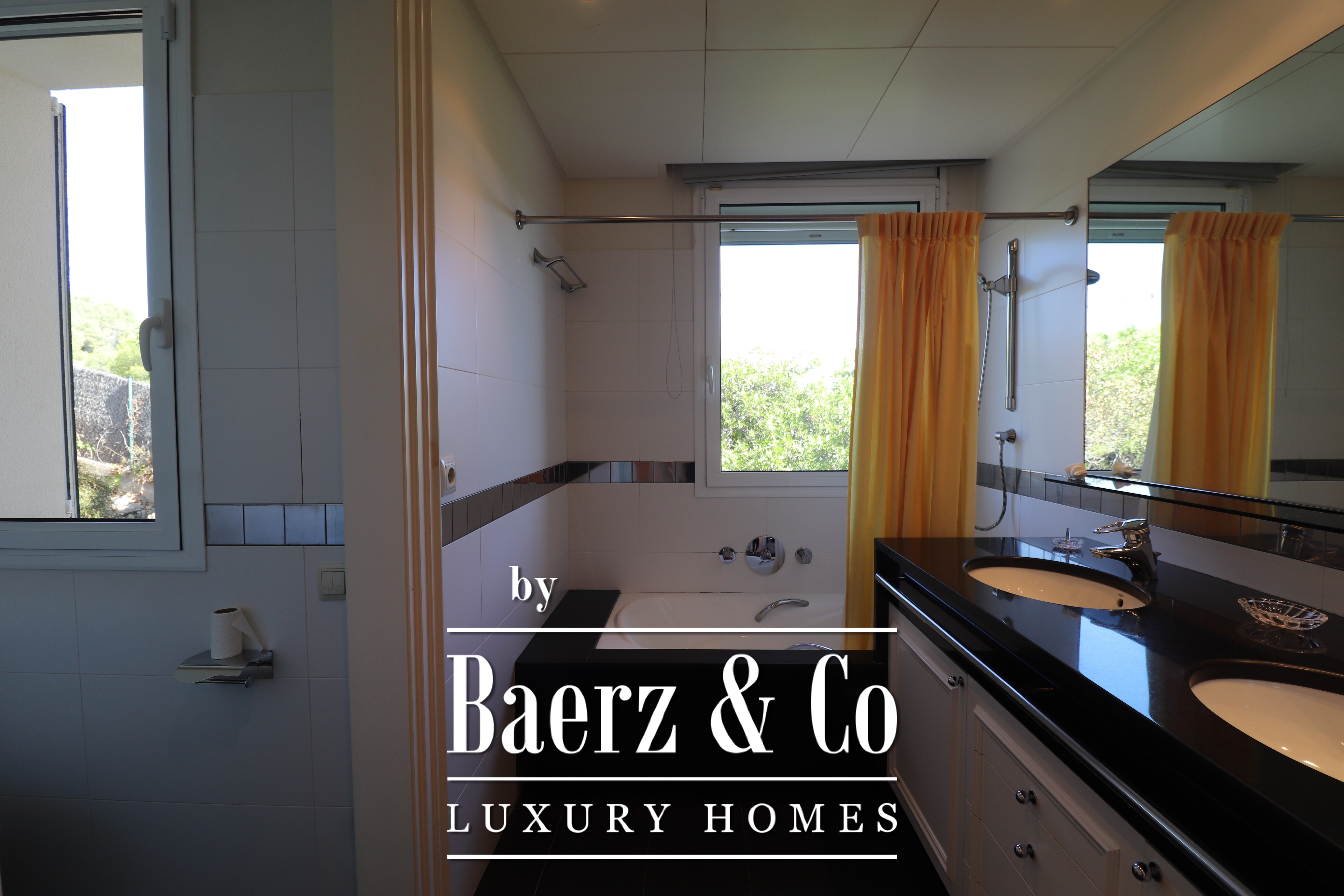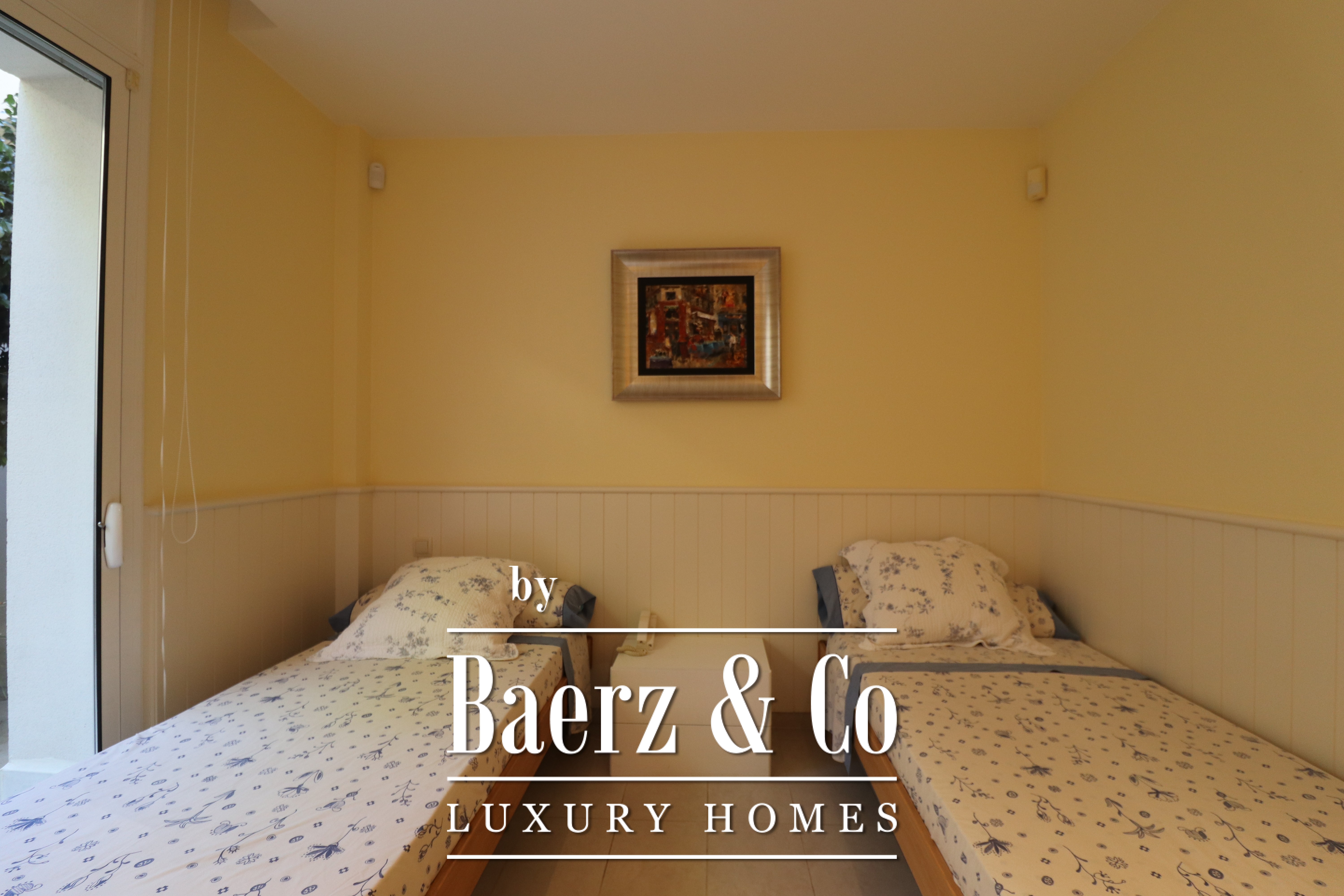 Designed for discretion and comfort, the villa unfolds across three levels, connected by a private lift. The main level opens with a refined entrance hall leading to a fluid living space, including living and dining rooms, a media zone, and a fully equipped kitchen with an adjoining service area and dedicated office. Five bedrooms and eight bathrooms allow for both family intimacy and entertaining on a generous scale.