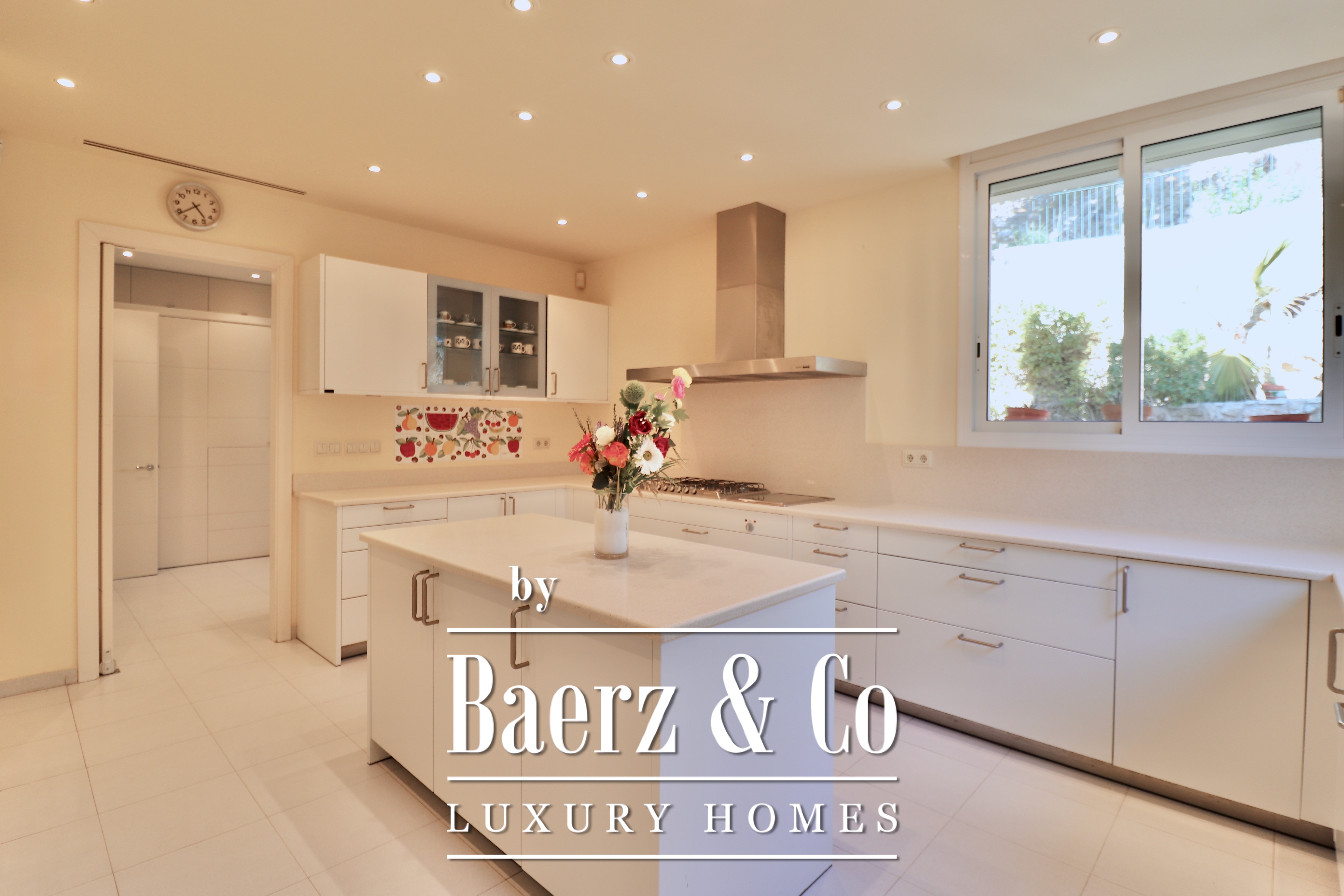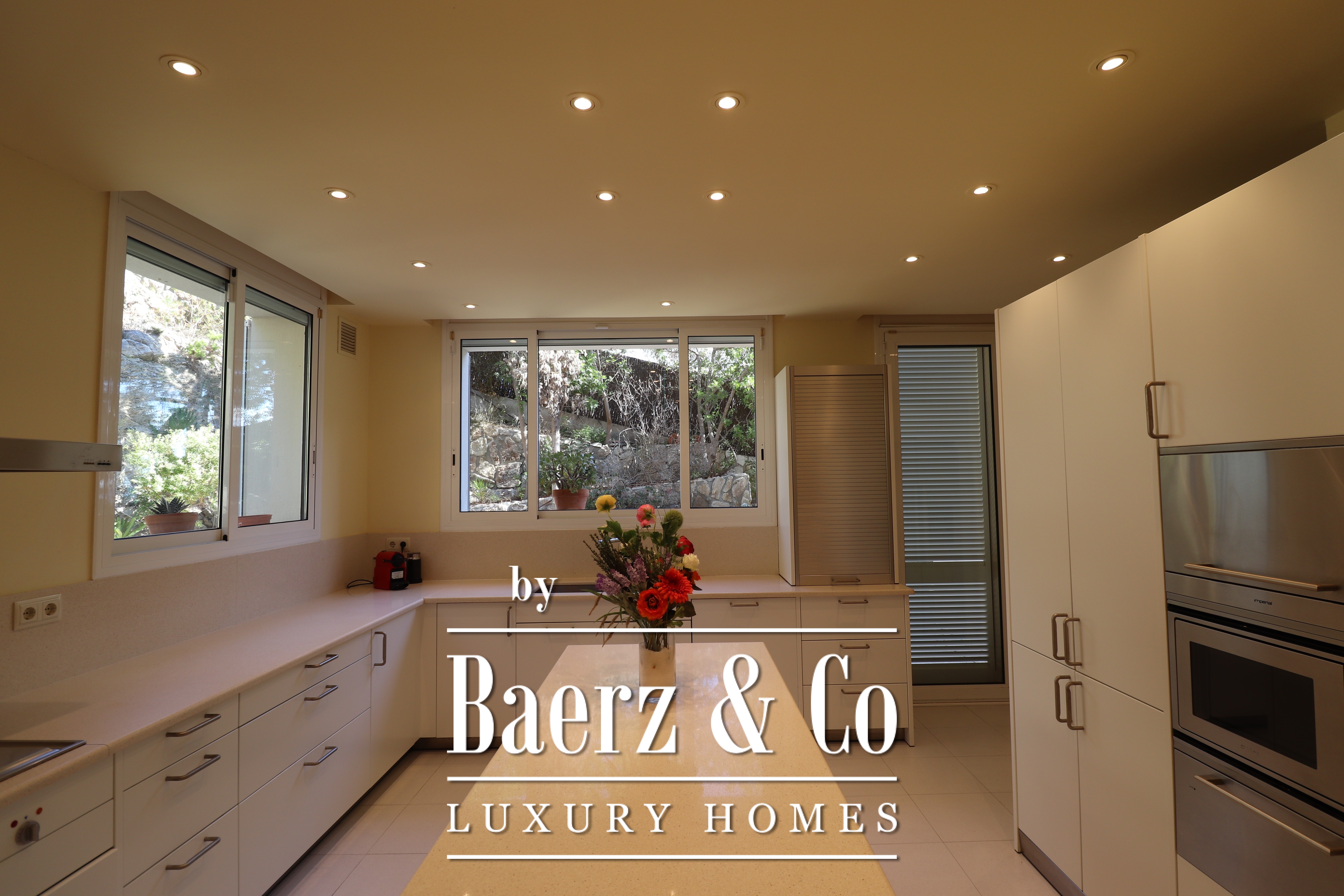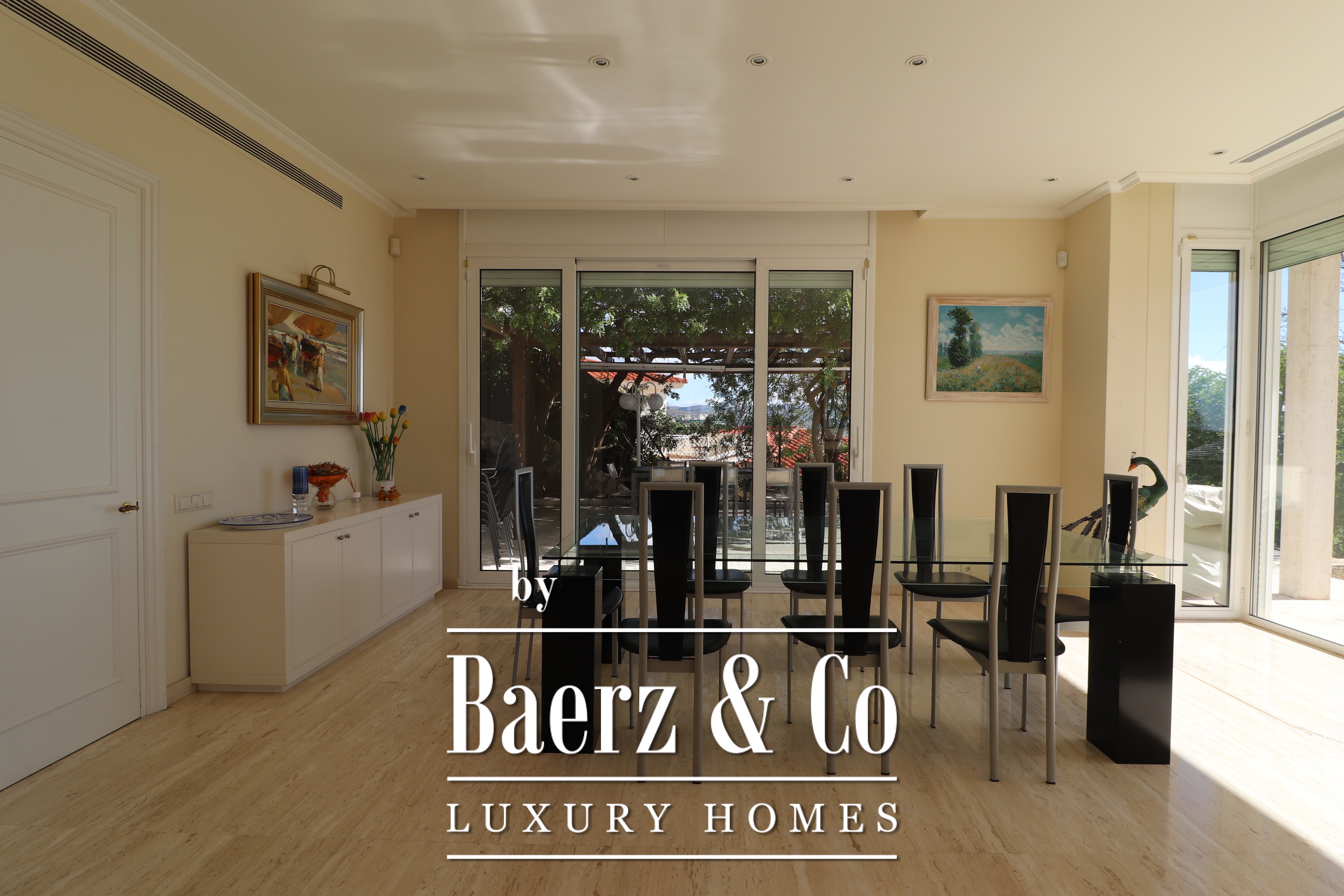 The upper floor is dedicated to rest, offering four suites, each with dressing rooms and private terraces against a backdrop of the Mediterranean. The lower level enhances daily ritual with a gym, sauna, wine cellar with dining zone, an additional bedroom, laundry, and a garage with capacity for eight vehicles. Fine materials, marble floors, high-end carpentry, and seamless home automation define every surface. Minutes from the centre of Sitges and the sea, this luxury villa for sale in Sitges offers a life of ease, privacy, and enduring style.