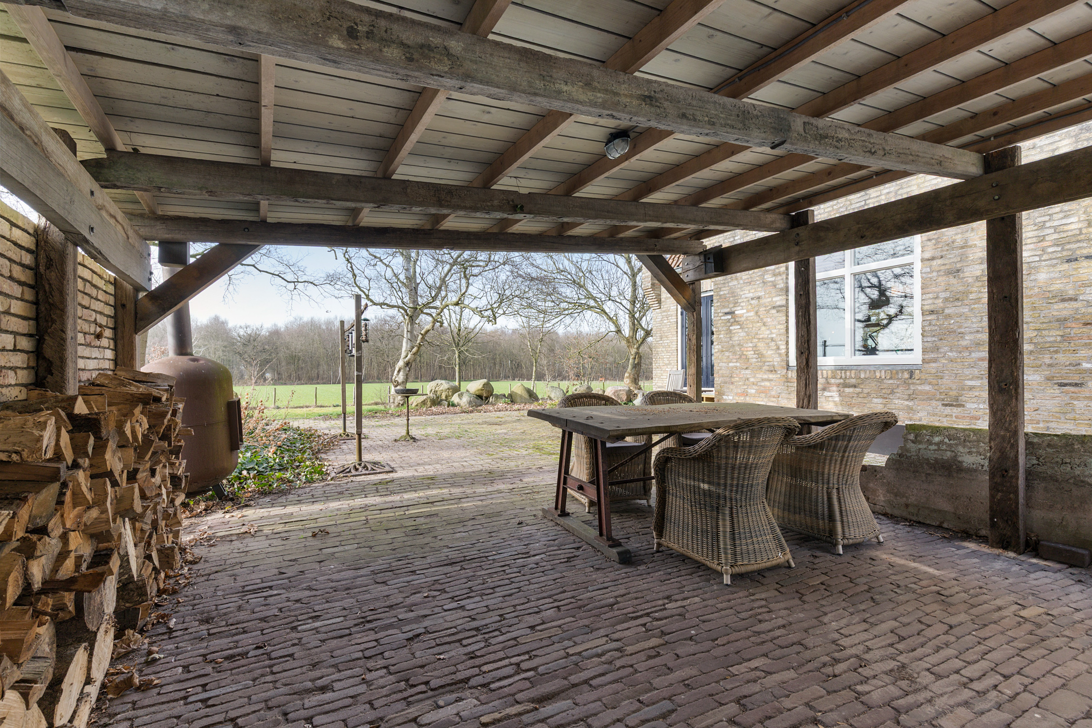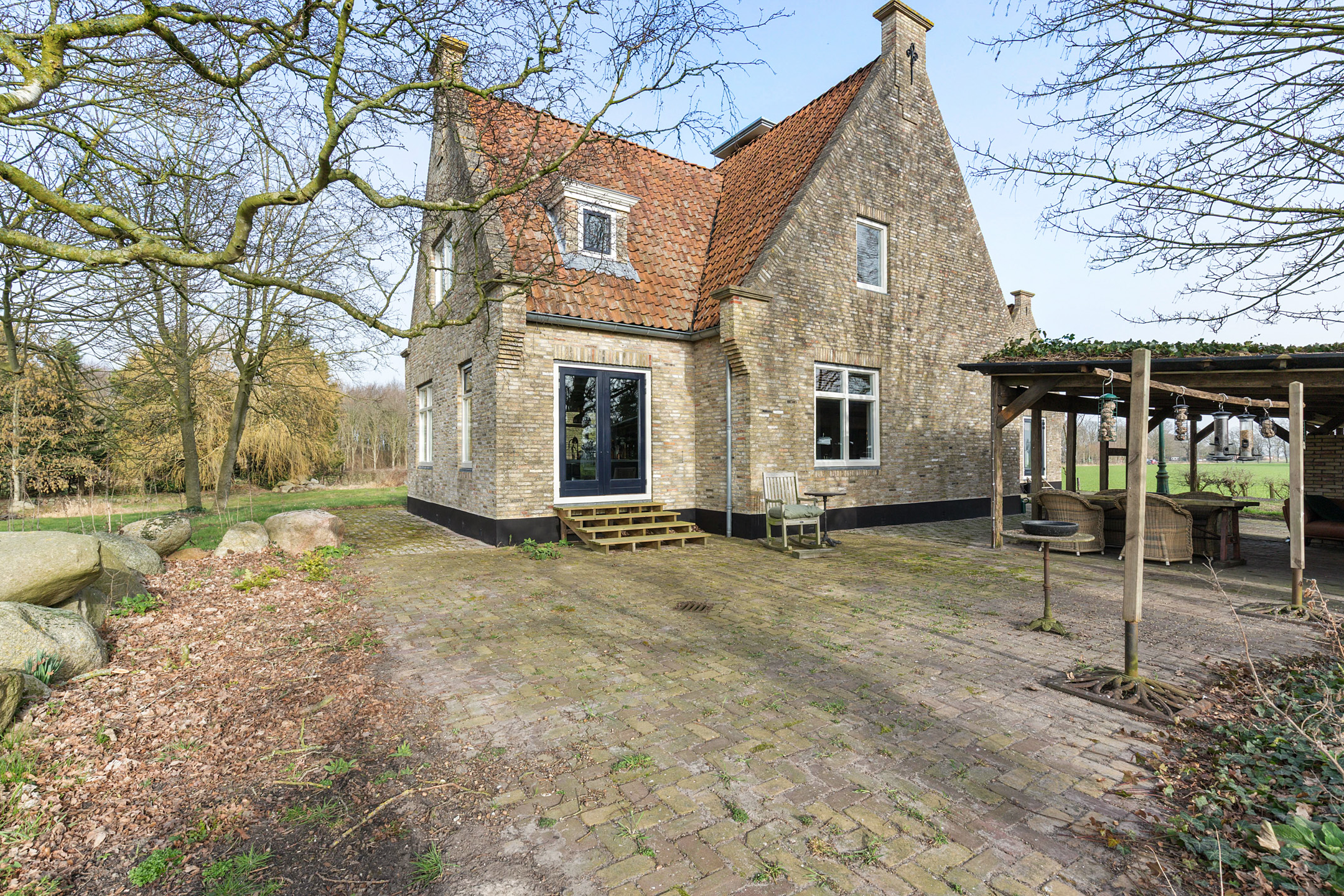 Double French doors open from the kitchen onto the southwest-facing terrace, offering panoramic views across the surrounding meadows and forests. From early morning until late evening this is a wonderful place to enjoy the rich Frisian flora and fauna.