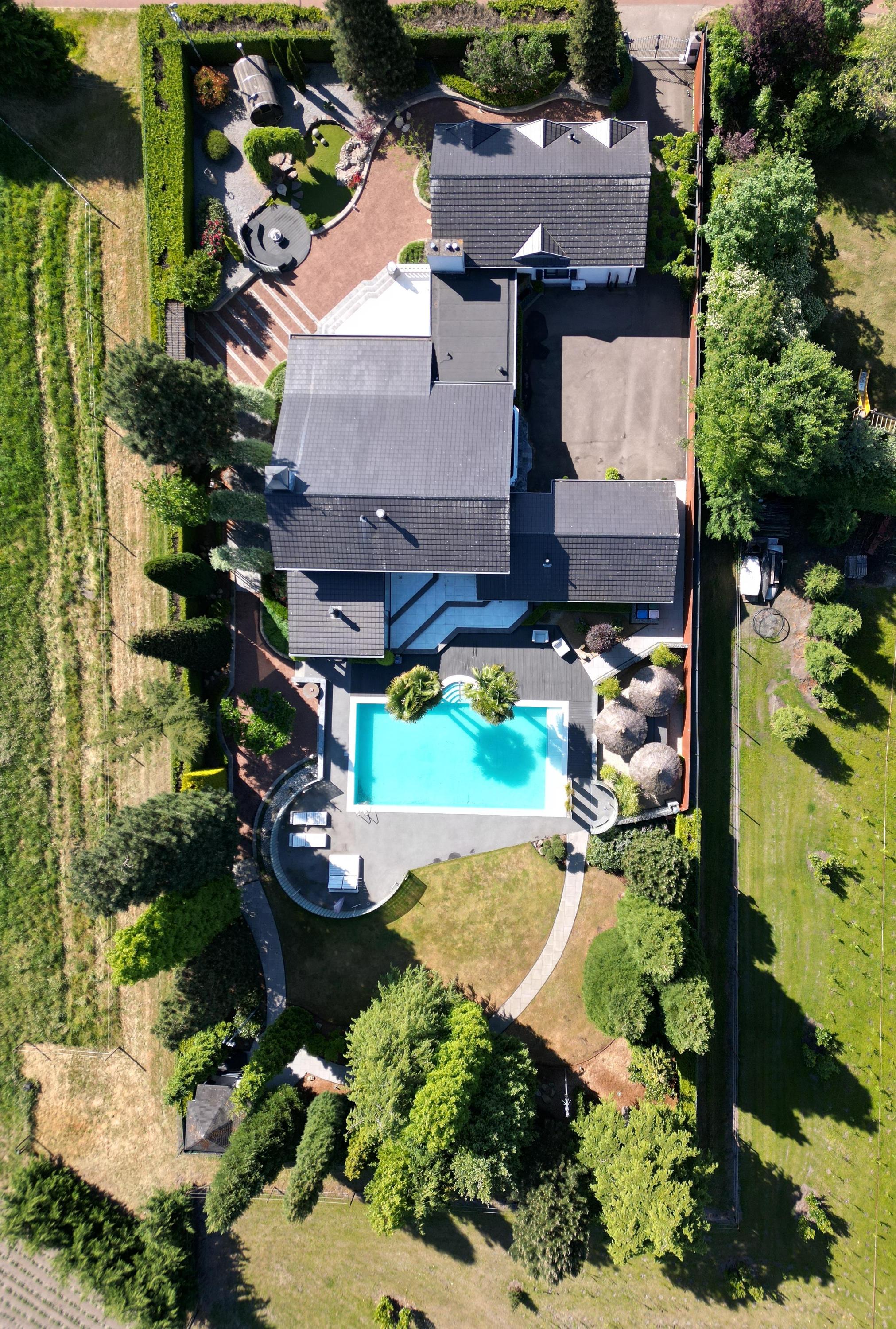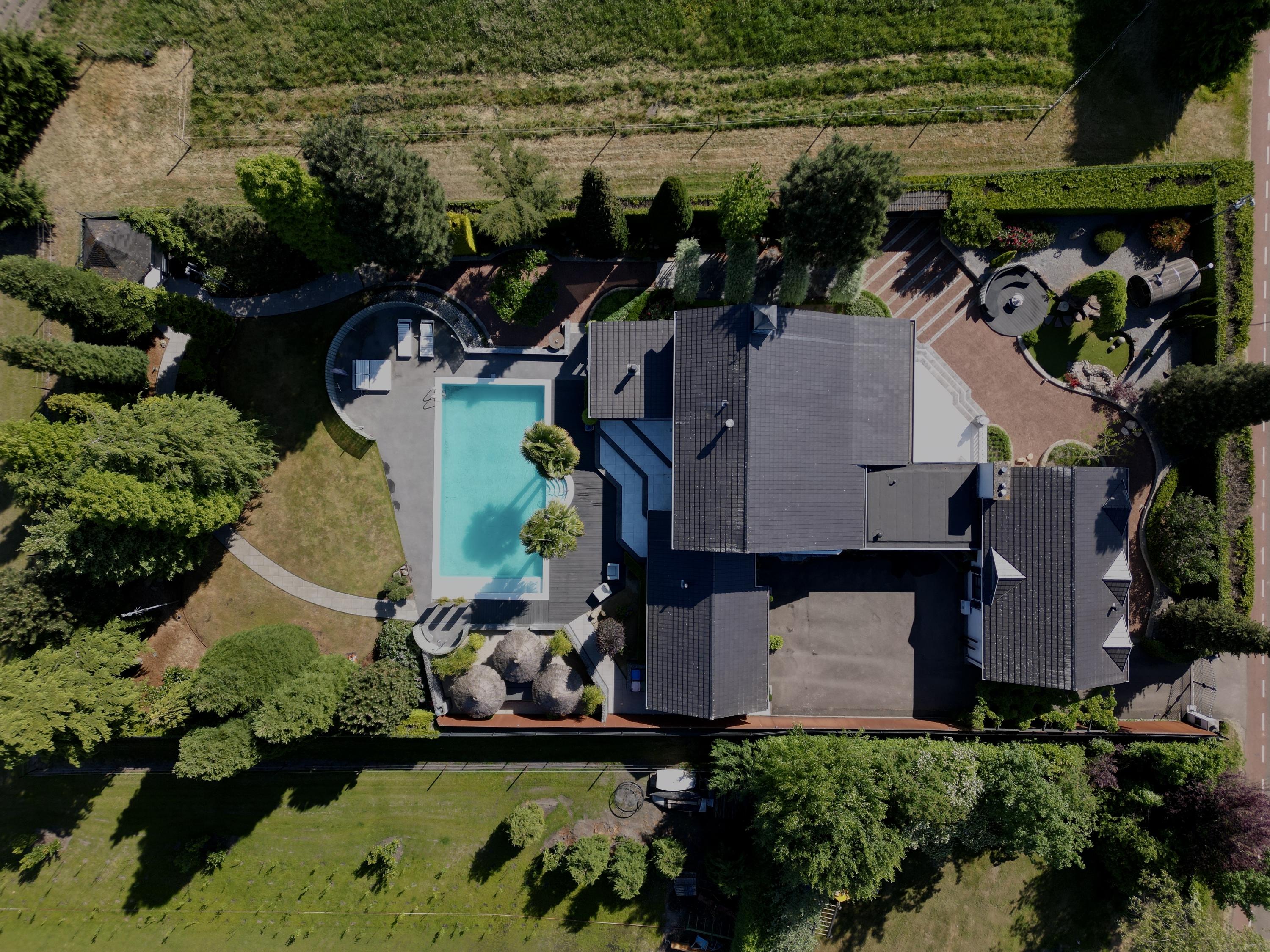 Ook buitenshuis is aan werkelijk ieder detail aandacht besteed en zijn vele luxes aanwezig. Denk hierbij aan het verwarmd zwembad, een jacuzzihoek met buitendouche en buitenhaard, de sfeervolle veranda aan de achterzijde met gastafelhaard, een 2e veranda aan de zonzijde met buitenkeuken, hoogwaardig groen rondom, grondpomp met beregeningsinstallatie (roestvrij water), keramisch straatwerk, een hout gestookte sauna, smaakvolle tuinverlichting, etc.