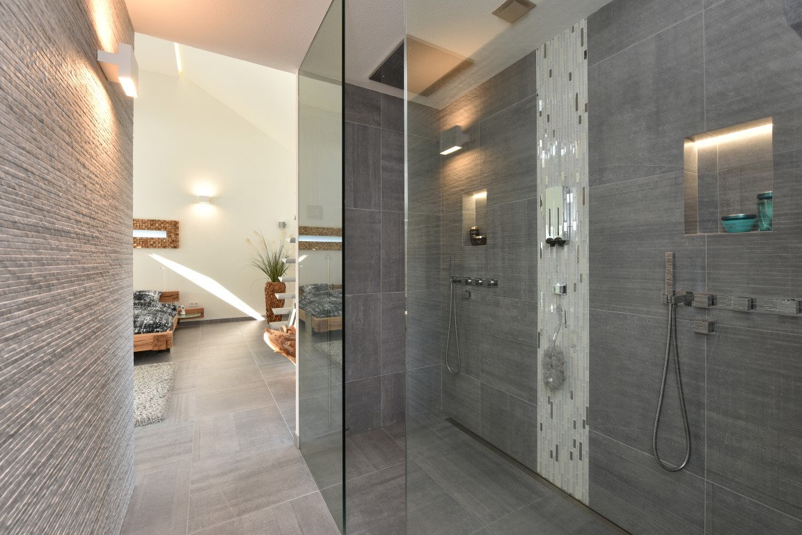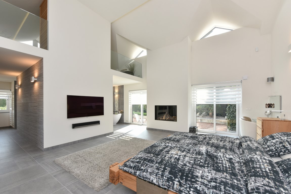De 2e en 3e slaapkamer bevinden zich aan de achterzijde, direct boven de living. De beide slaapkamers hebben een volwaardige indeling waarbij de grote kamer beschikt over een complete badkamer en-suite en beide slaapkamers toegang hebben tot het balkon met zicht over de tuin en het zwembad. Mocht u meer slaapkamers wensen dan is een andere indeling vrij eenvoudig te realiseren en blijven de afmetingen per kamer nog steeds volwaardig.