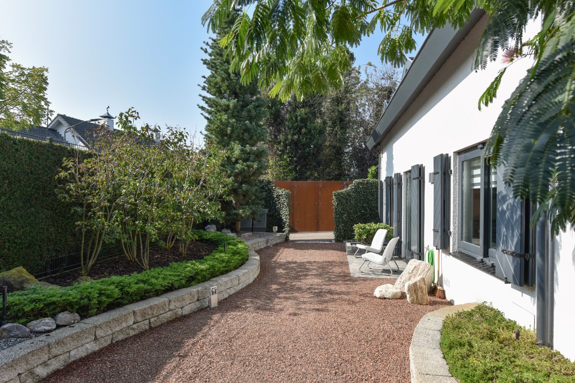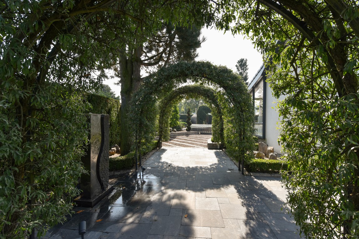 U betreed het perceel van 2.315 m² via een elektrisch bedienbare poort waarachter ruimte is voor diverse voertuigen. De omheining is groen en hoog van uitvoering waardoor de tuin, welke volledig rondom in gebruik is, beschikt over alle gewenste privacy.