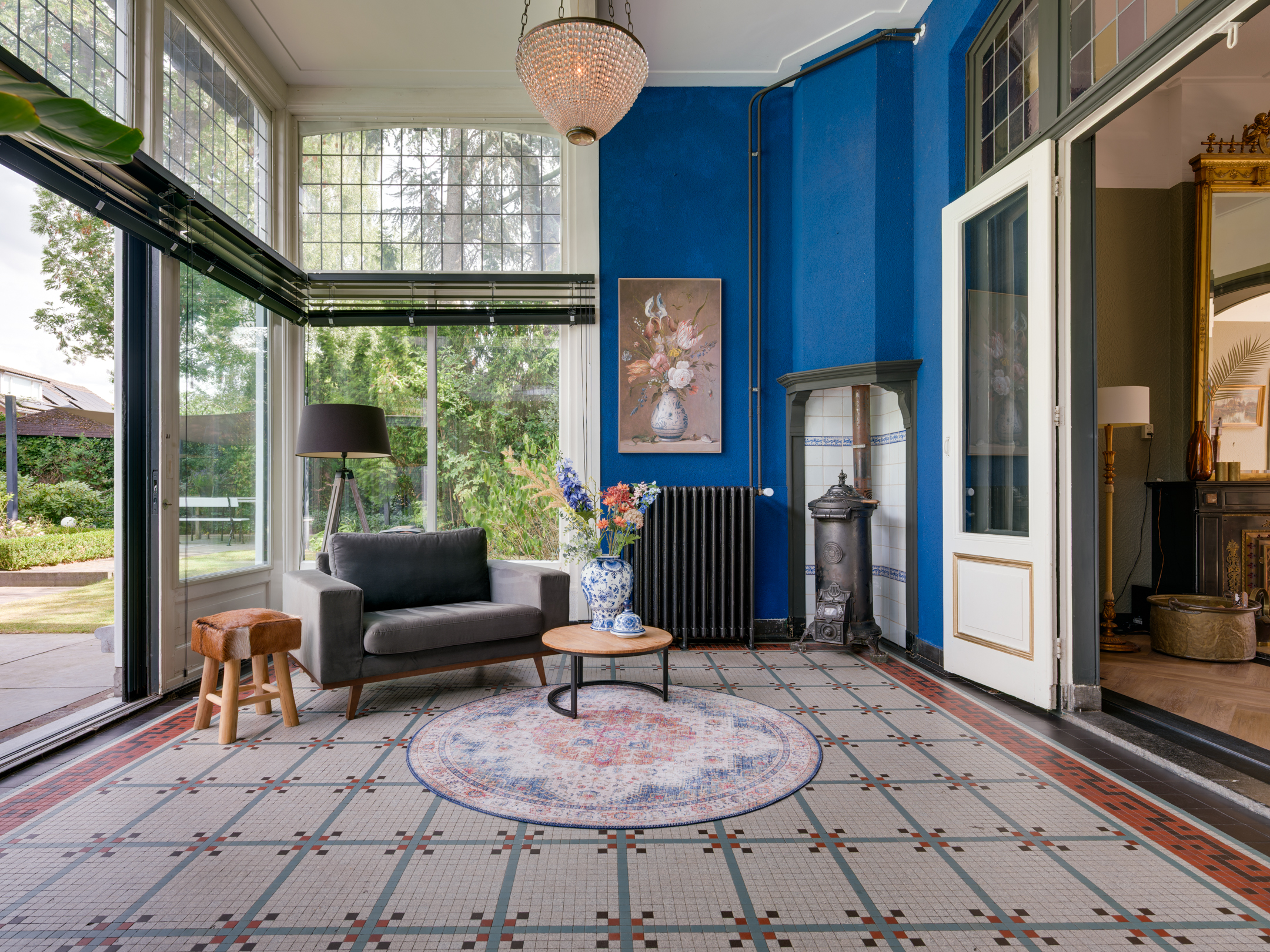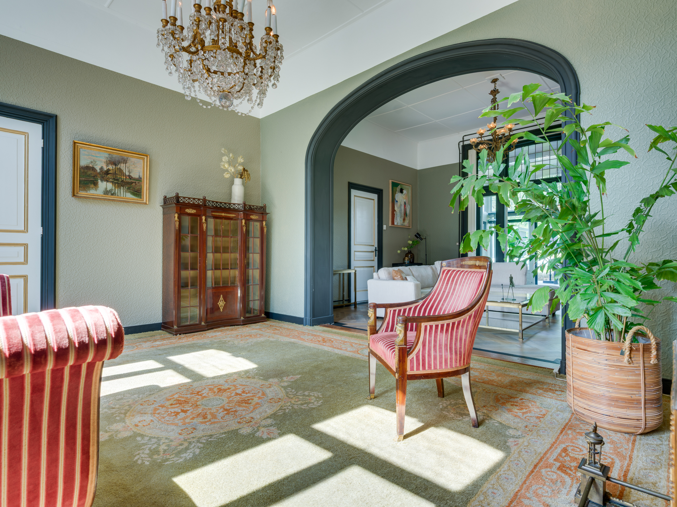 A grand living room with en suite salon, seamlessly connected to the garden room