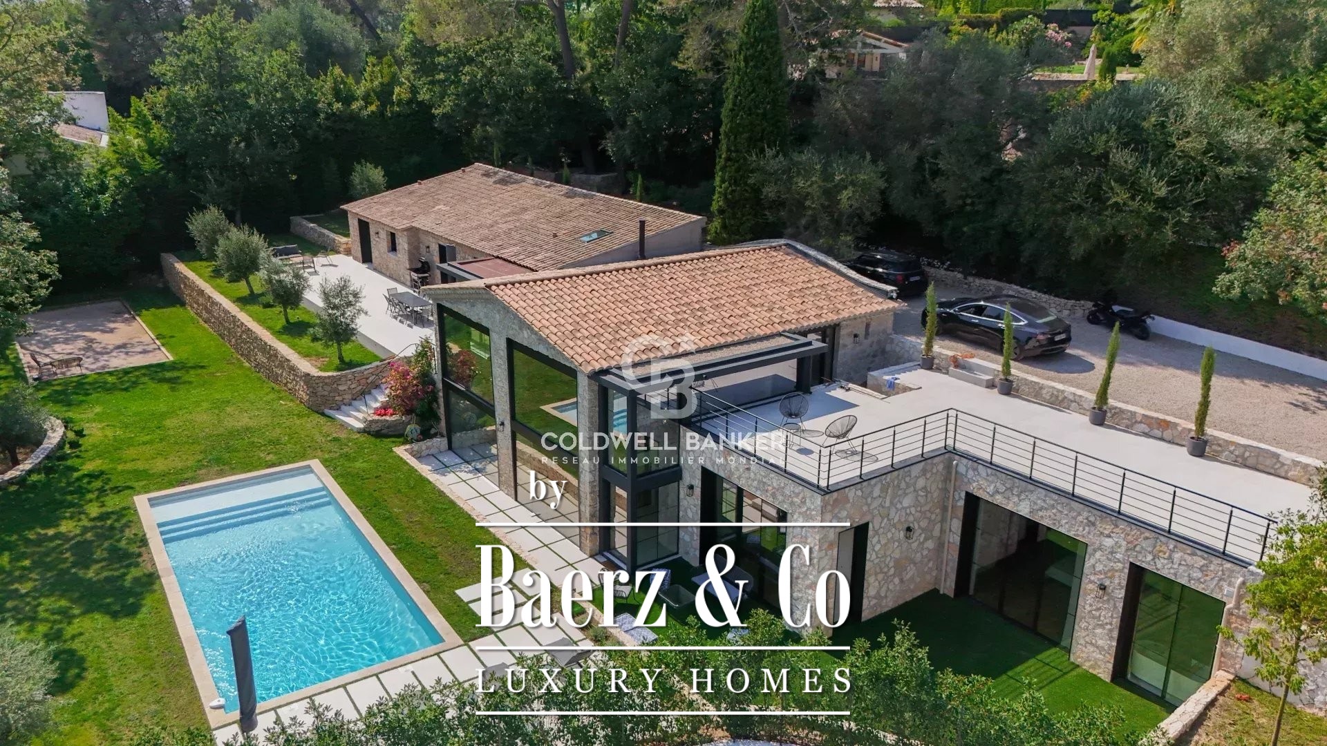 billiard room), a fifth suite, a sauna and a hammam. The property has many terraces to make the most of the outdoor spaces and panoramic views of the hills and the forest. Beautiful flat land of 2500 m2 with swimming pool and pétanque. Direct access to many walks. Several parking spaces. Very quiet.