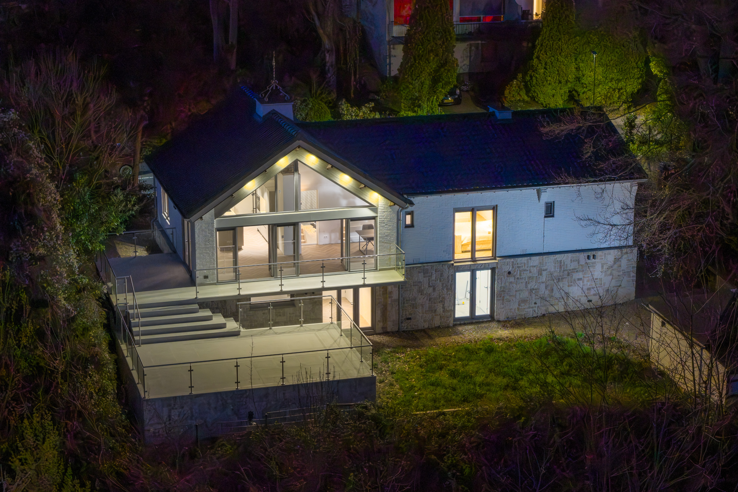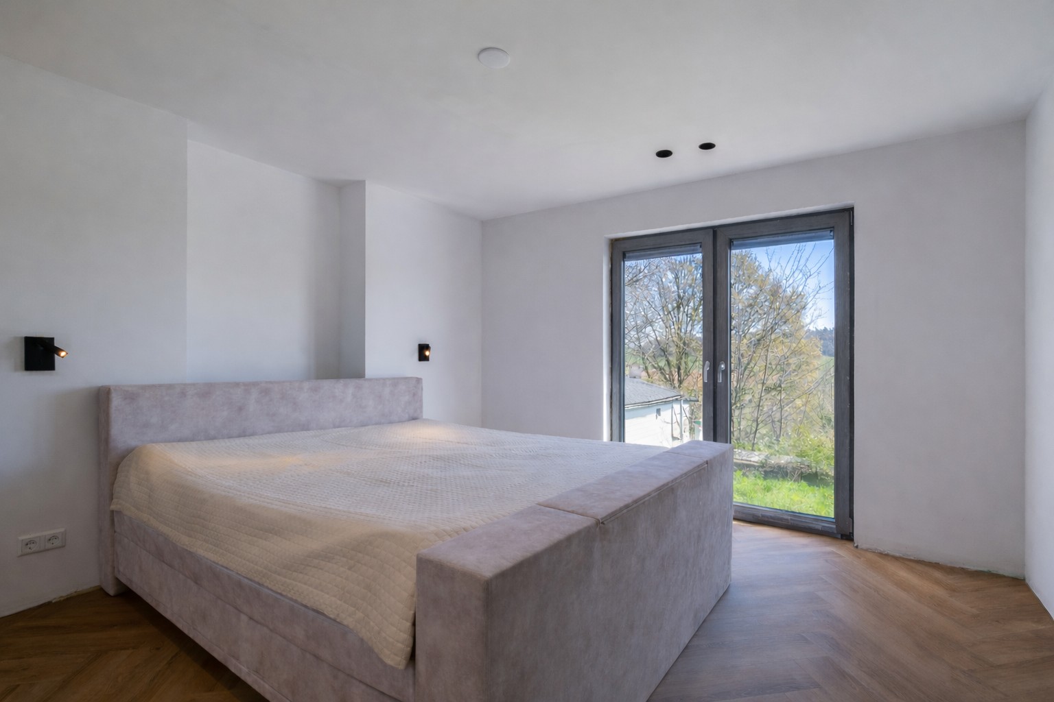 The living area is located at the rear and is fully oriented toward the panoramic view. Thanks to the large windows, natural light floods in, and the indoor and outdoor spaces blend seamlessly. With an XL garage, a practical layout, and all essential living amenities on the ground floor, this home combines luxury with lifetime-ready living. The home features a spacious, multifunctional basement and a practical attic.