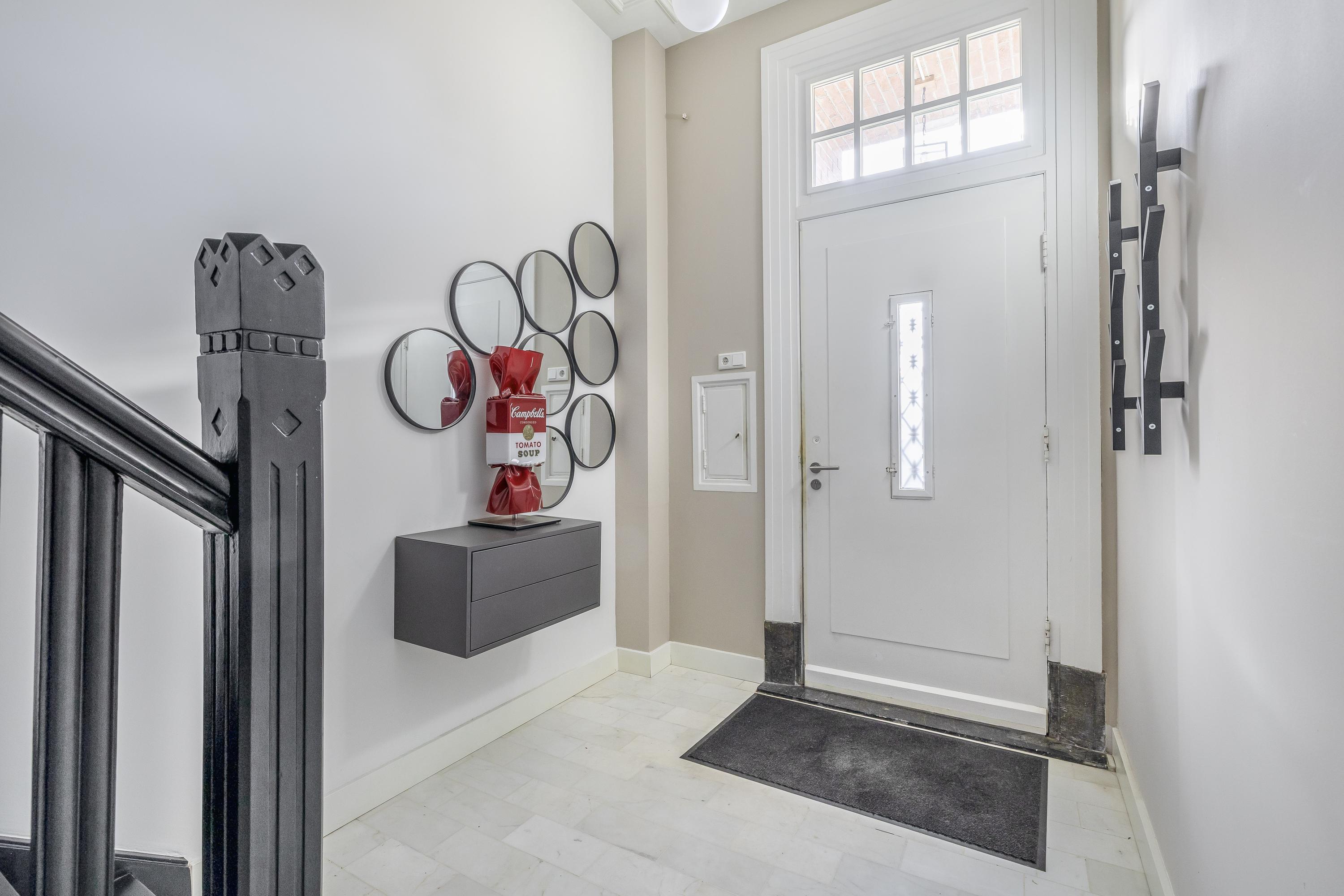 De brede entree hal is voorzien van een marmeren Bianco Carrara tegelvloer. Vanuit hier is er toegang tot het souterrain, het toilet met fonteintje en een bergkast met de warmtepomp en cv-ketel.