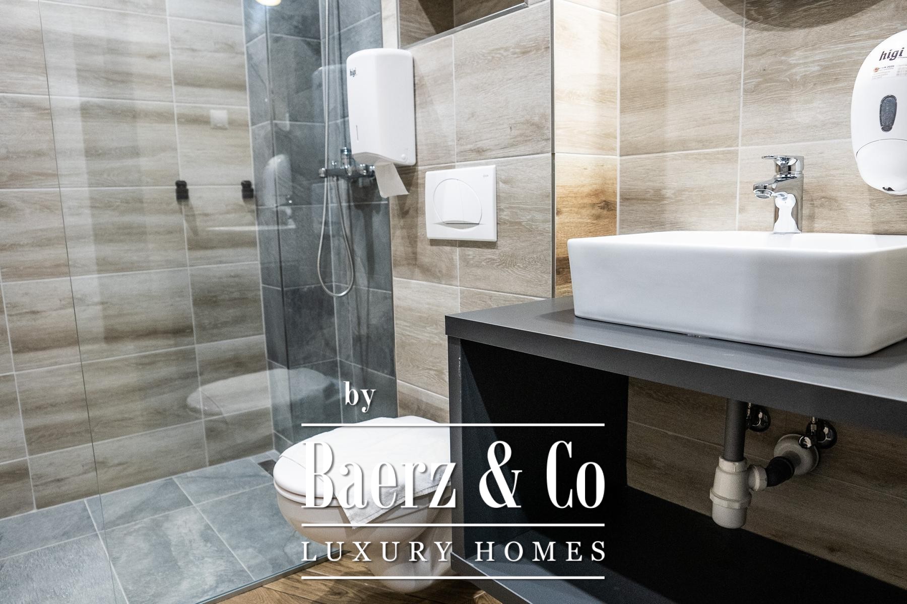 The outlook across the Danube sets a serene tone through expanses of glazing, while PVC joinery and gas heating provide modern comfort. The property comes with four garage spaces and 20 exterior parking places, supporting both family and guest needs. An occupancy permit is in place, offering clarity for immediate use or investment.