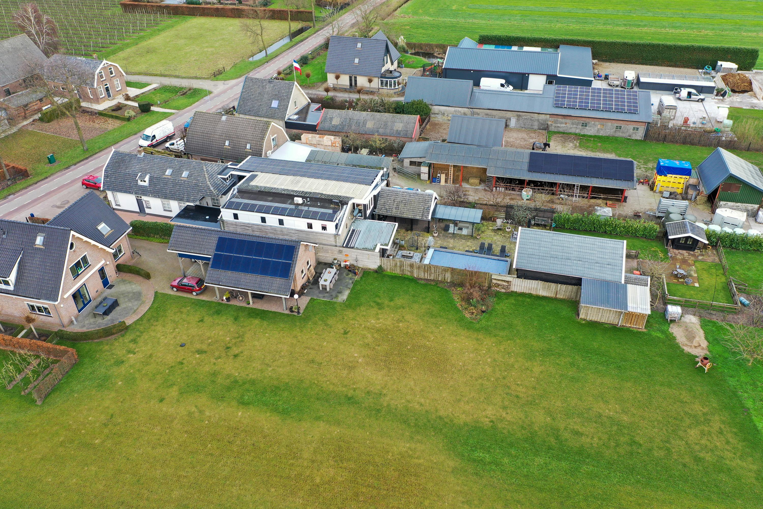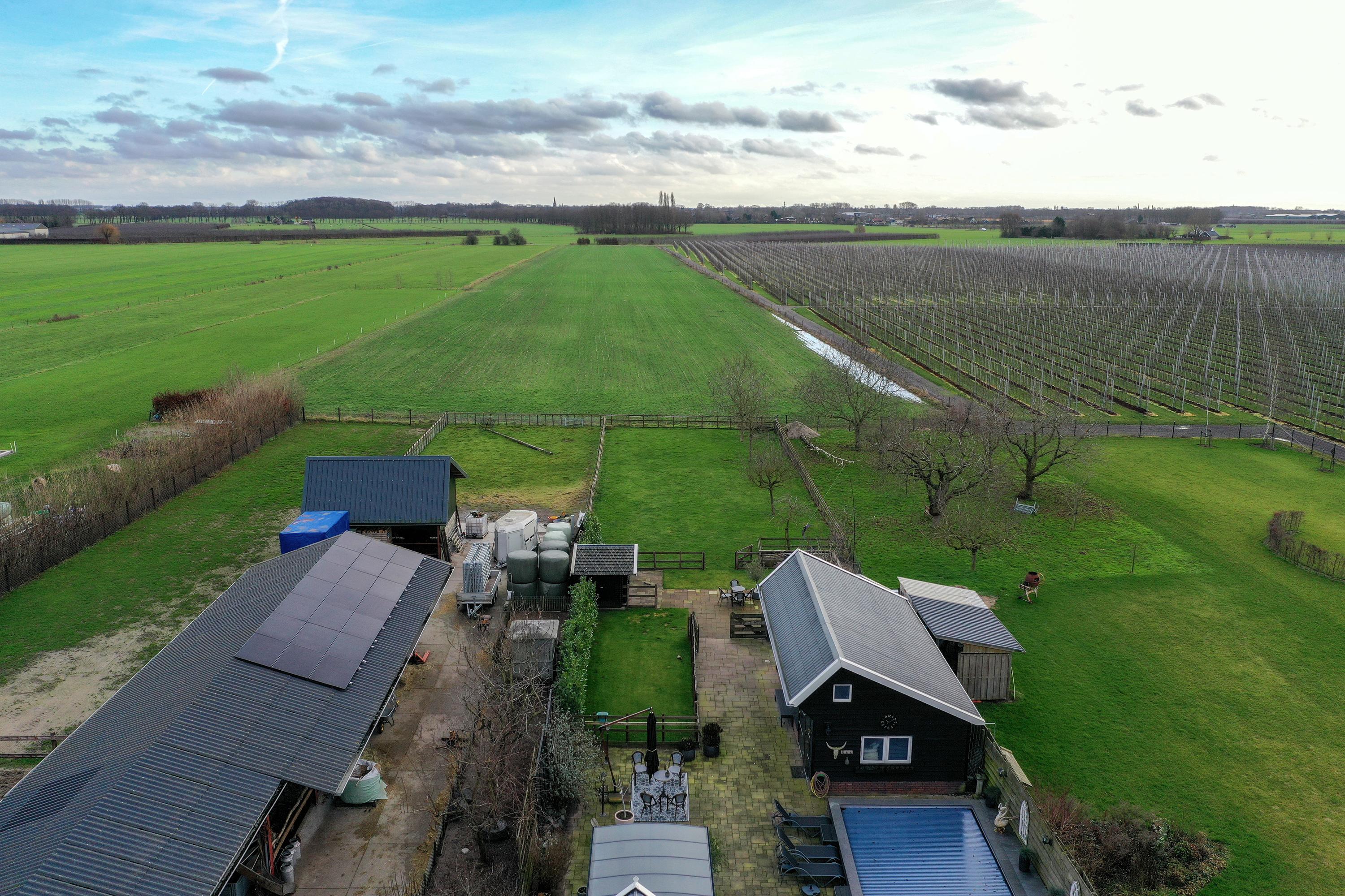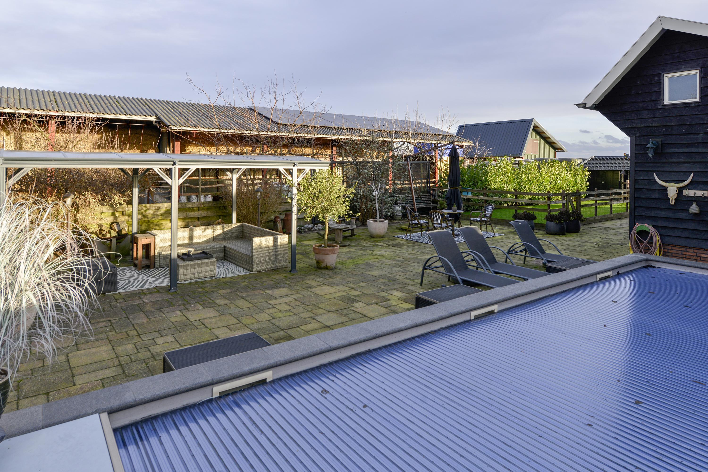 Behind the characteristic facade you will find a modernised farmhouse that has been finished with great care and designed for comfortable living. With a living area of no less than 416 m² and energy label A luxury and sustainability come together convincingly. The kitchen was renewed in 2022 and connects perfectly to the spacious and bright living areas that offer a calm and pleasant atmosphere. Outside there is a heated swimming pool a generous covered terrace with outdoor kitchen a spacious driveway and several multifunctional outbuildings including one that has been furnished in an atmospheric restaurant setting (private use only). The property also has its own orchard which enhances the rural feel. A total of 48 solar panels contribute to low energy costs.