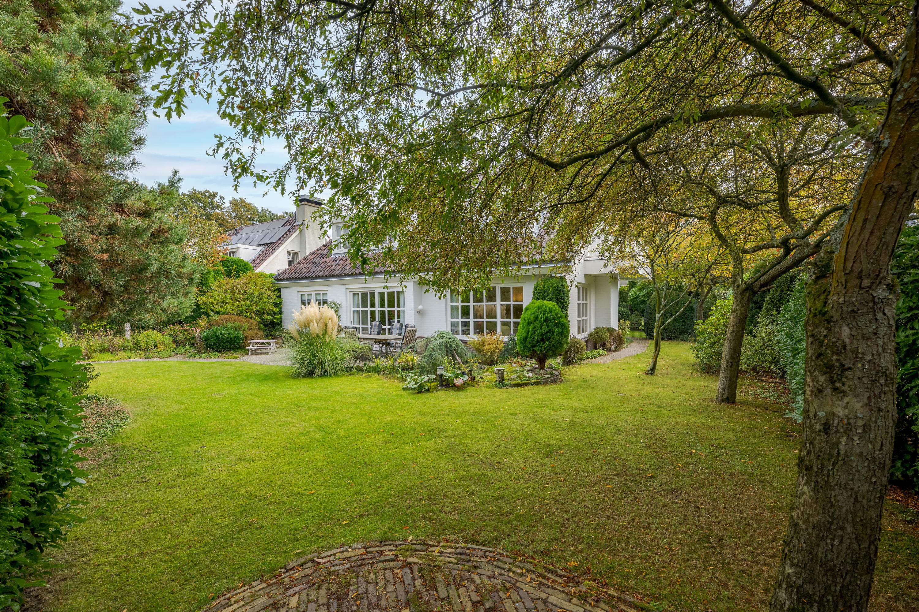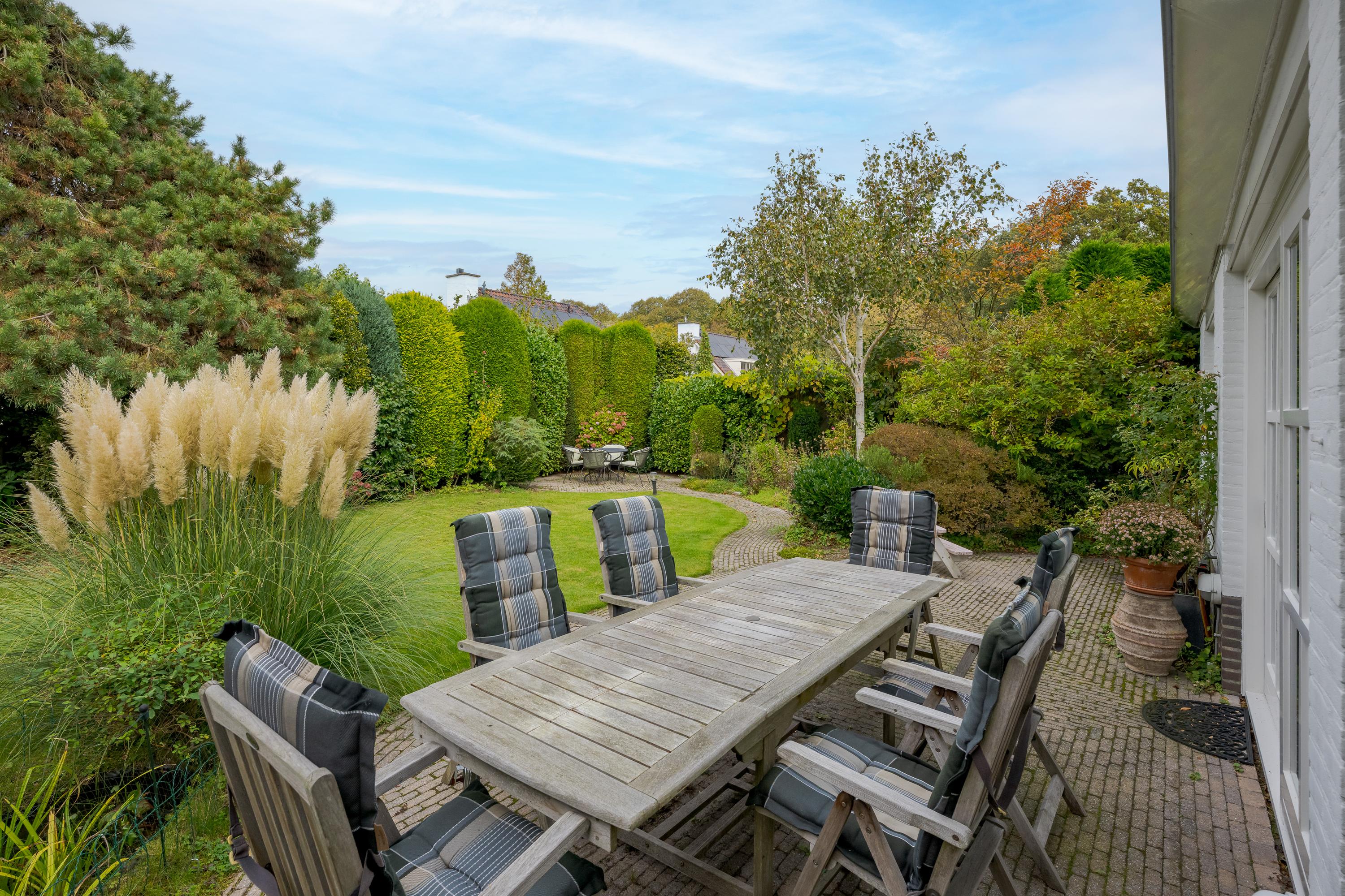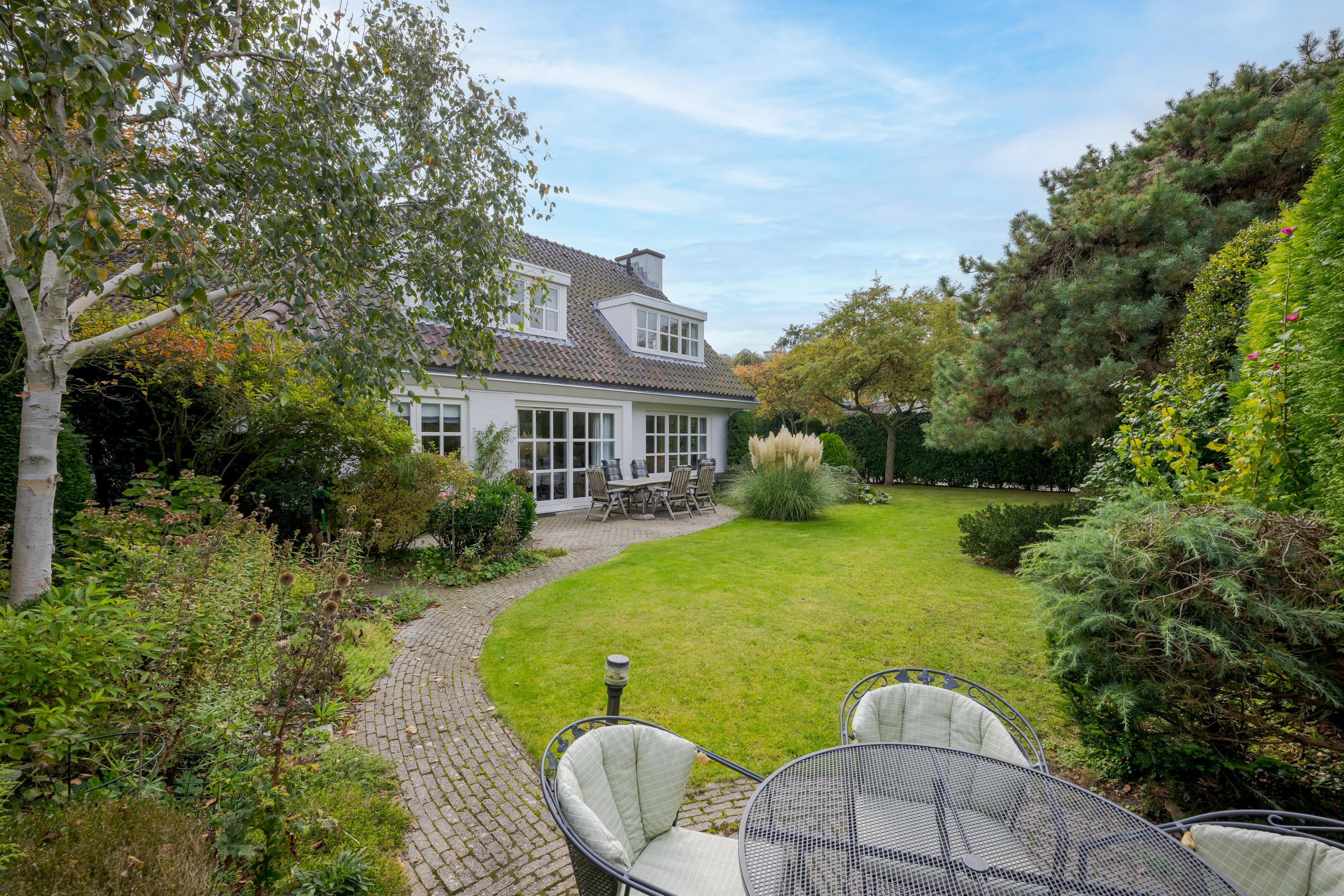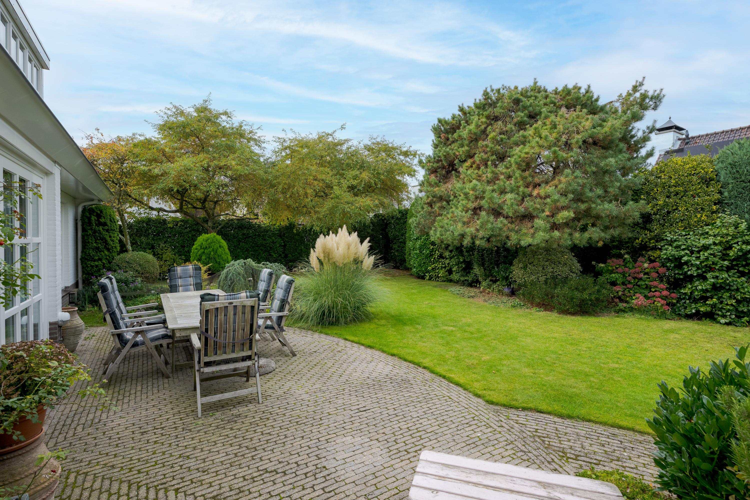 This luxurious villa stands on a spacious, sunny plot of no less than 754 m², right on the edge of the forest. Surrounding it is a beautifully landscaped, sunny garden with plenty of privacy, a wonderful place to relax with family and friends.