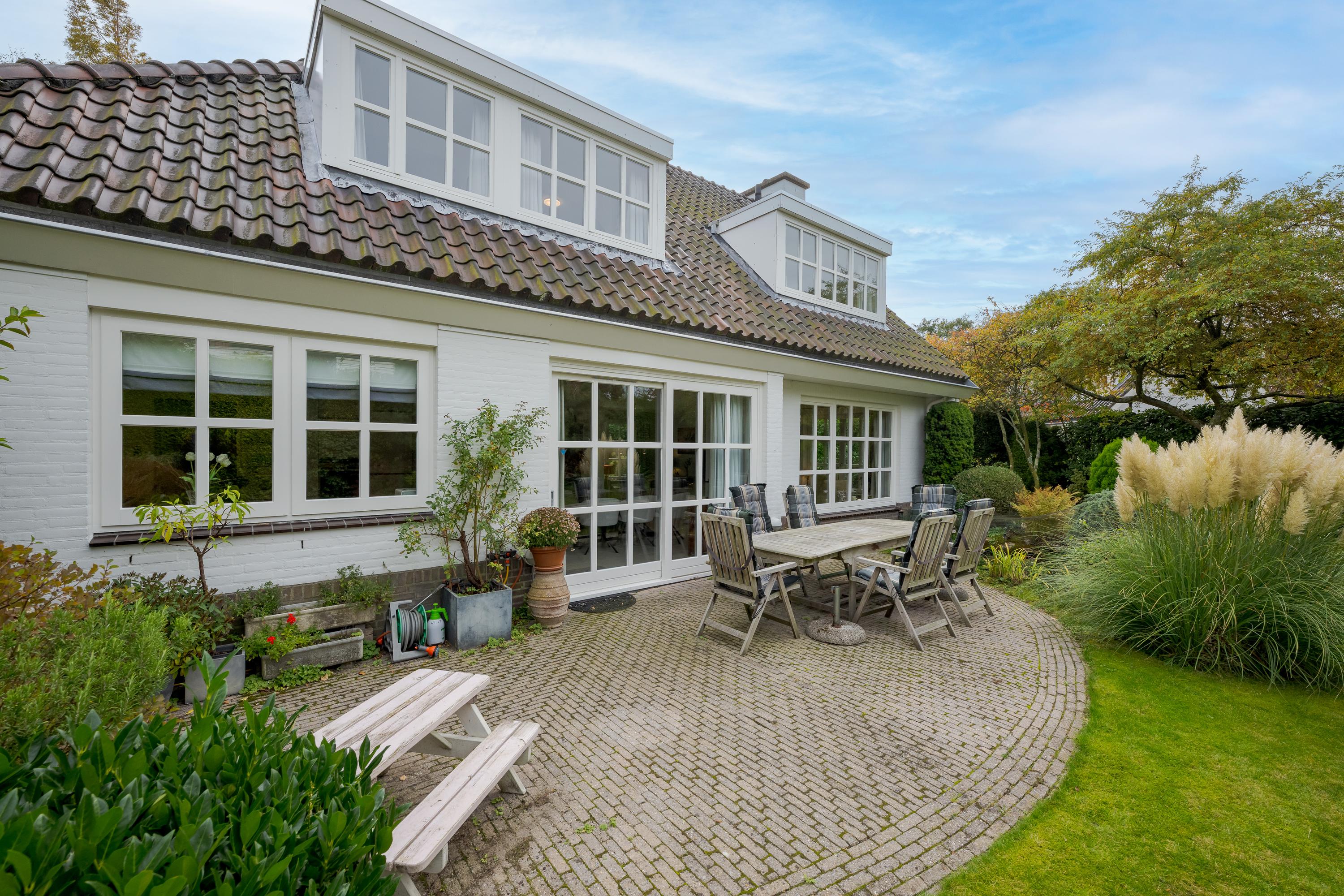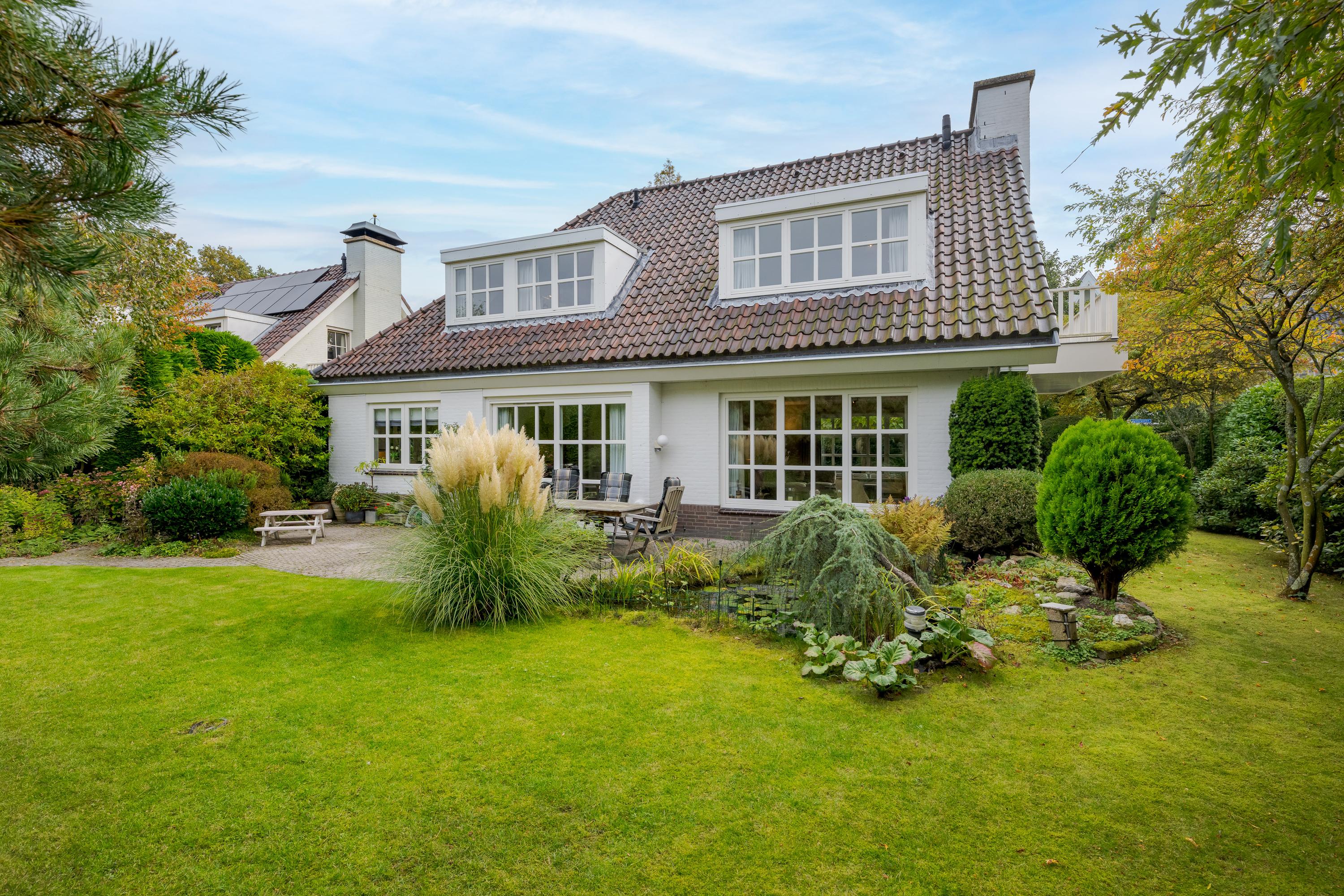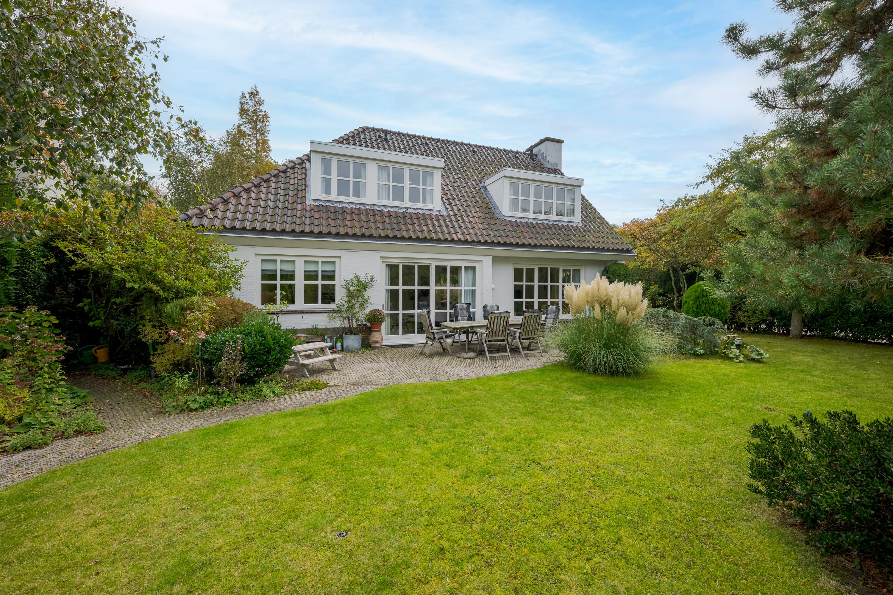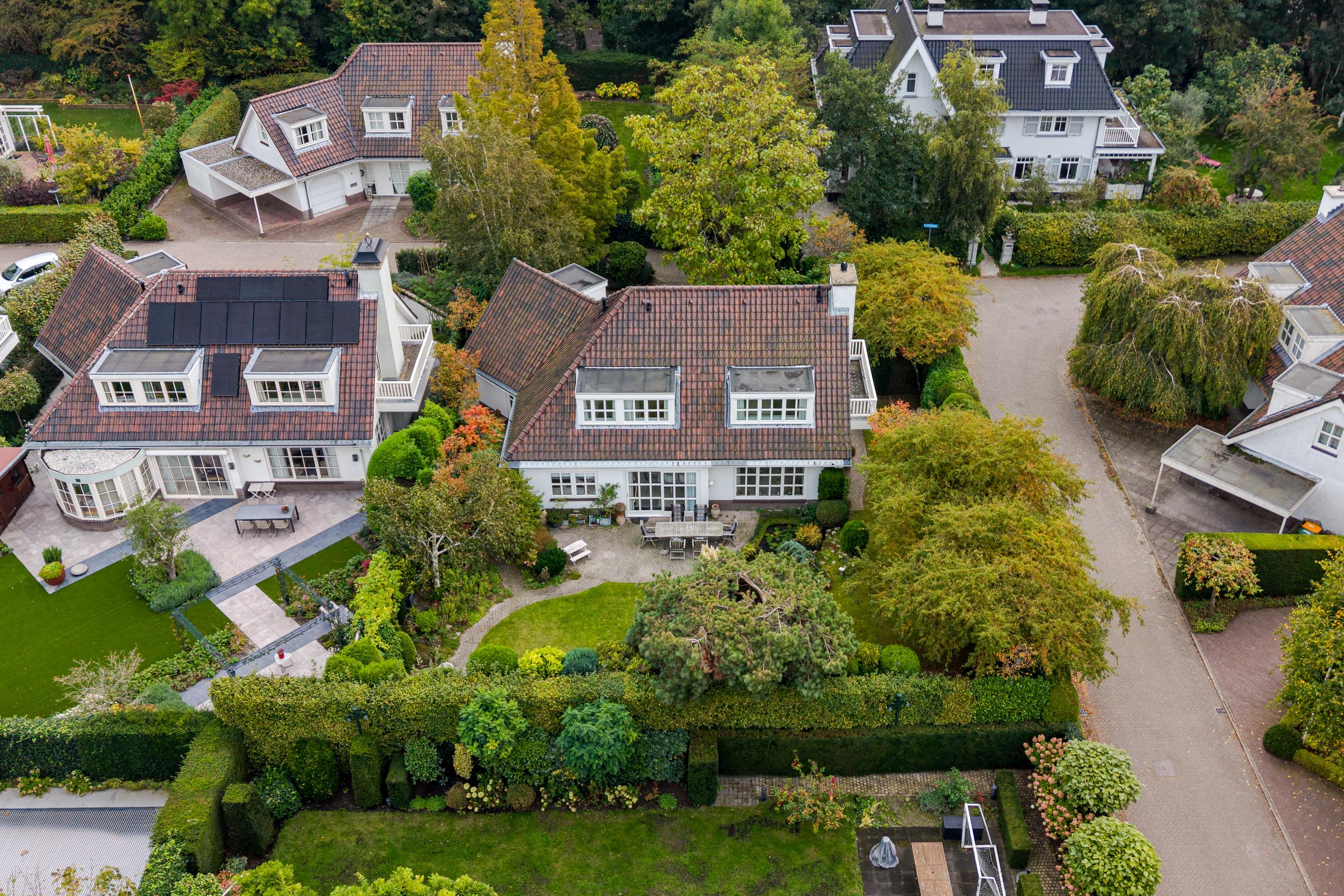 This luxurious villa stands on a spacious, sunny plot of no less than 754 m², right on the edge of the forest. Surrounding it is a beautifully landscaped, sunny garden with plenty of privacy, a wonderful place to relax with family and friends.