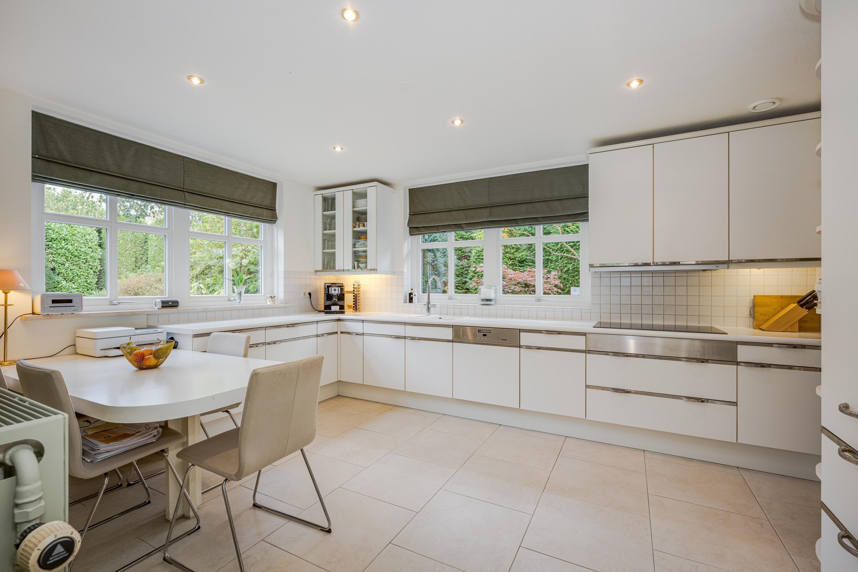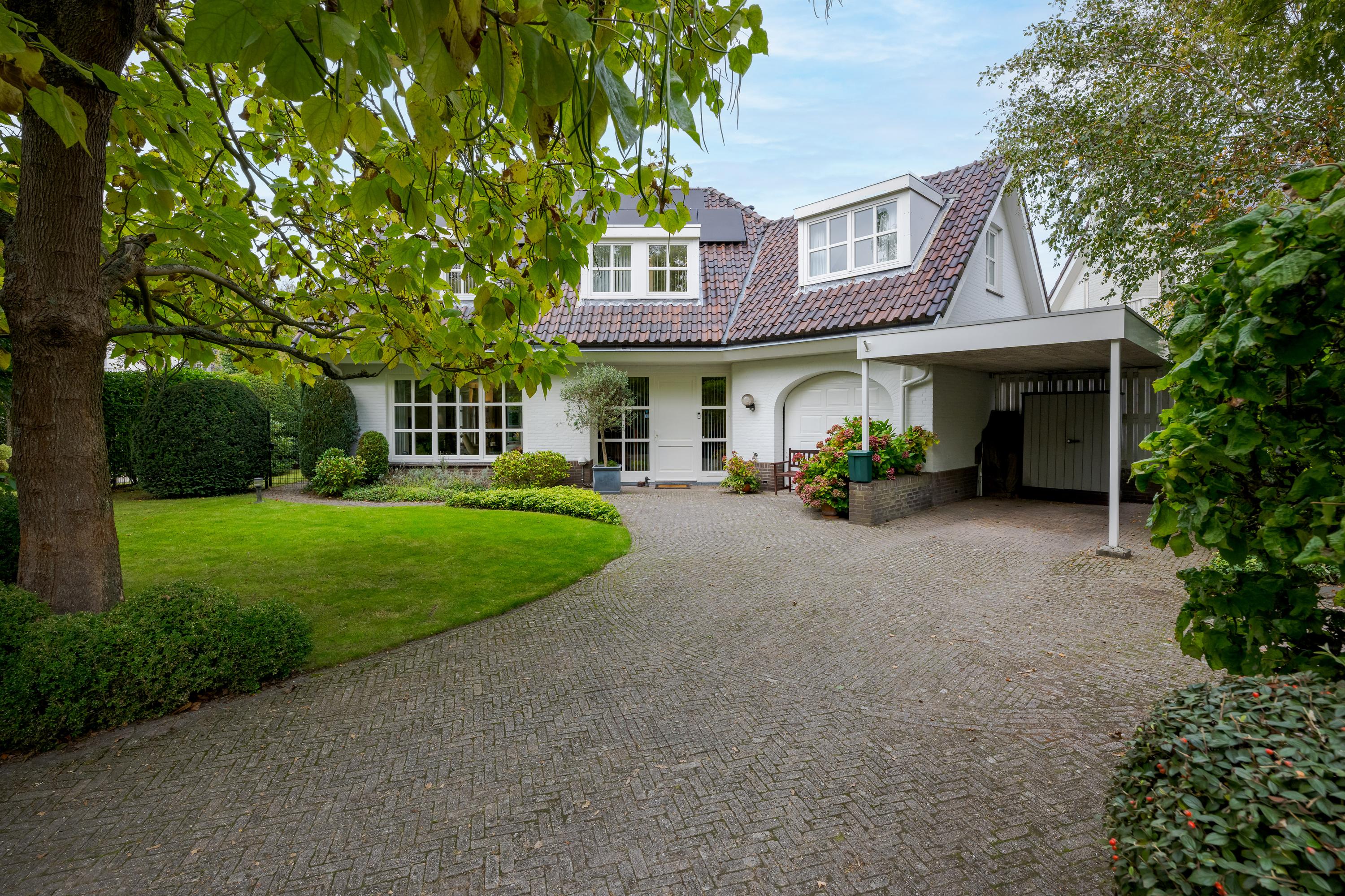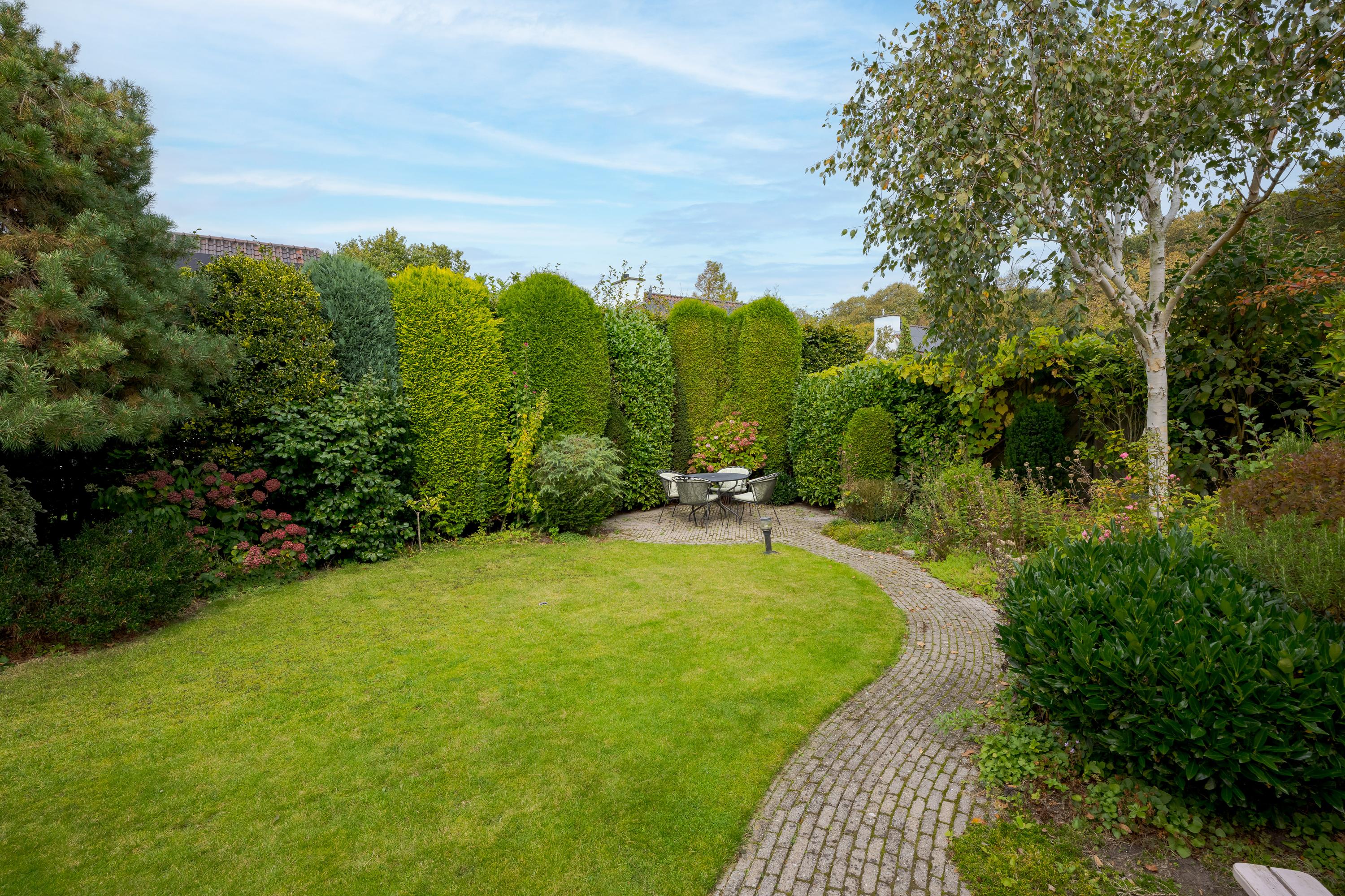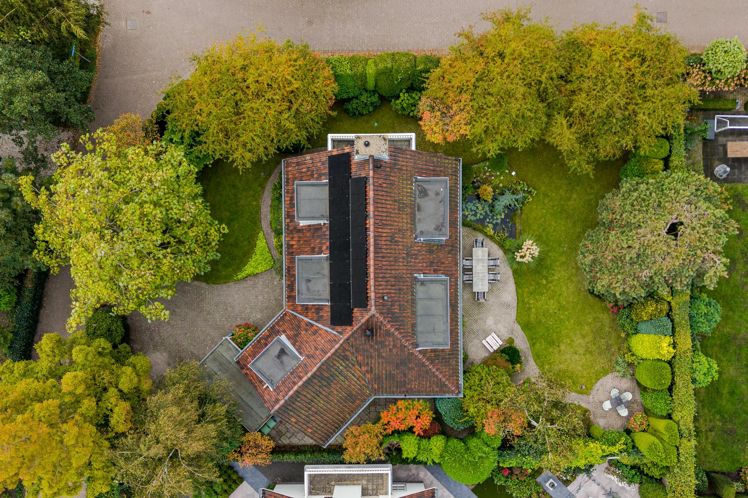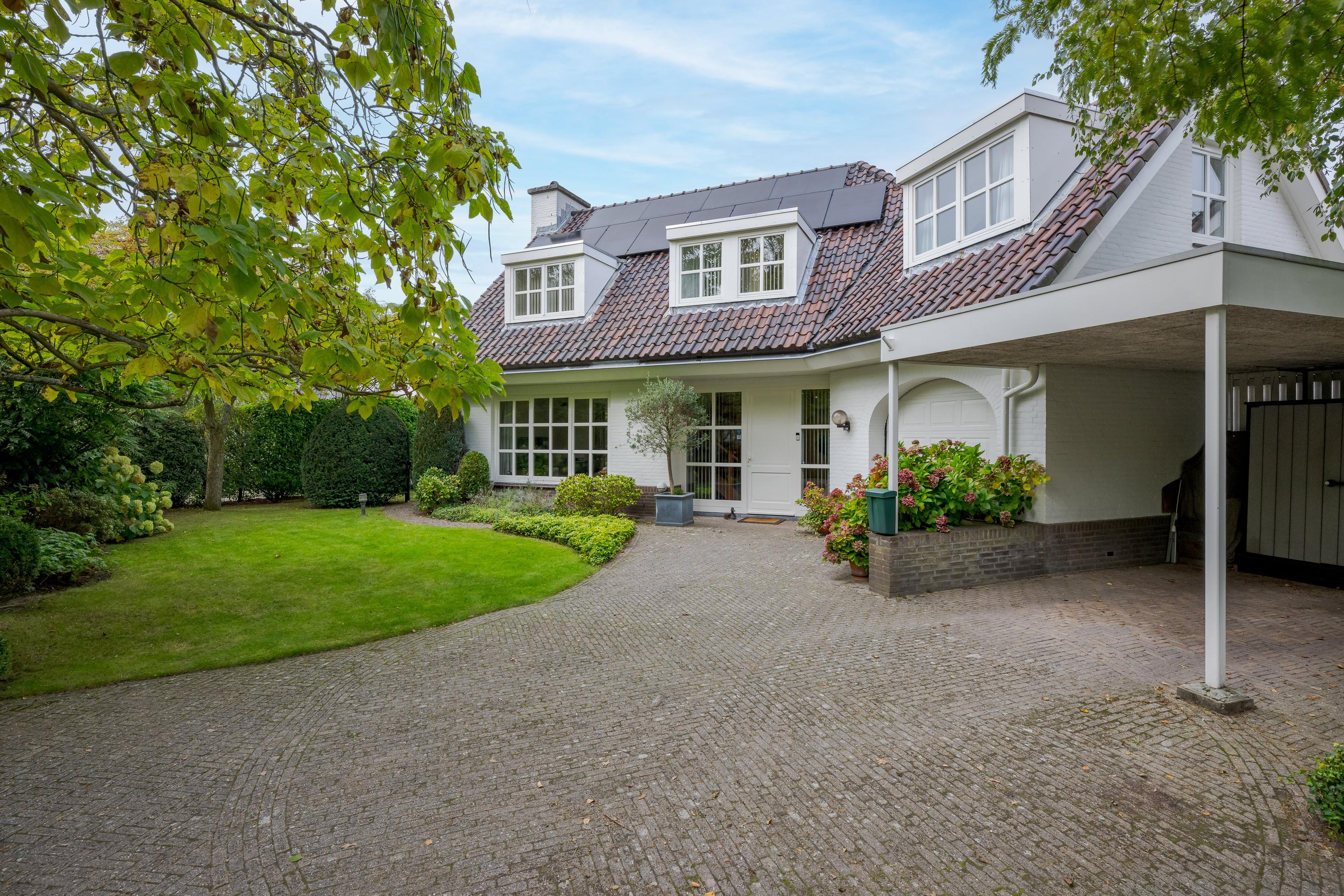 This luxurious villa stands on a spacious, sunny plot of no less than 754 m², right on the edge of the forest. Surrounding it is a beautifully landscaped, sunny garden with plenty of privacy, a wonderful place to relax with family and friends.