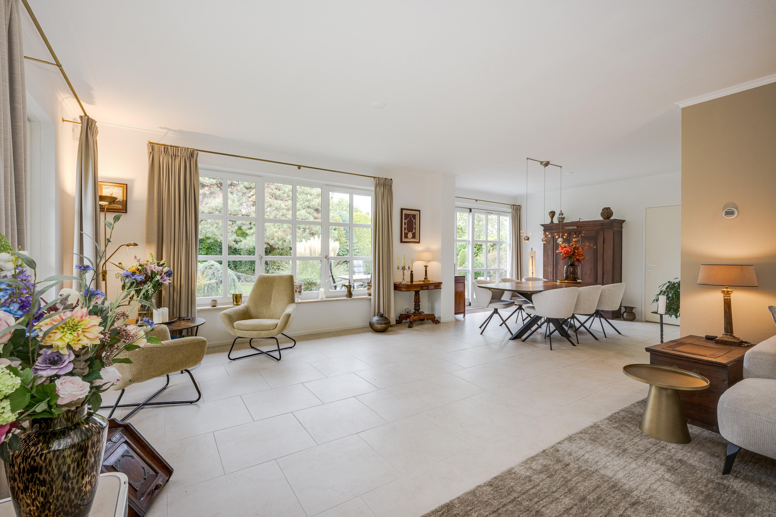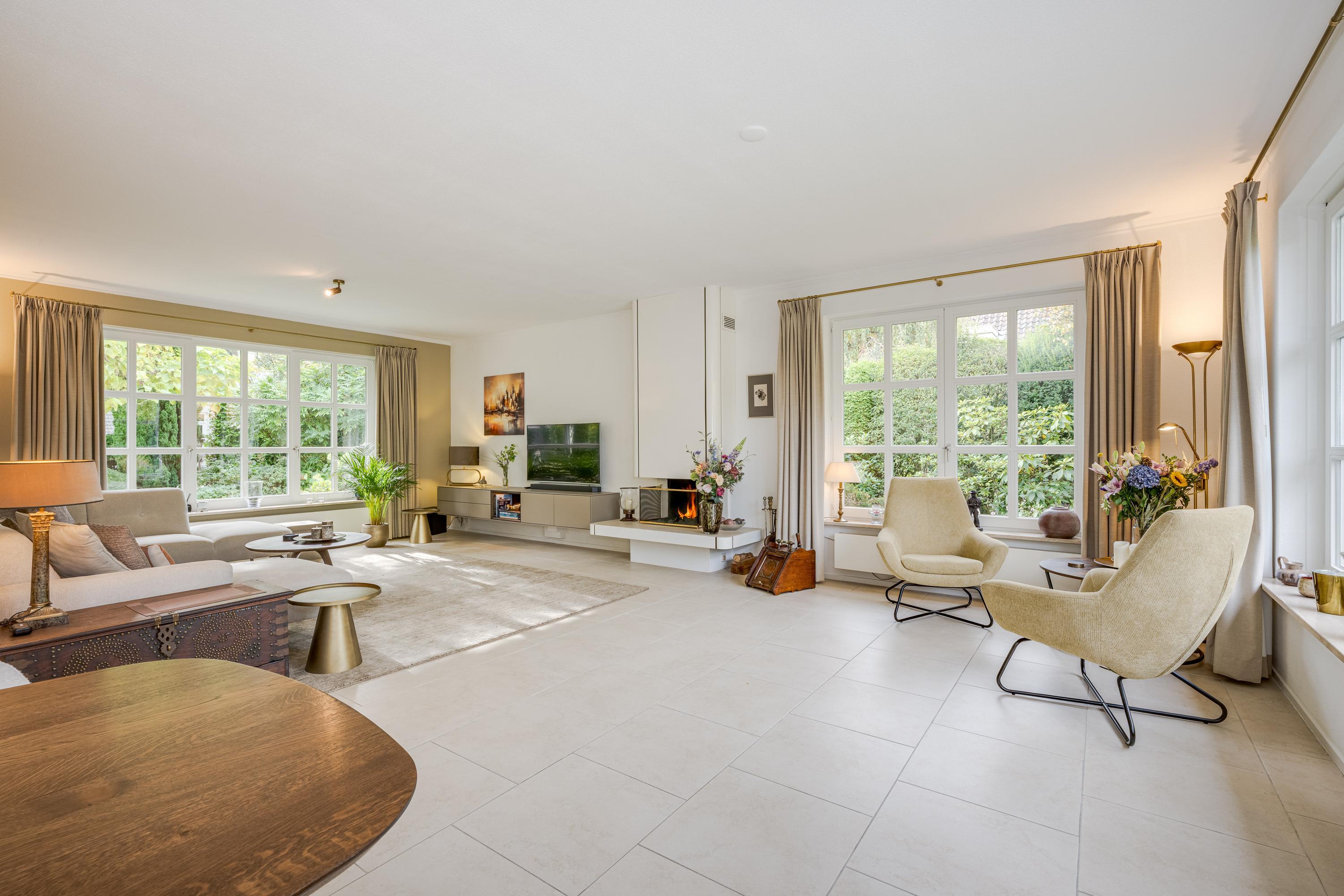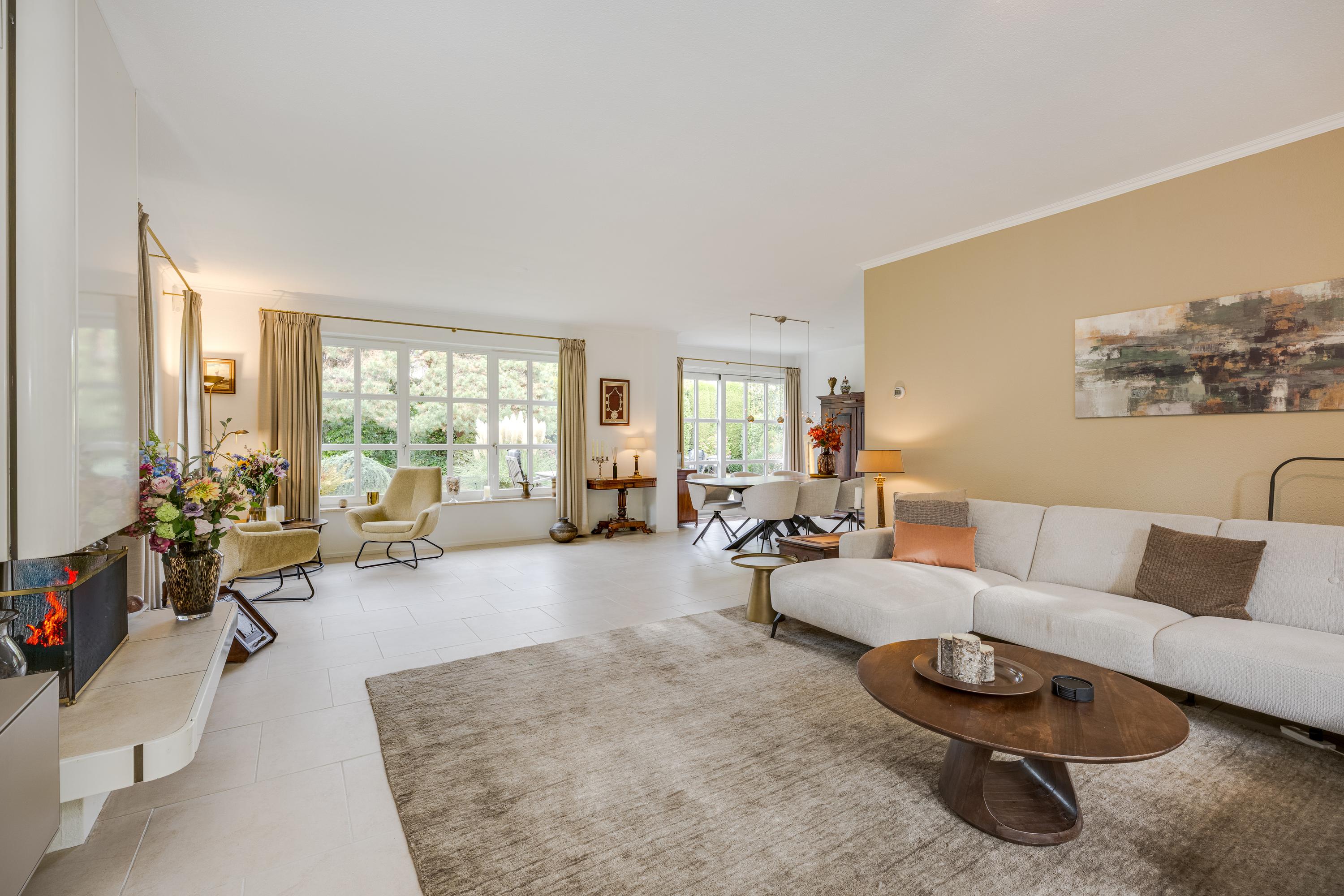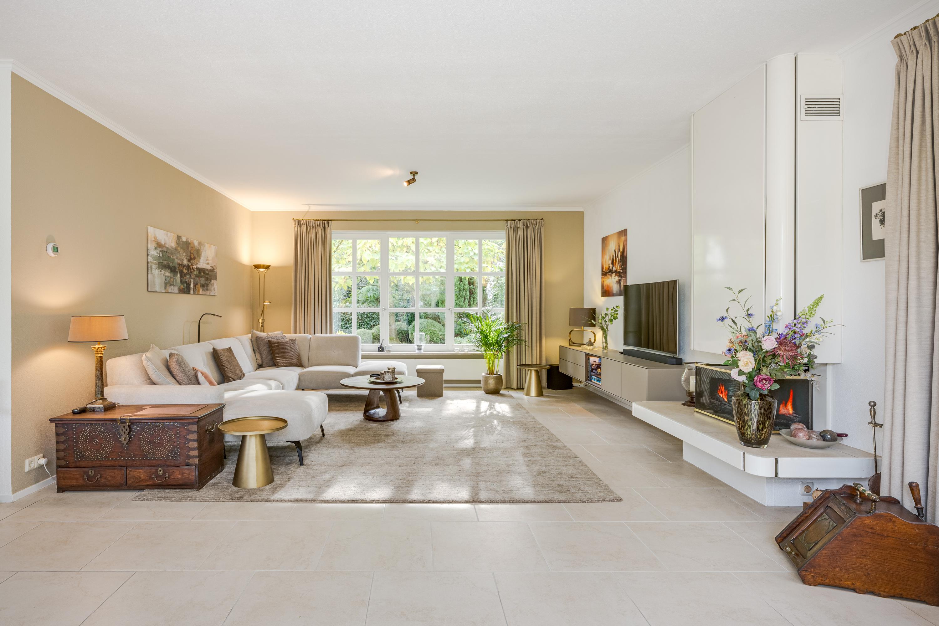 This luxurious villa stands on a spacious, sunny plot of no less than 754 m², right on the edge of the forest. Surrounding it is a beautifully landscaped, sunny garden with plenty of privacy, a wonderful place to relax with family and friends.