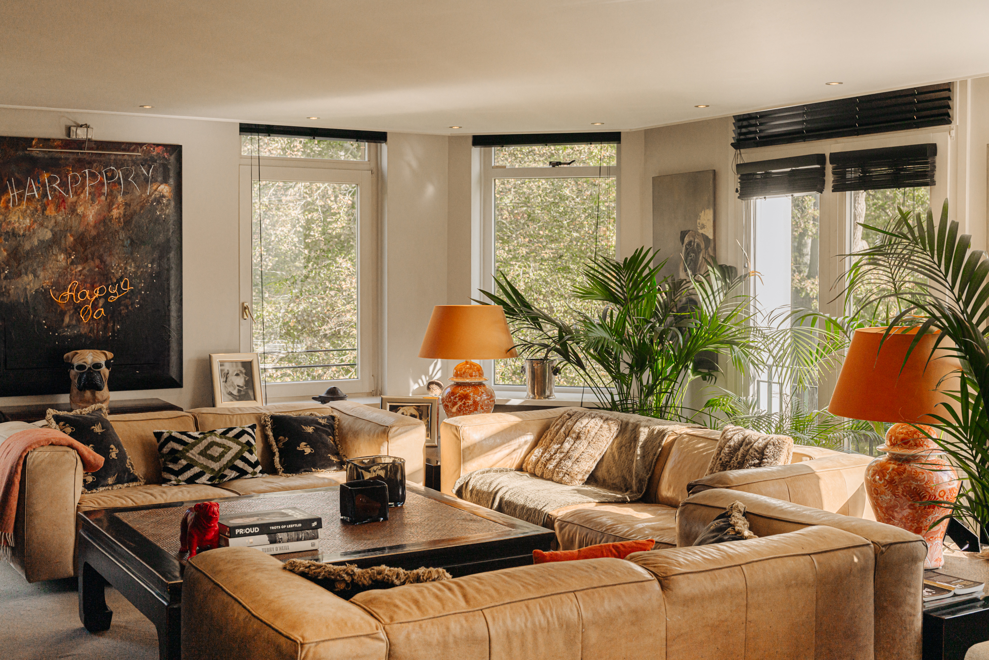 Beautifully situated 4-room penthouse (approx. 265 m² living space) with large balconies on the third floor of a small apartment complex on the Rust en Vreugd Estate. Originally two apartments, it was completely renovated and redesigned in 2009. You will find high-quality materials and luxurious details, including a custom-made interior and air conditioning. There are also two parking spaces and a storage unit in the basement.