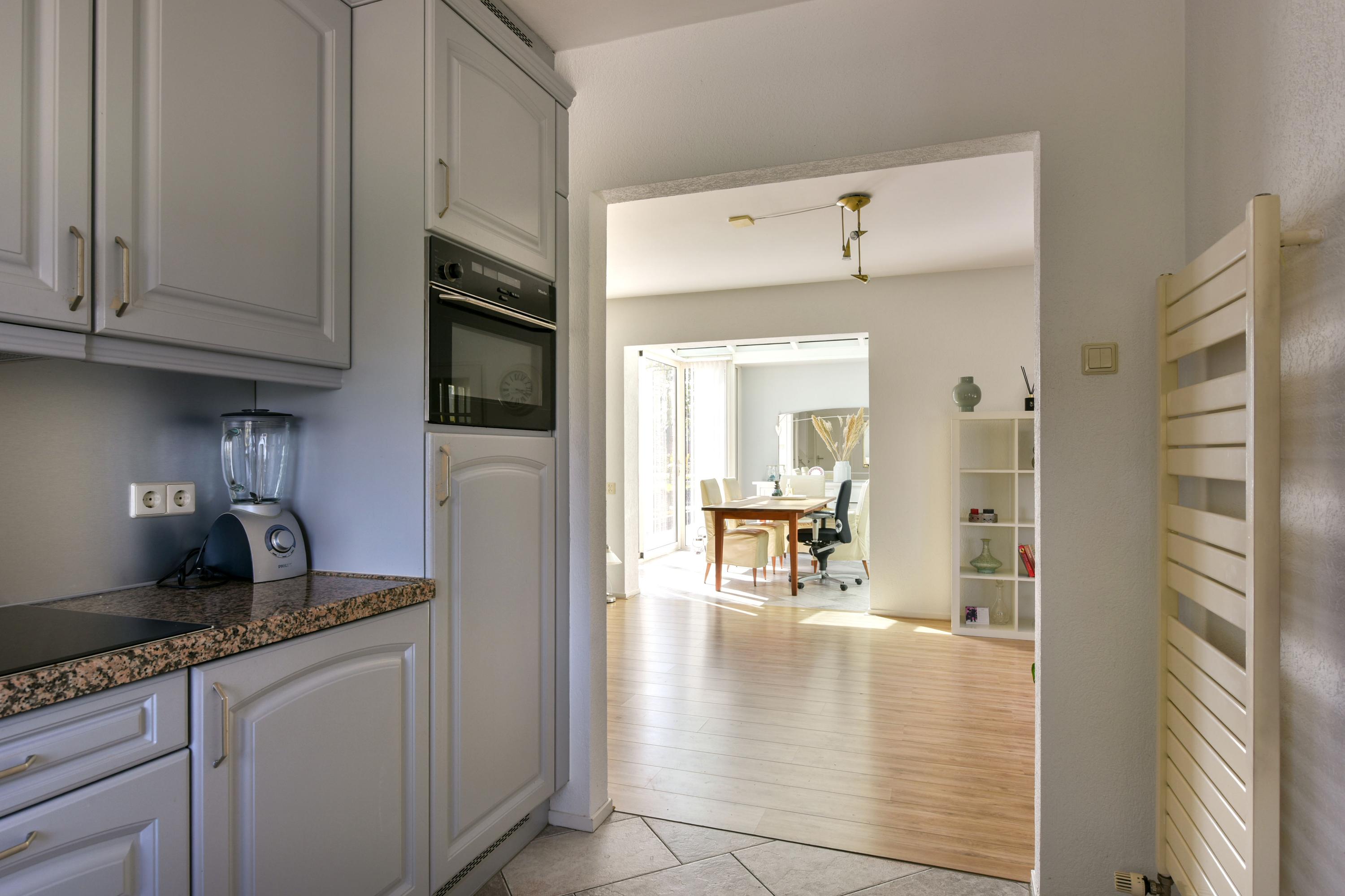 The open-plan kitchen boasts a picture-perfect view and is equipped with everything you need: fridge, freezer, cool drawer, dishwasher, combination microwave-oven, induction cooktop, and a Quooker hot water tap. It’s an ideal space for cooking, entertaining, and relaxing.